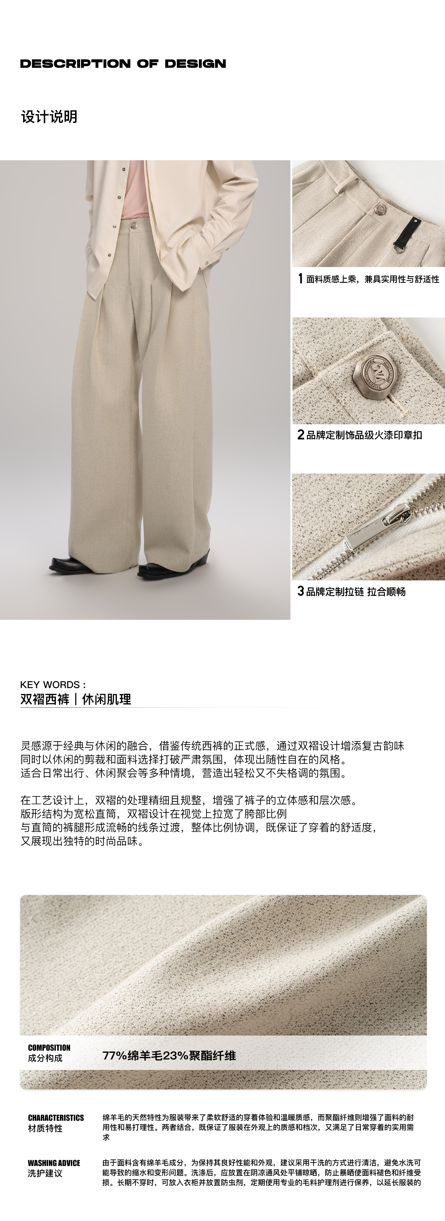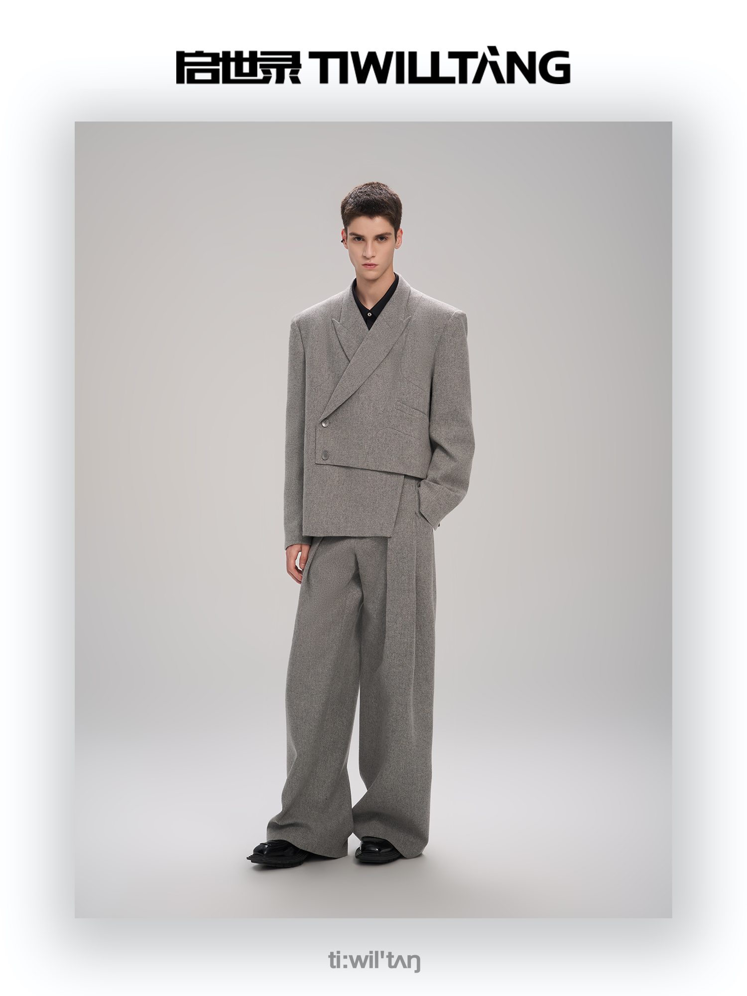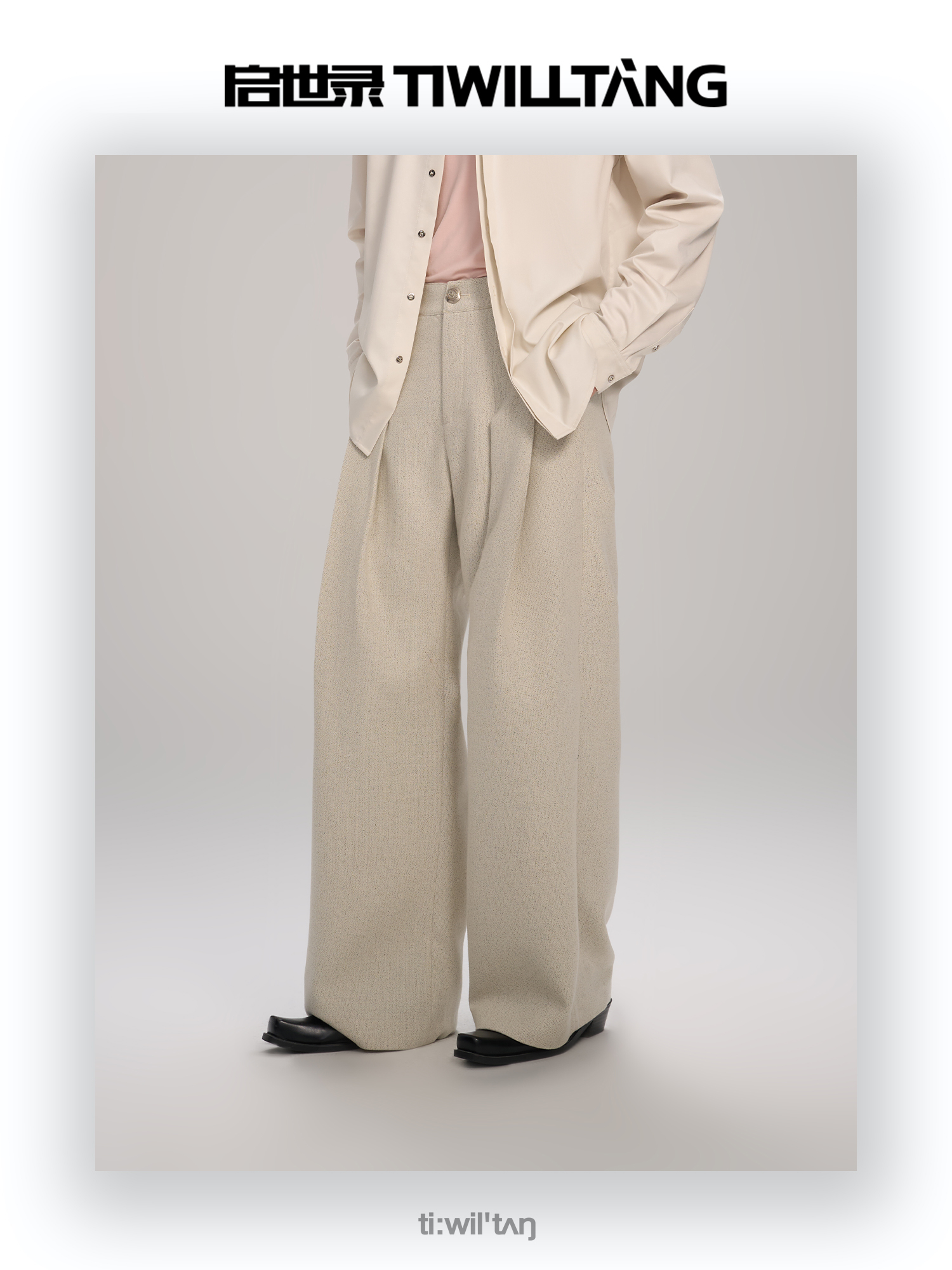 启世录TIWILLTANG“褶域桓季”奢感立体双褶雅绅垂感意式松弛西裤