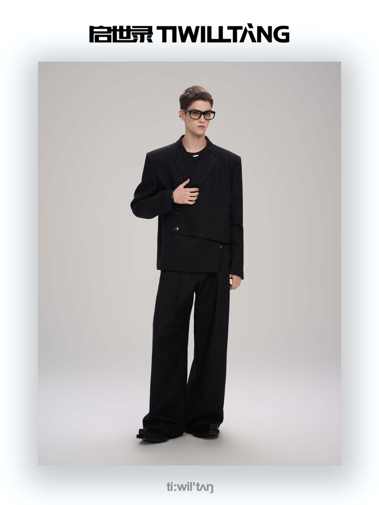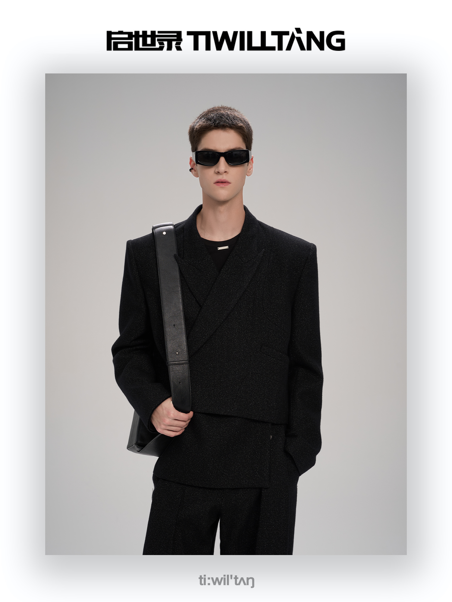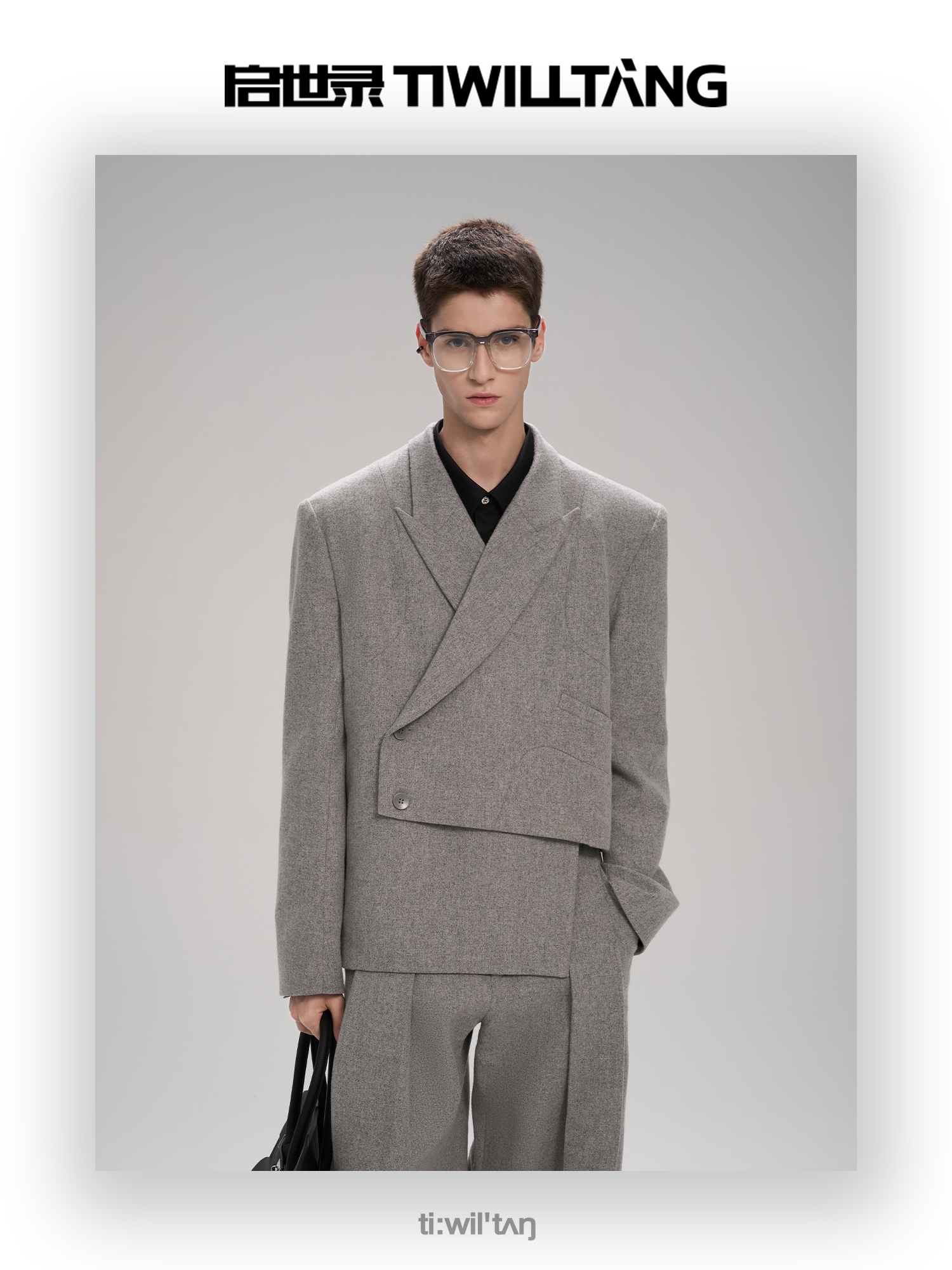 TIWILLTANG启世录“绅缦”无领开衫拉链解构呢西装秋季高级感西服