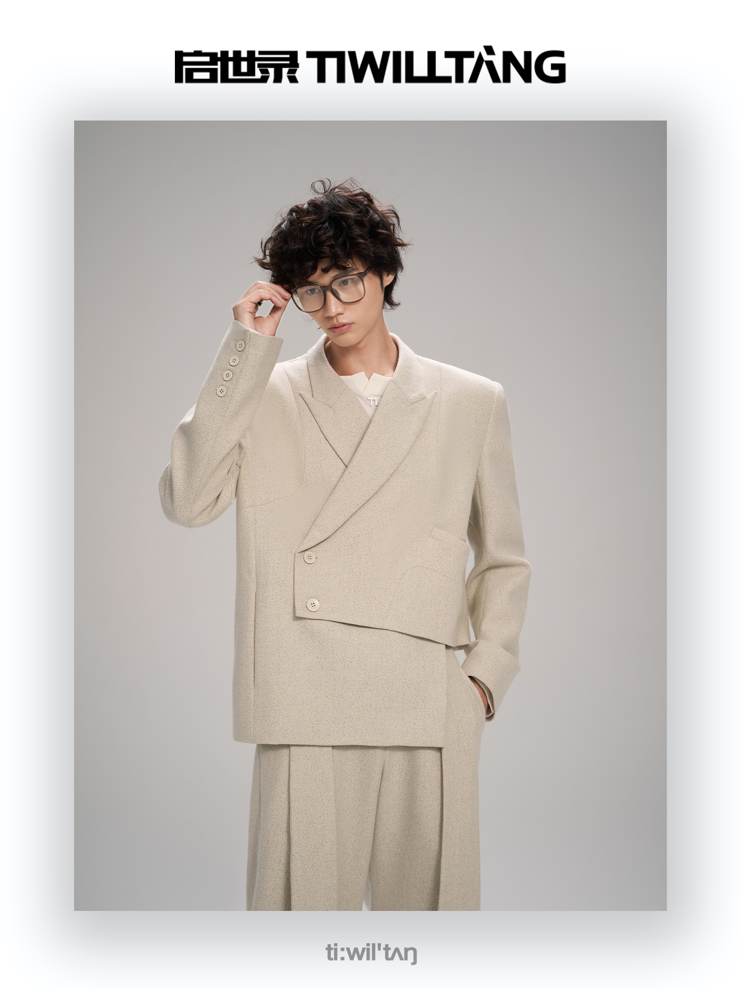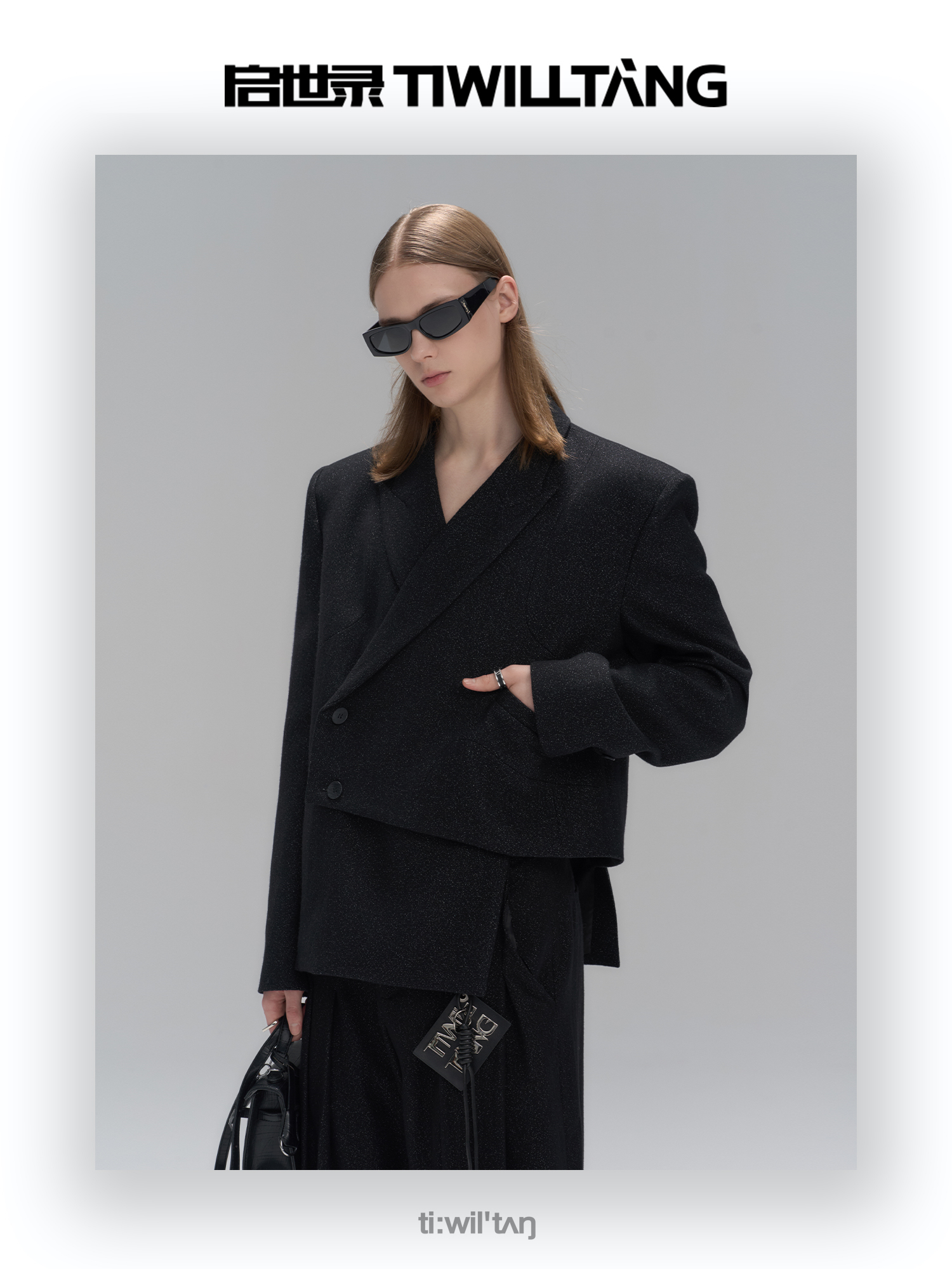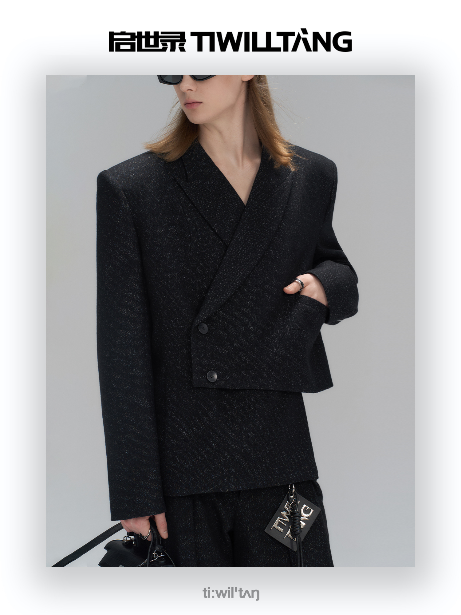 TIWILLTANG启世录“绅缦”无领开衫拉链解构呢西装秋季高级感西服