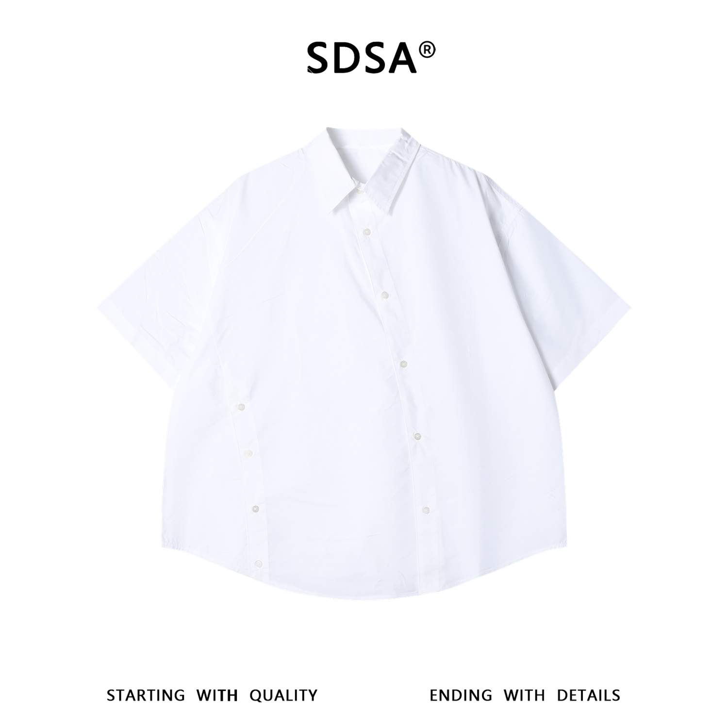SDSA男装2026新款高贵轻奢日系简约斜纽扣小众设计短袖衬衫百搭