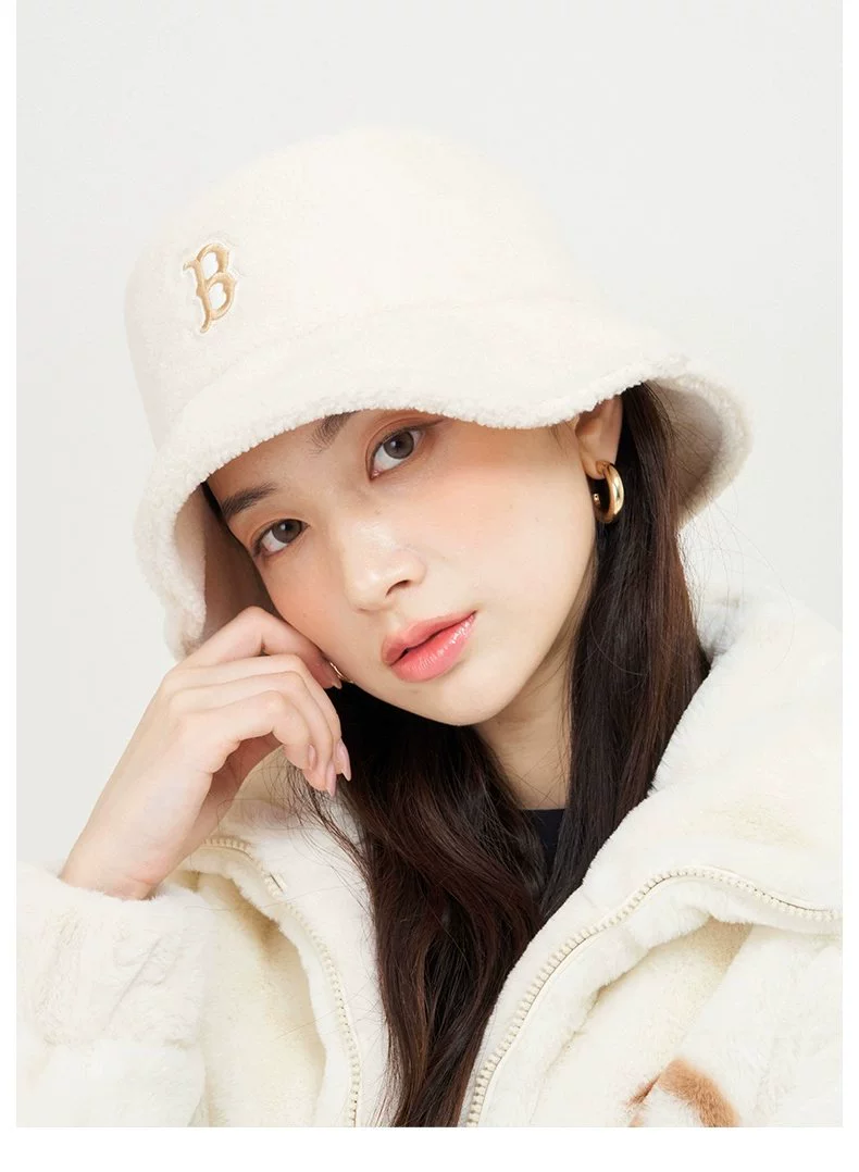 MLB仿羊羔绒渔夫帽(适合头围:头围57cm):奶油色-B/奶油色-NY/浅驼色/卡其色