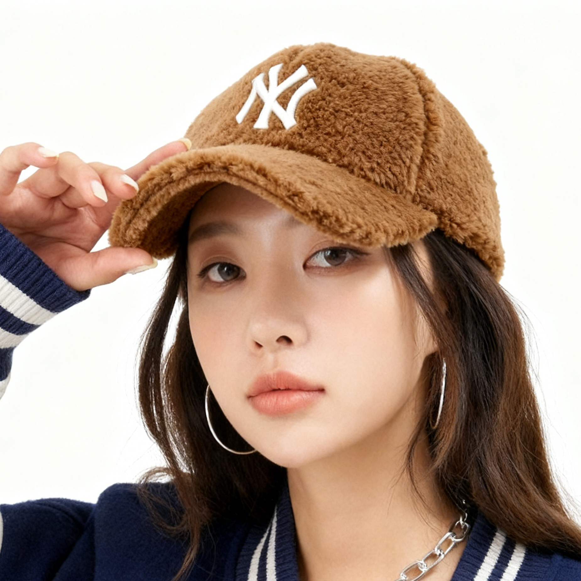 MLB仿羊羔绒棒球帽(适合头围56-59CM):黑色/白色/棕色/灰色