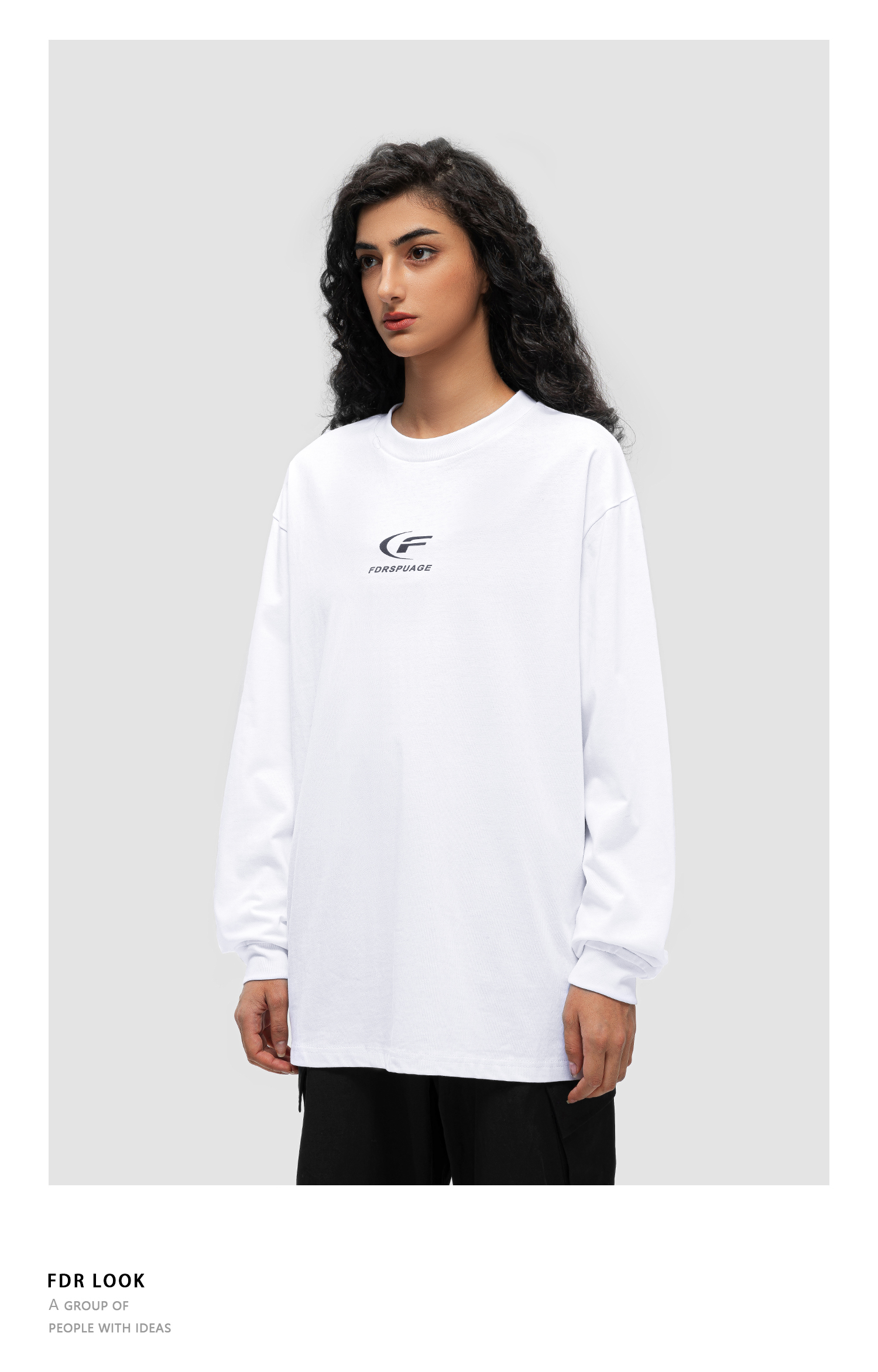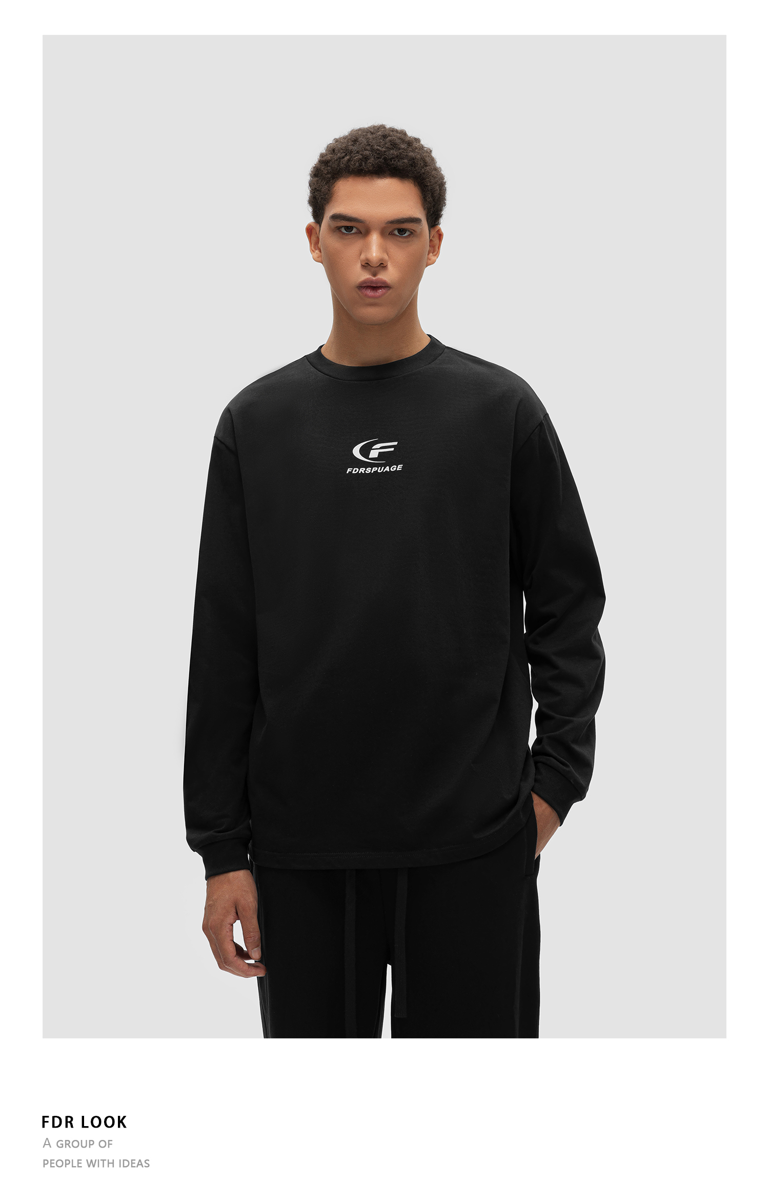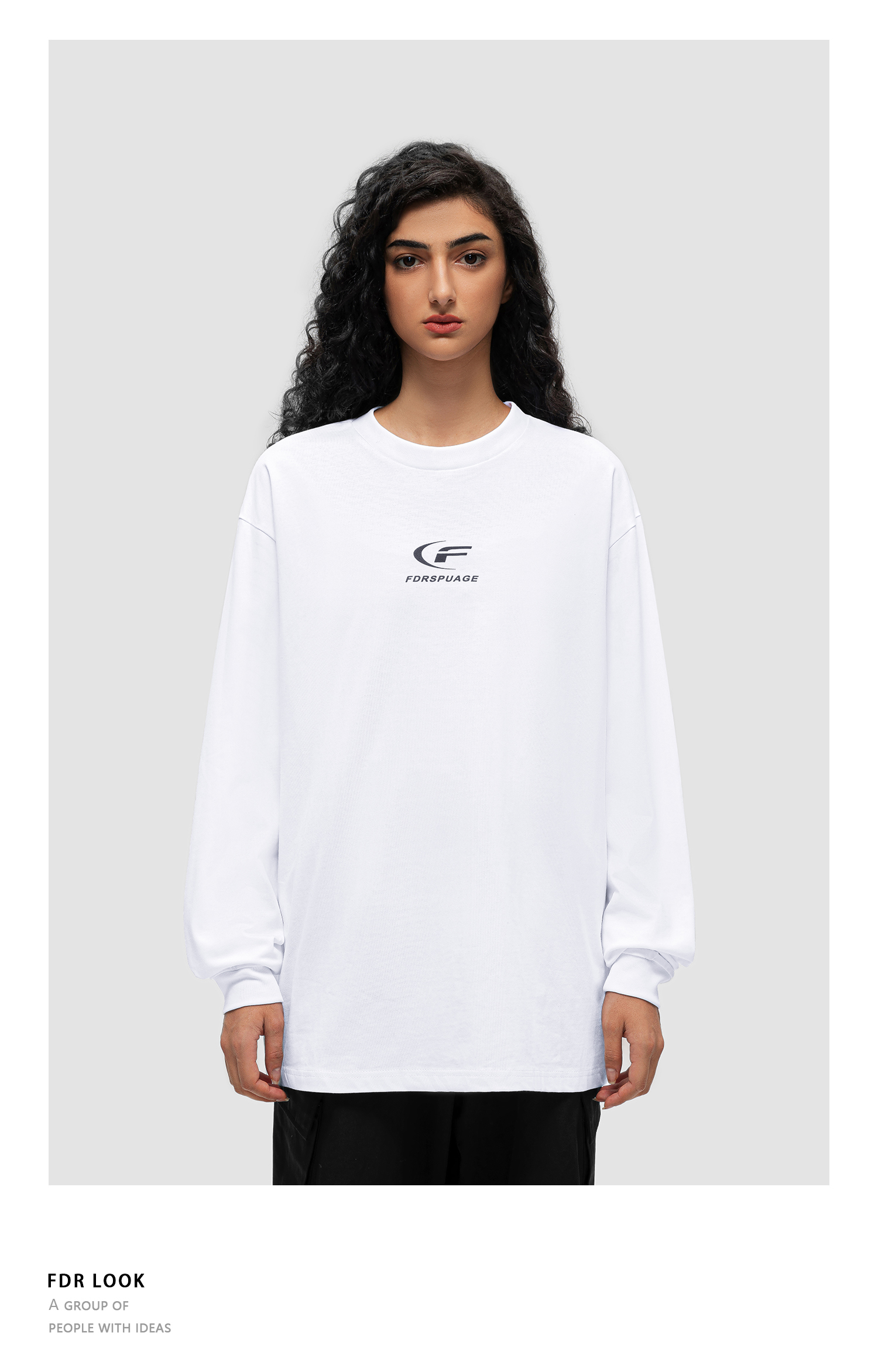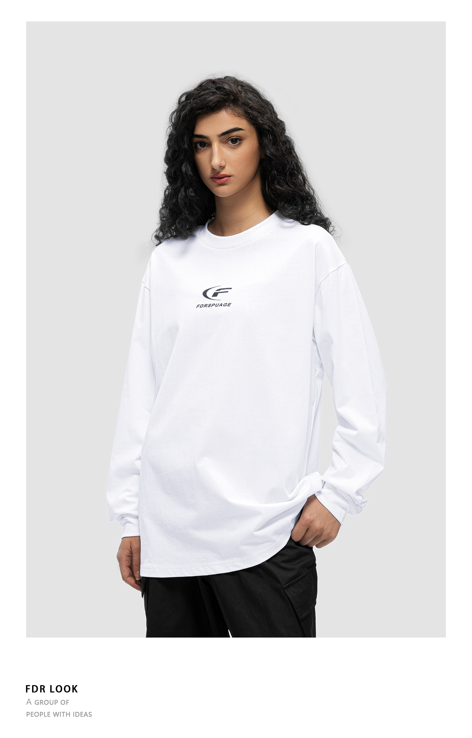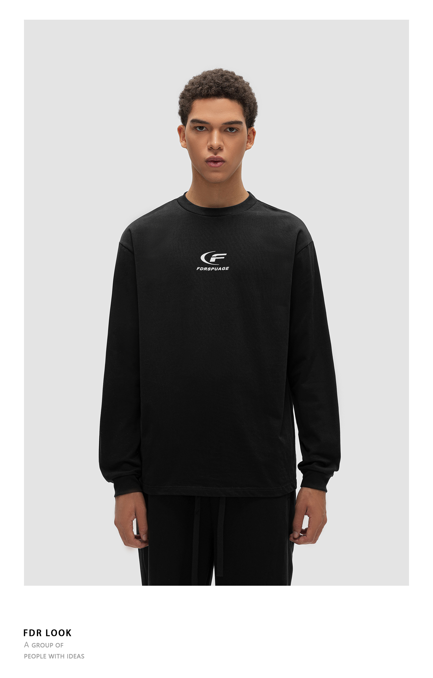 FDR 原创国潮月牙印花长袖t恤男女秋冬季潮牌美式情侣装打底上衣