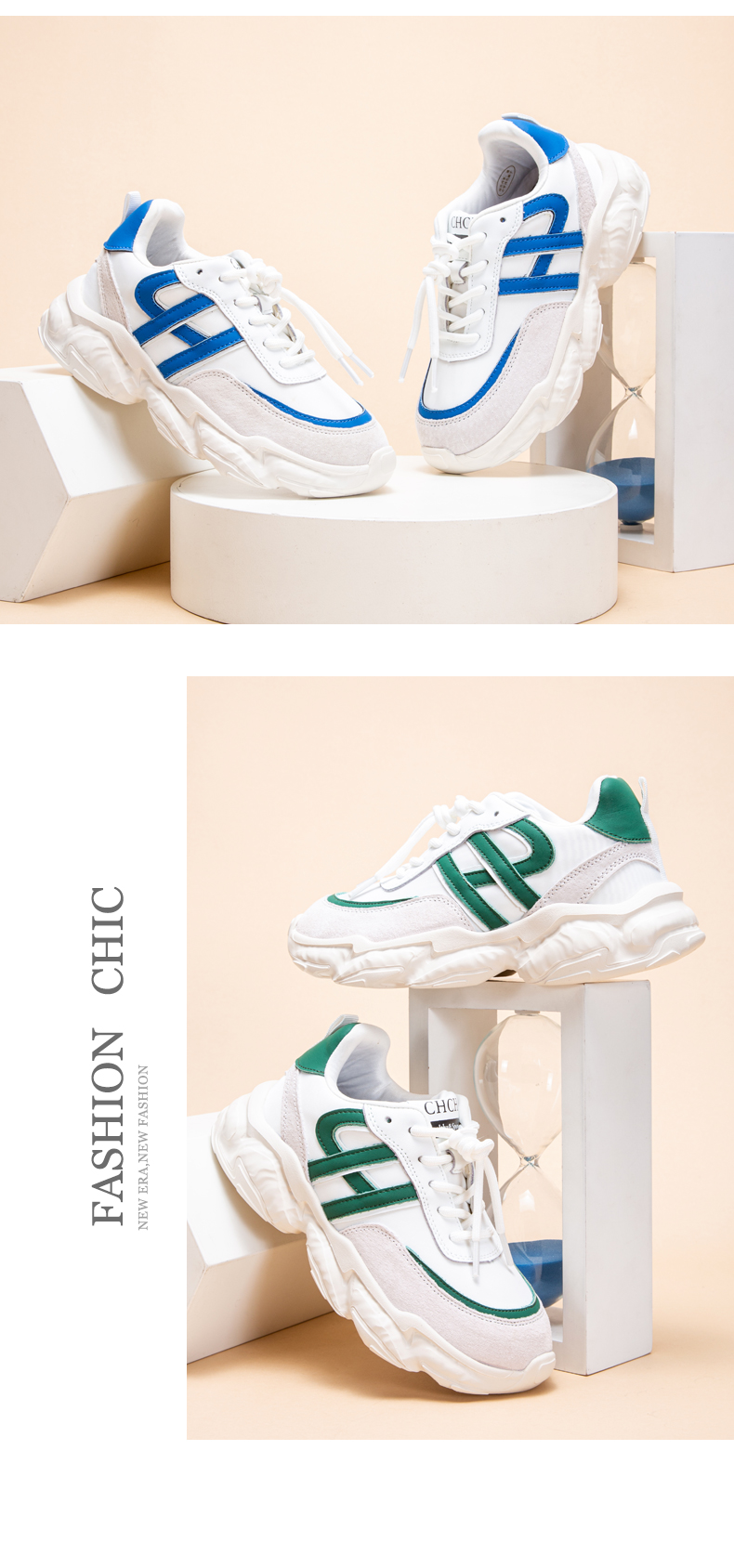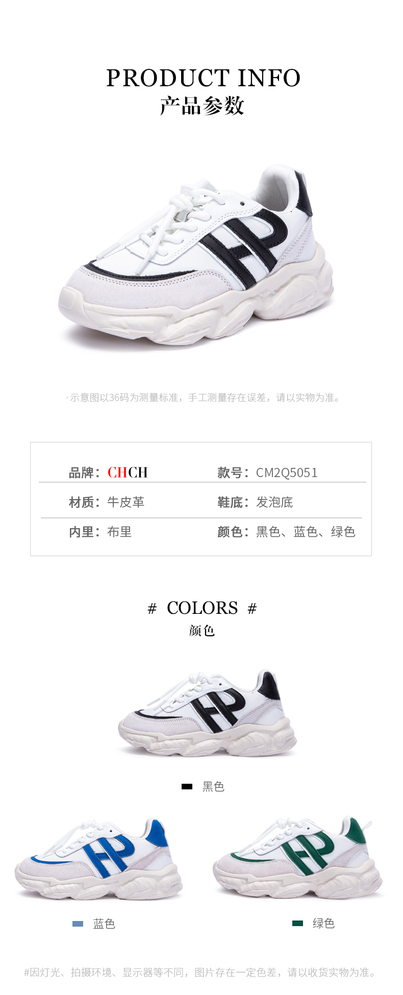 CHCH复古德训鞋真牛皮舒适运动休闲百搭年轻时尚女鞋平衡鞋
