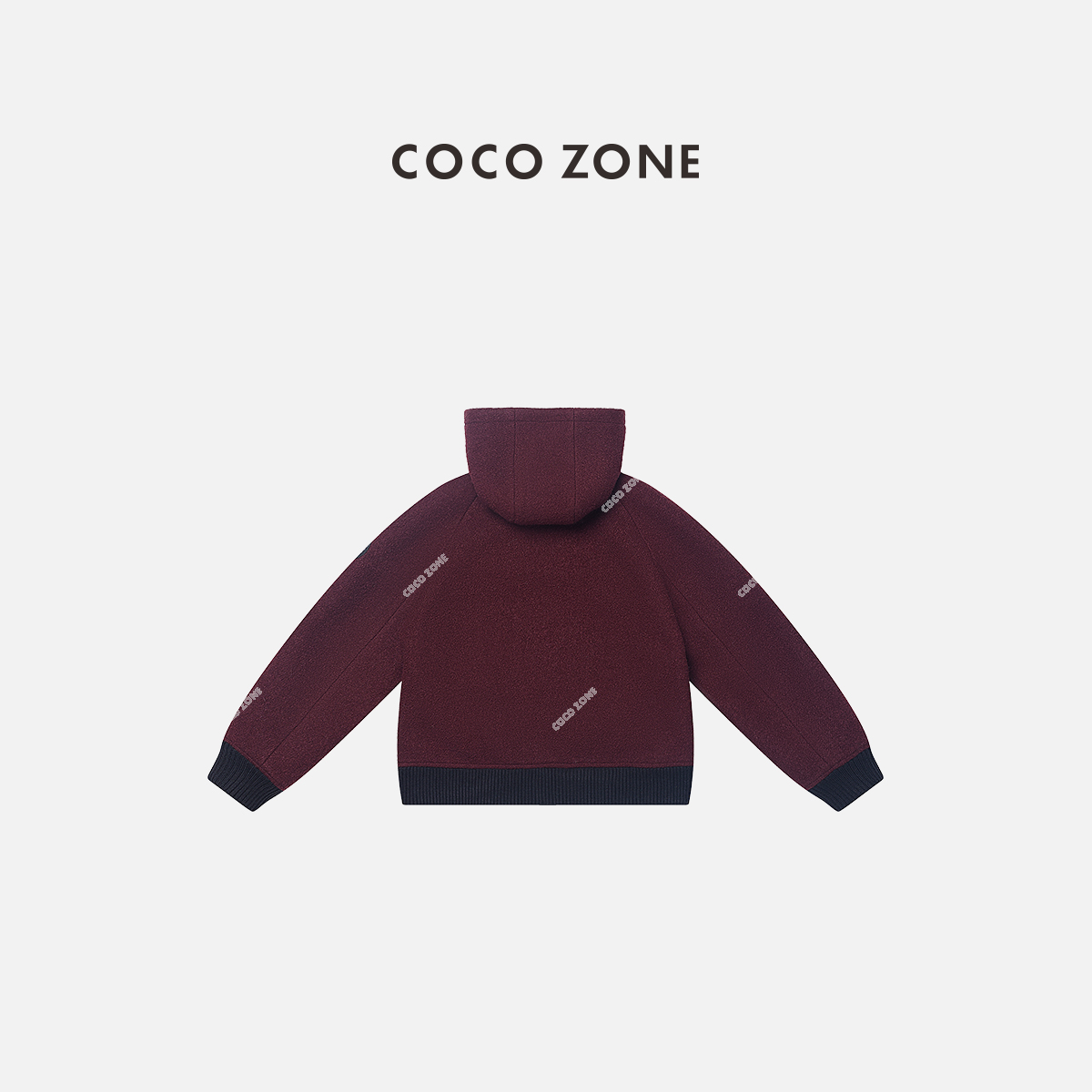COCO ZONE 秋冬设计感撞色拼接连帽拉链外套CC2D2810