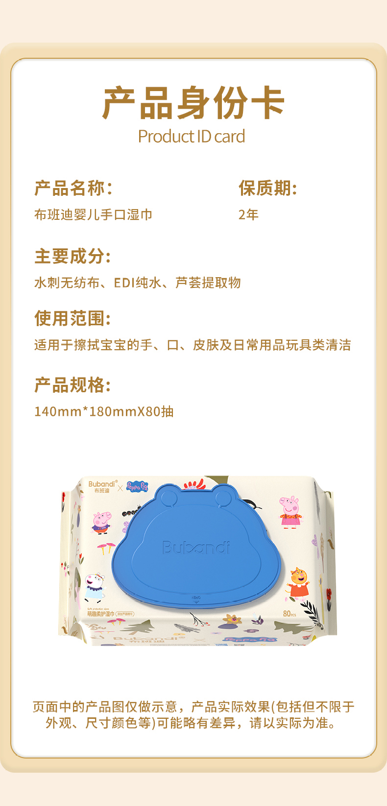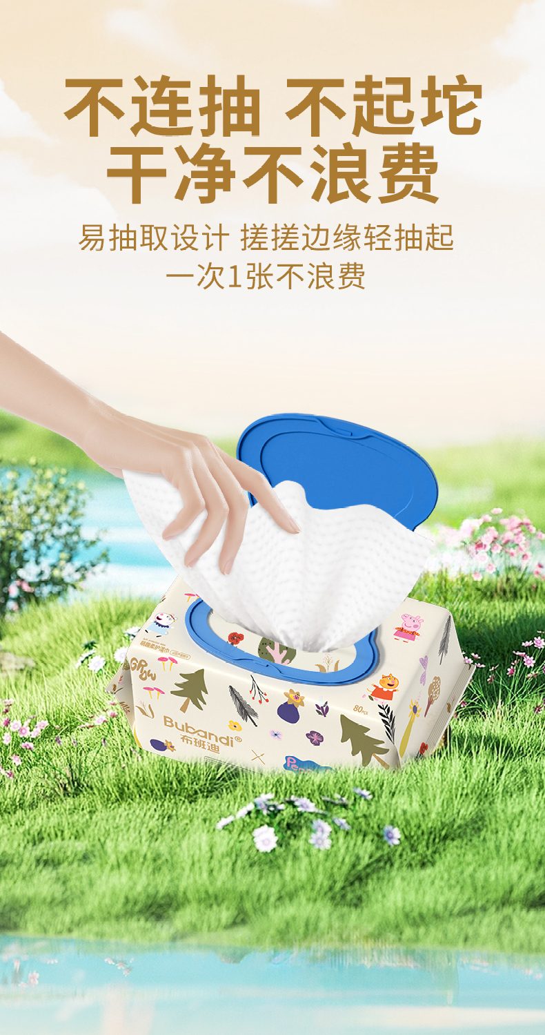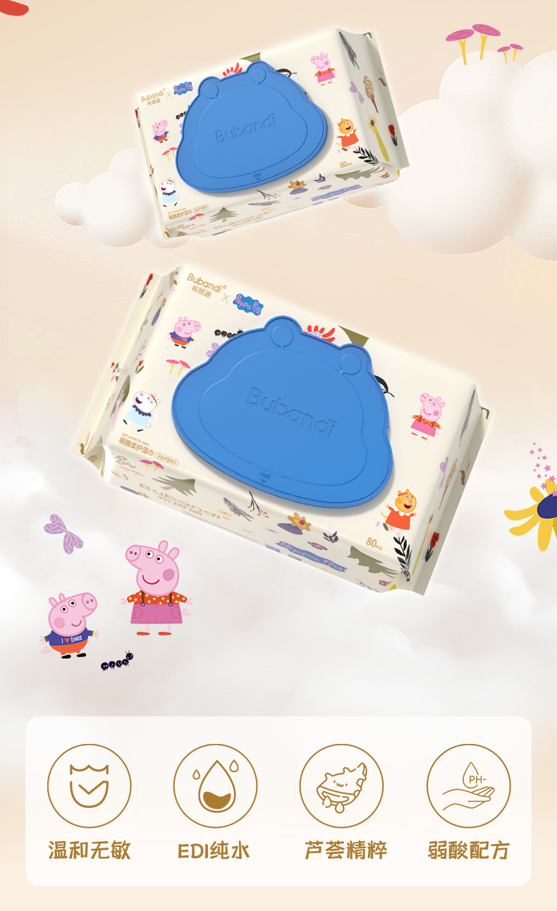【小猪佩奇联名款湿巾】布班迪婴儿手口湿巾三安认证EDI纯水芦荟精华护肤