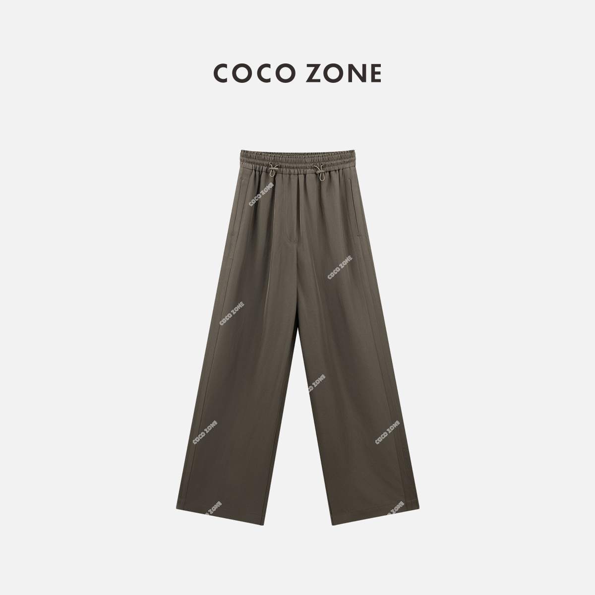 COCO ZONE“卡米拉高定”夏季时尚松紧腰抽绳休闲裤简约垂感纯色直筒裤CC1B1024