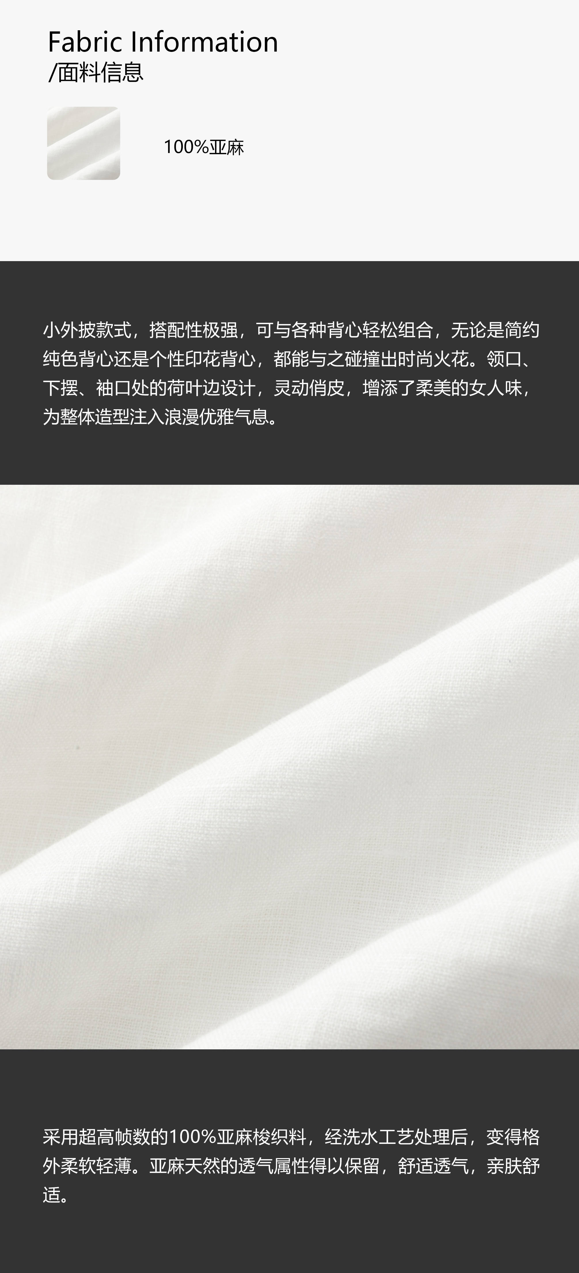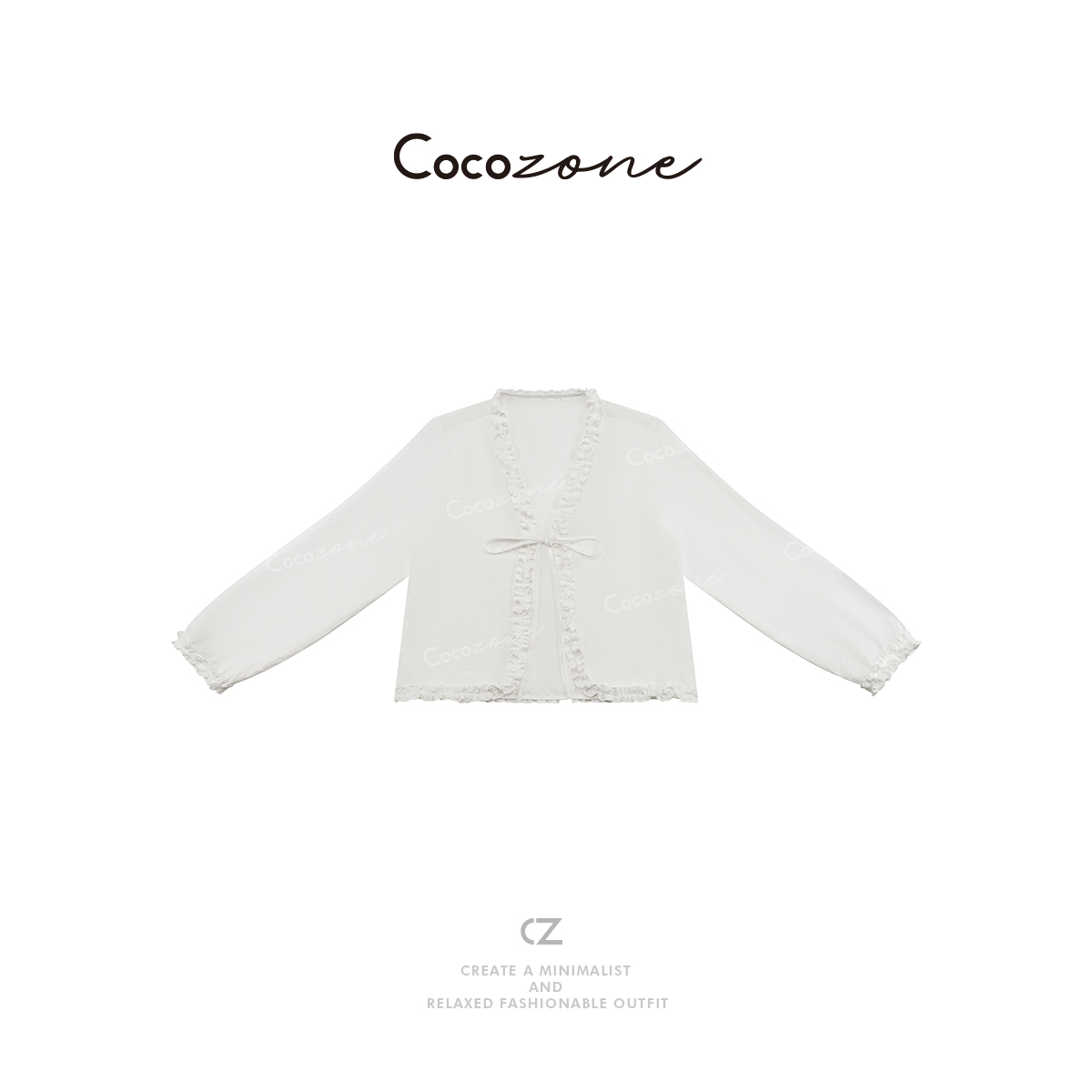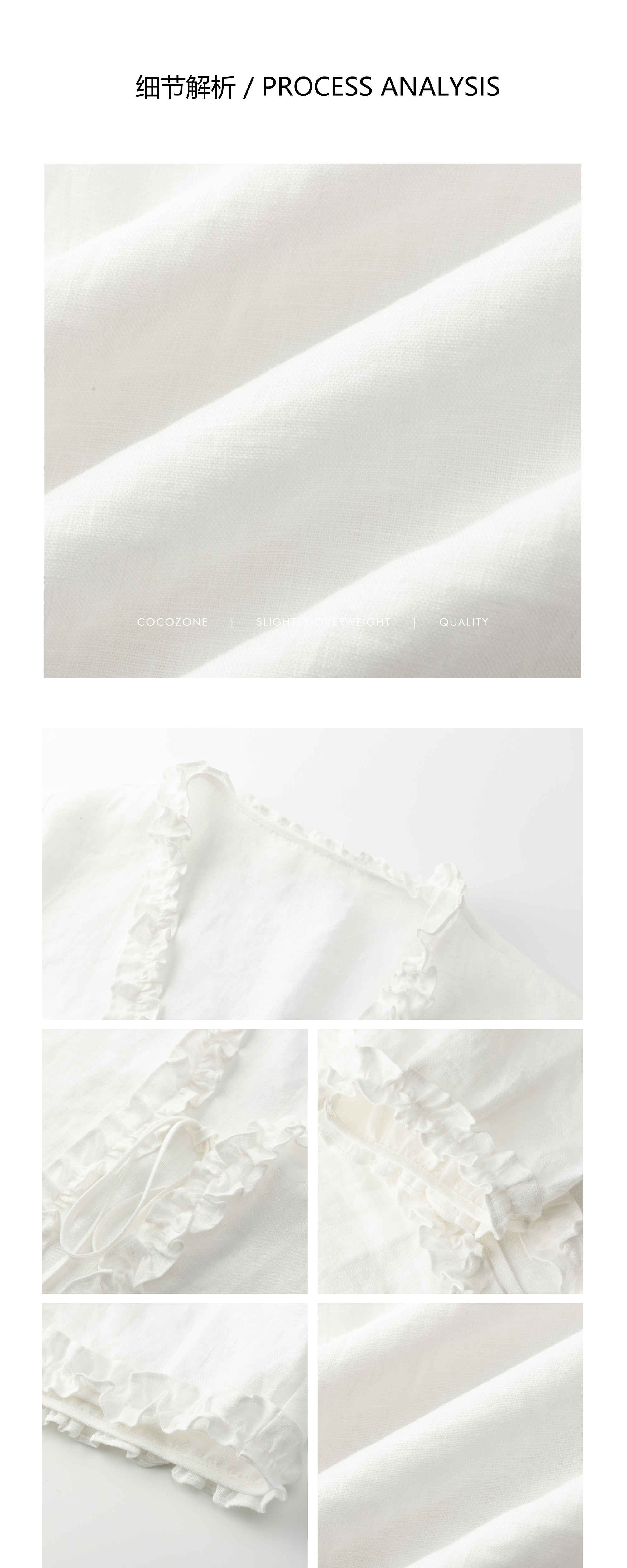 COCO ZONE 刘一一【100亚麻】春季木耳边V领绑带衬衫CD2A0752