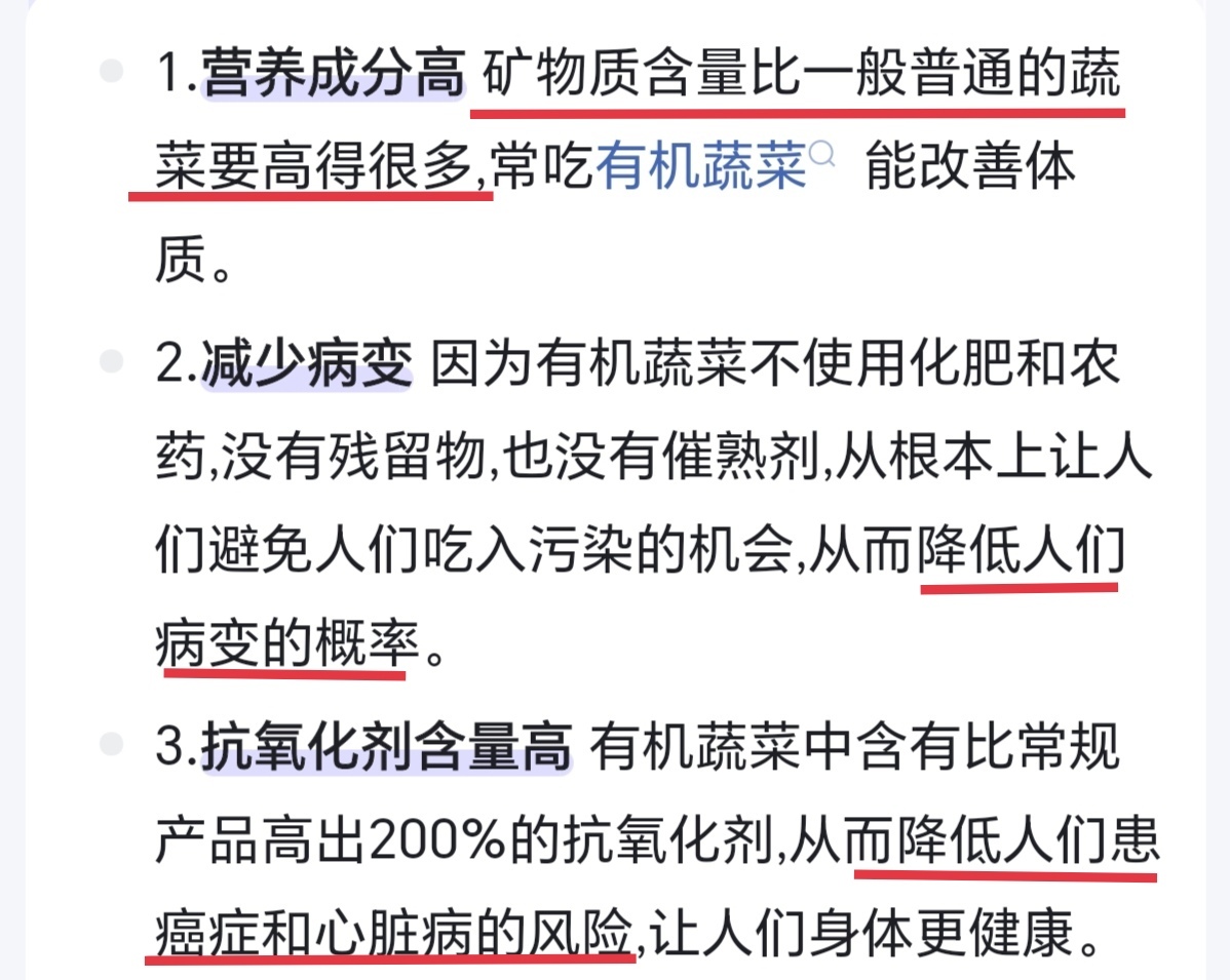 但有机蔬菜中的营养成份高✅维生素、矿物质含量比一般蔬菜要高很多