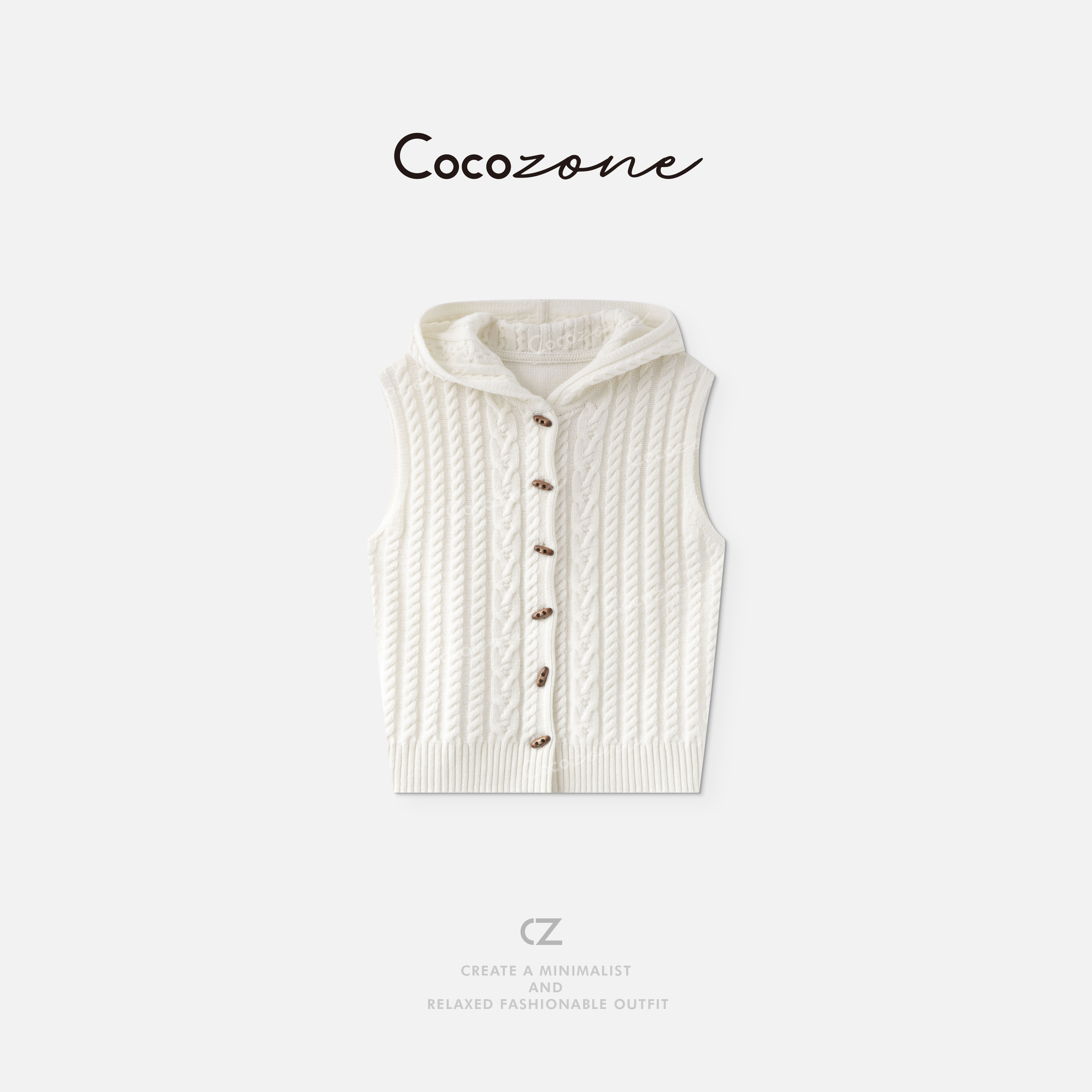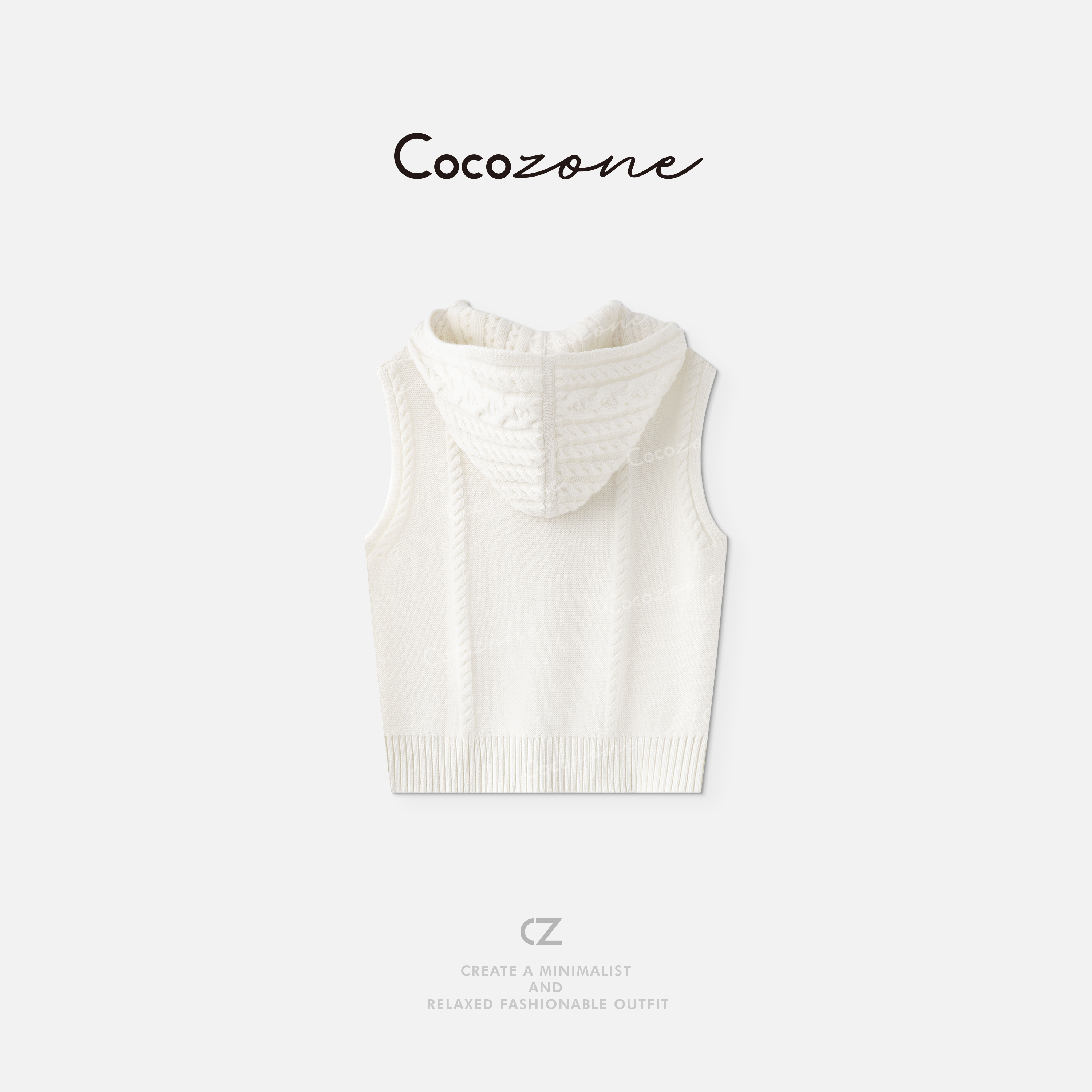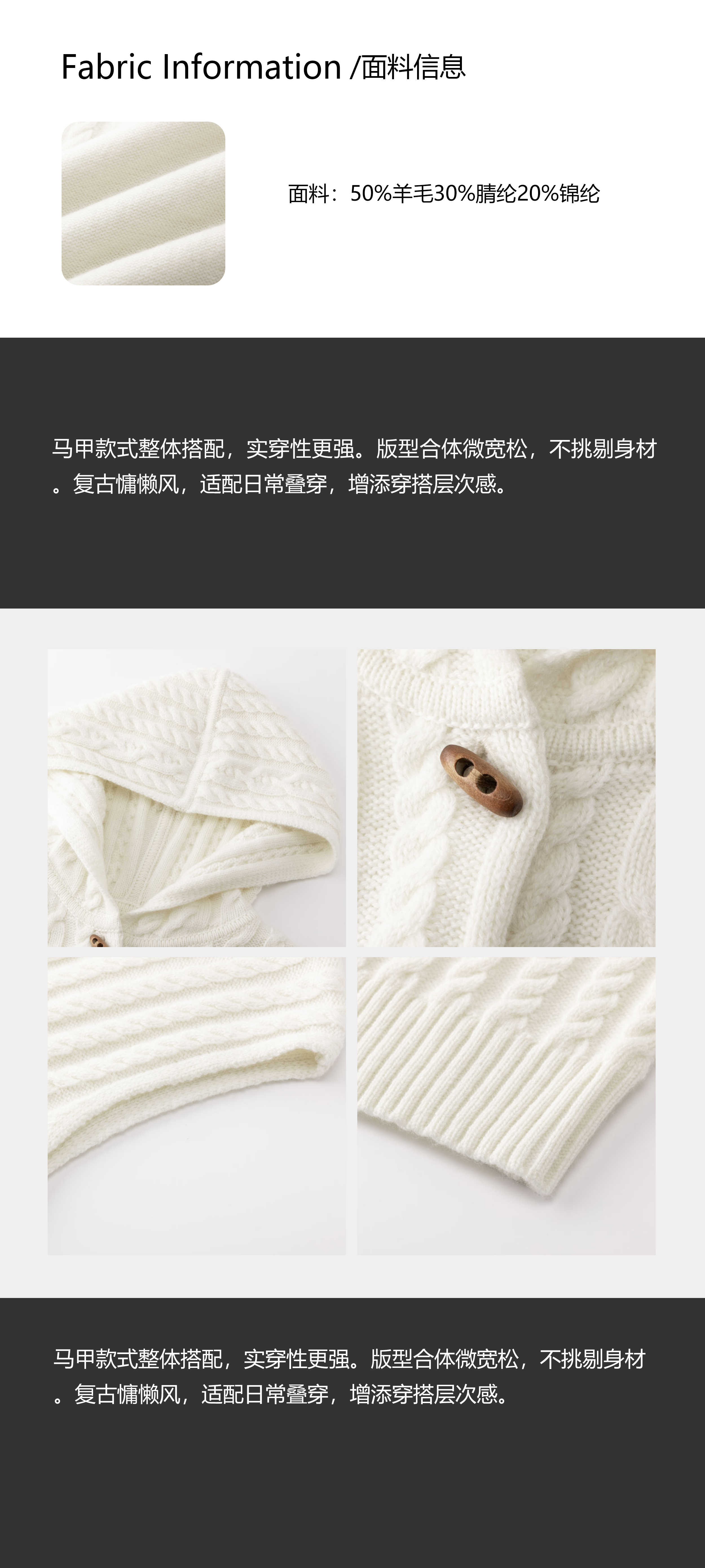 COCO ZONE 刘一一“牛角毛衣”羊毛混纺连帽麻花元素背心 CD2A1738