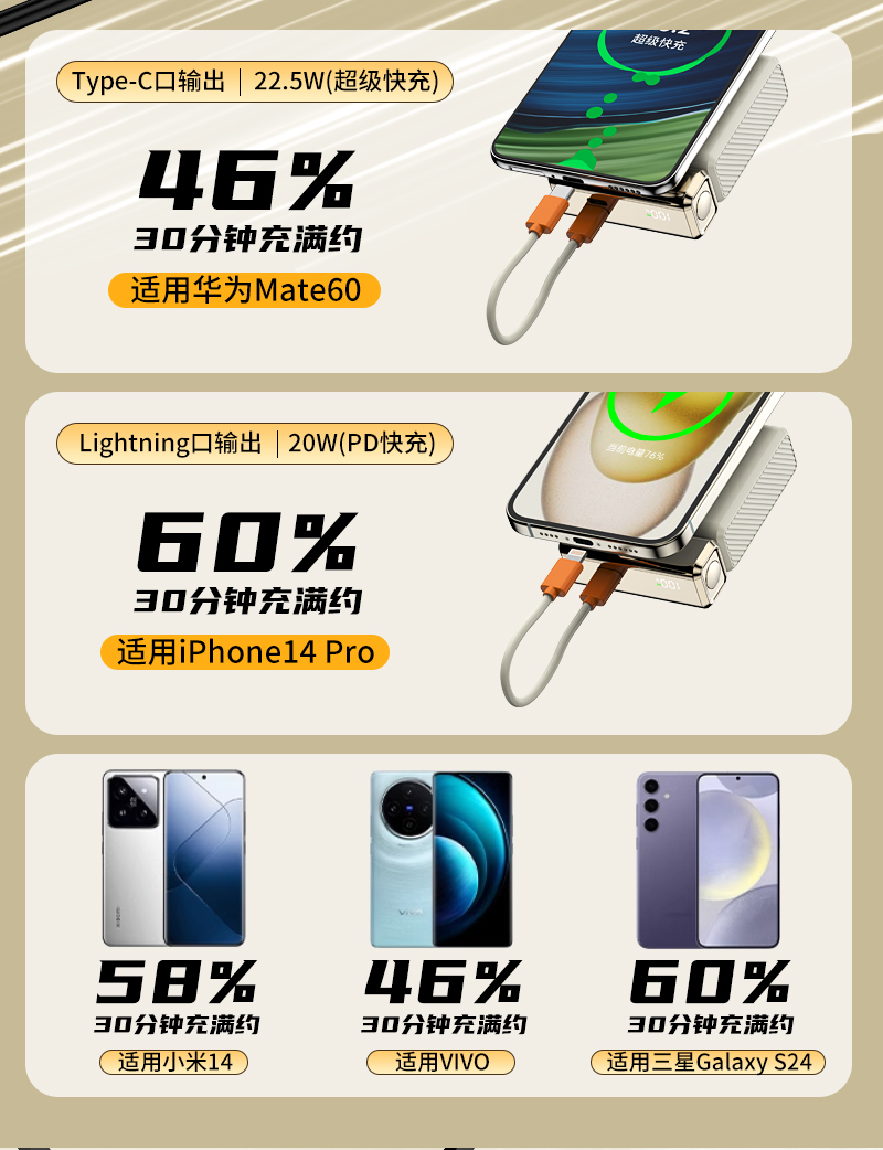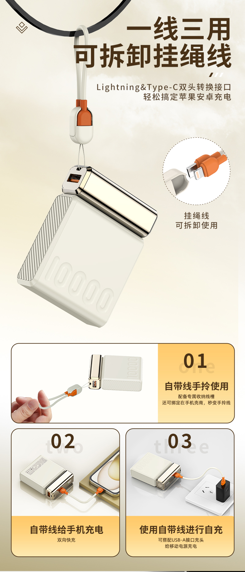 魔元(MOYEEO)MH107 自带线快充移动电源-10000mAh