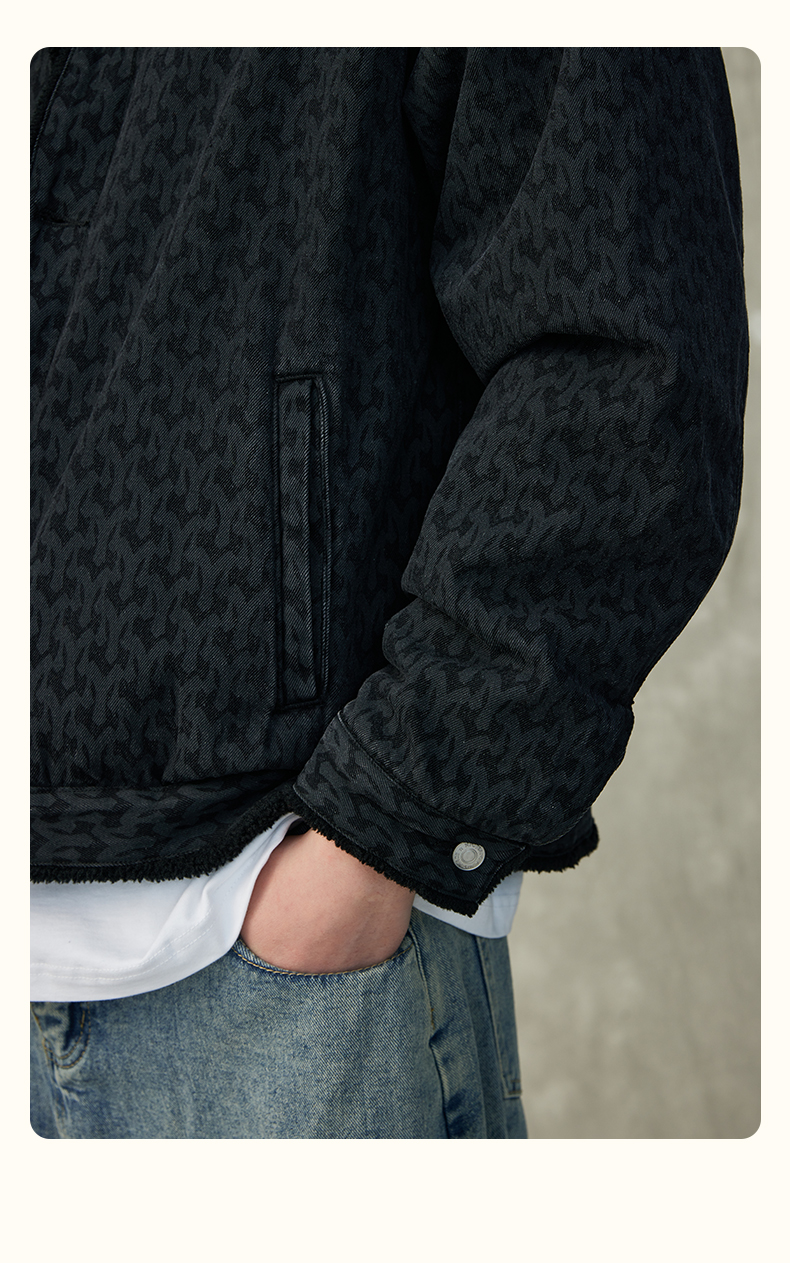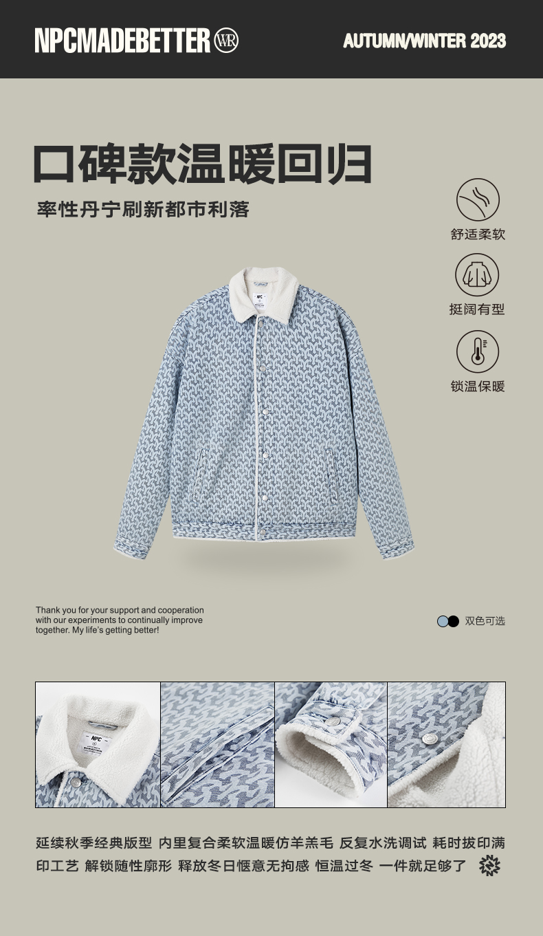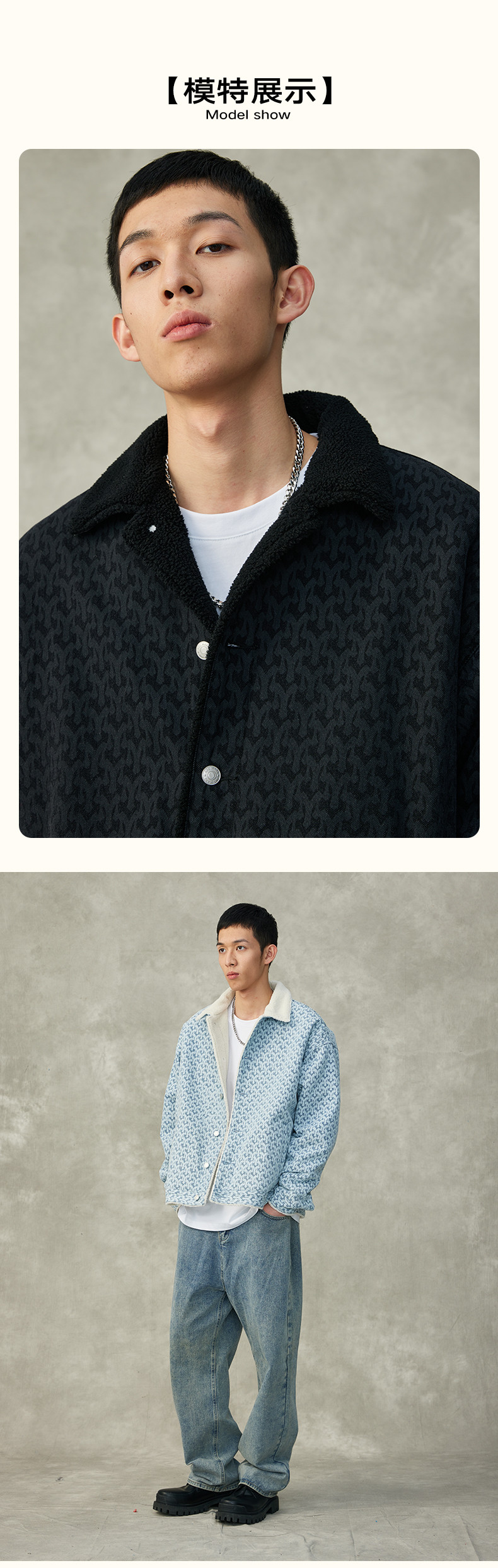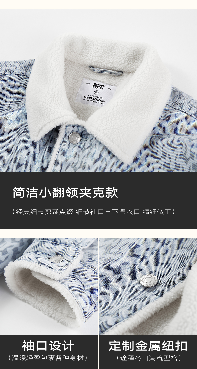 李晨nic专享满印仿羊羔绒翻领牛仔夹克外套保暖男C潮流NP3BDC05
