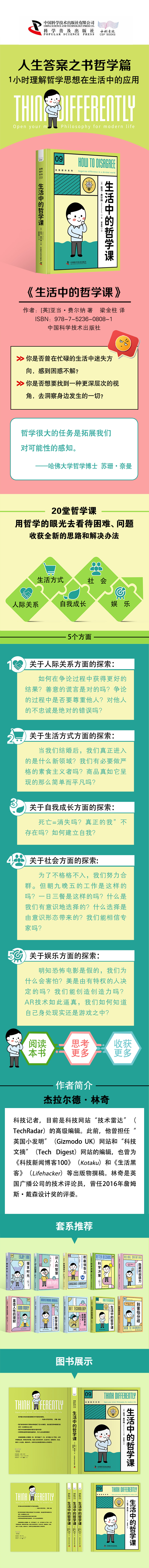1.本书为“人生答案之书哲学篇”。读者在生活中会遇到很多令其迷茫的时刻,用哲学的眼光去看待困难、问题,可能会获得全新的思路和解决办法。2.《生活中的哲学课》是“自我提升系列”的第9本。自我提升系列旨在帮助读者用科学的眼光看世界。