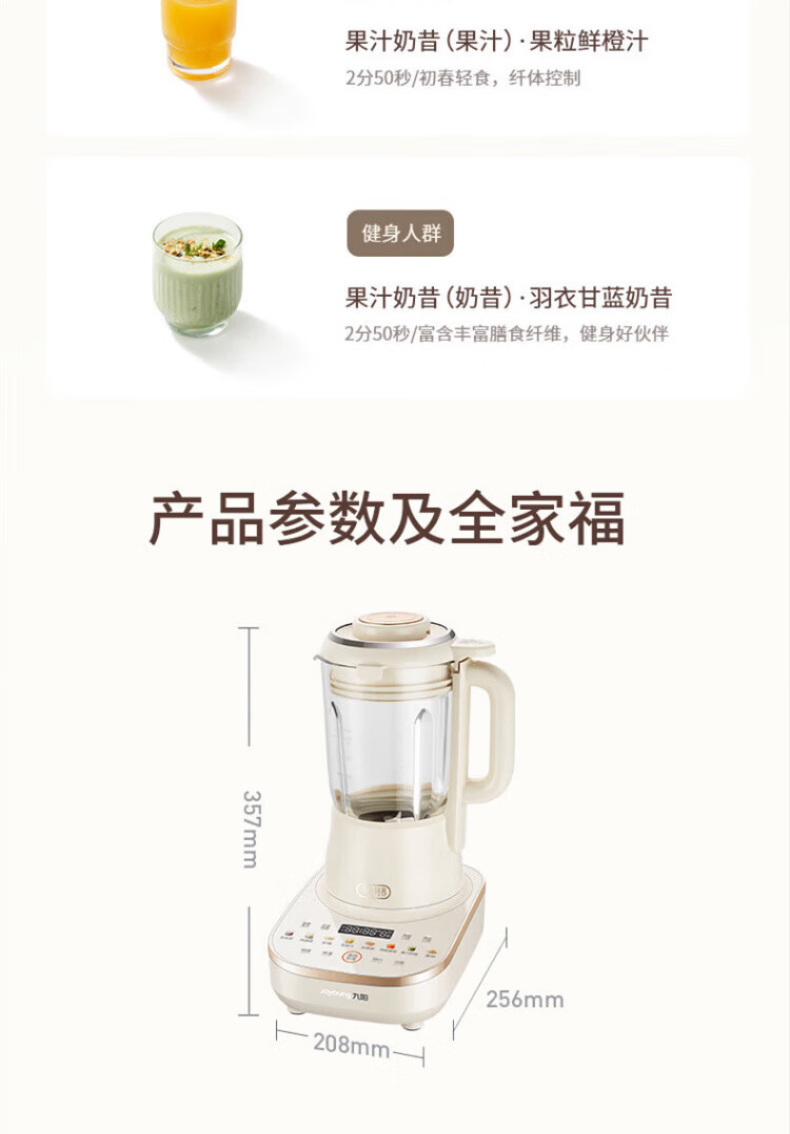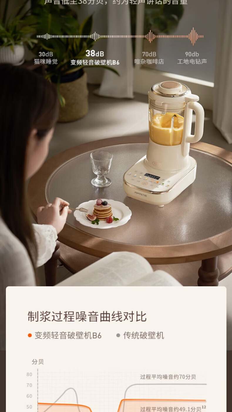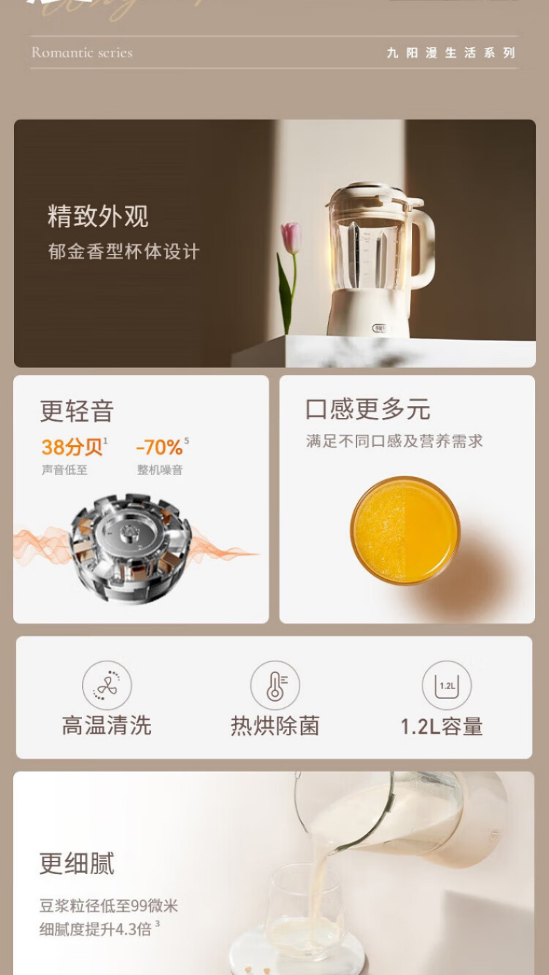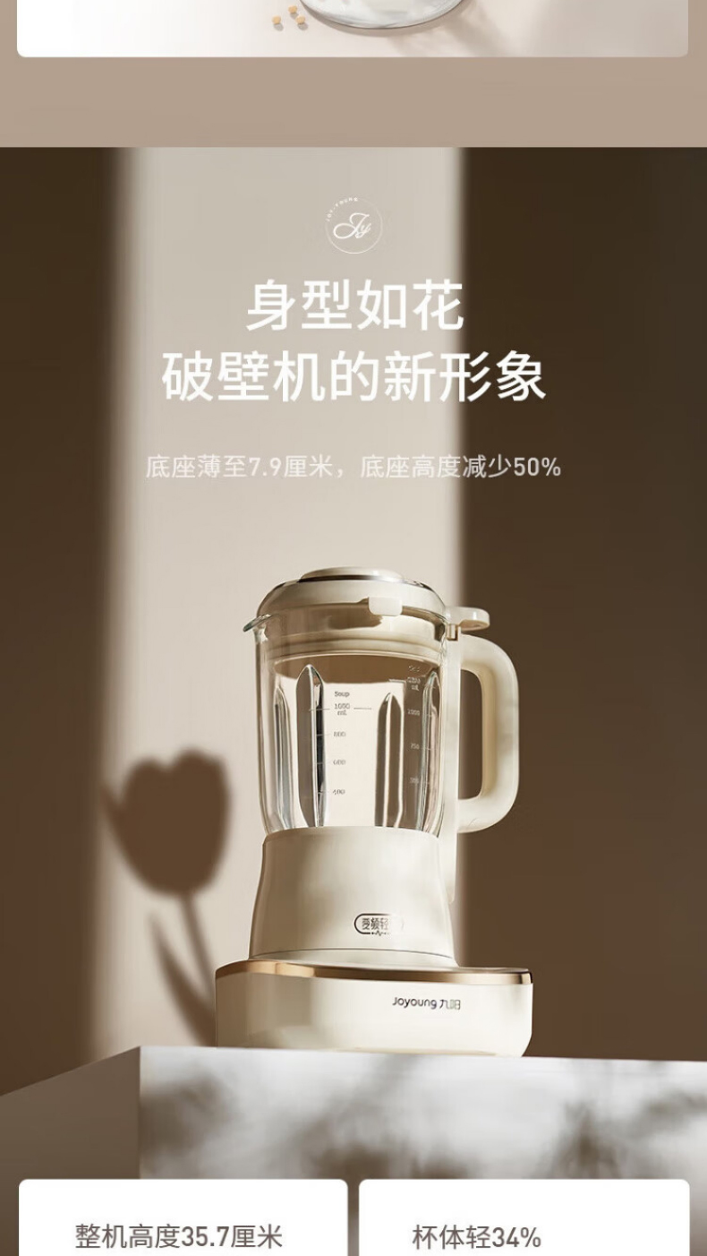 九阳变频轻音破壁机1.2L升小容量家用豆浆机榨汁多功能辅食料理机