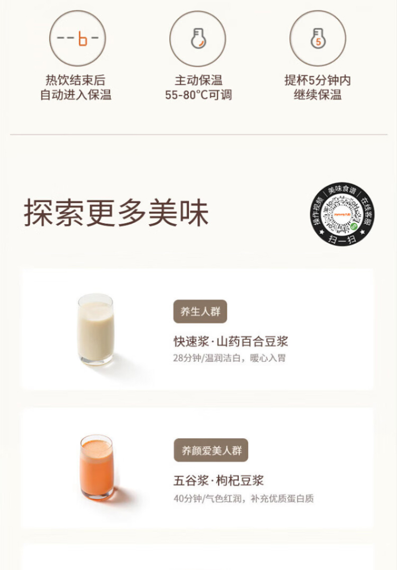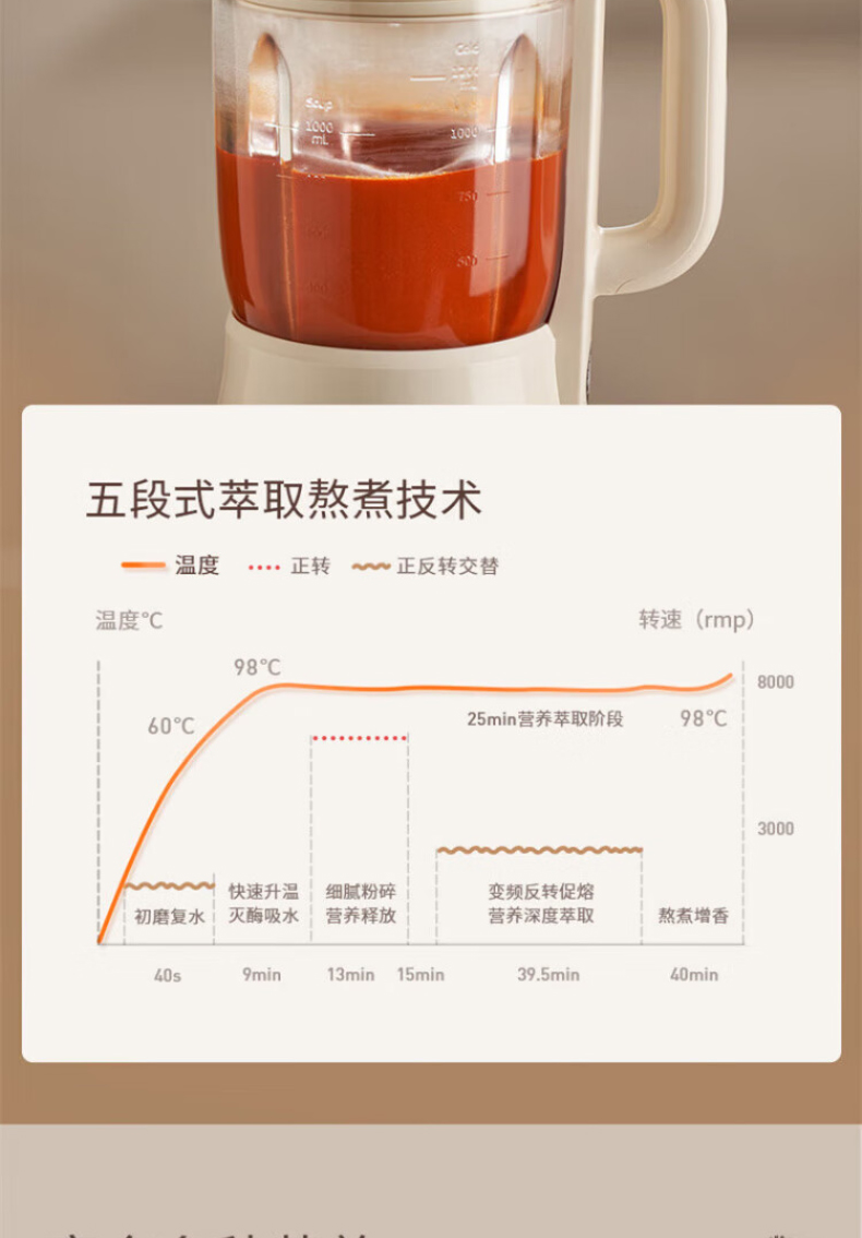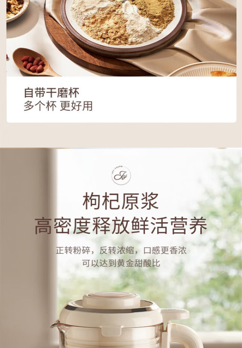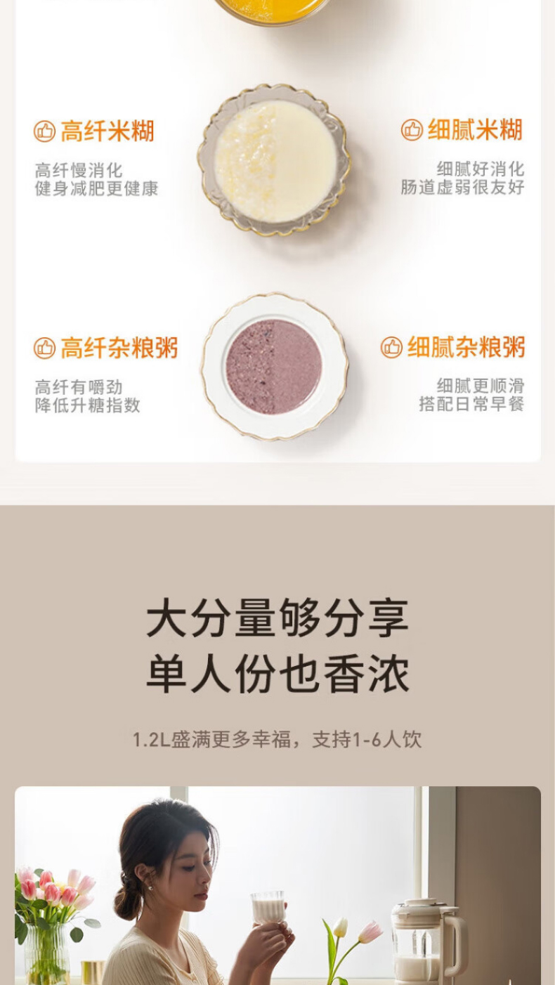 九阳变频轻音破壁机1.2L升小容量家用豆浆机榨汁多功能辅食料理机