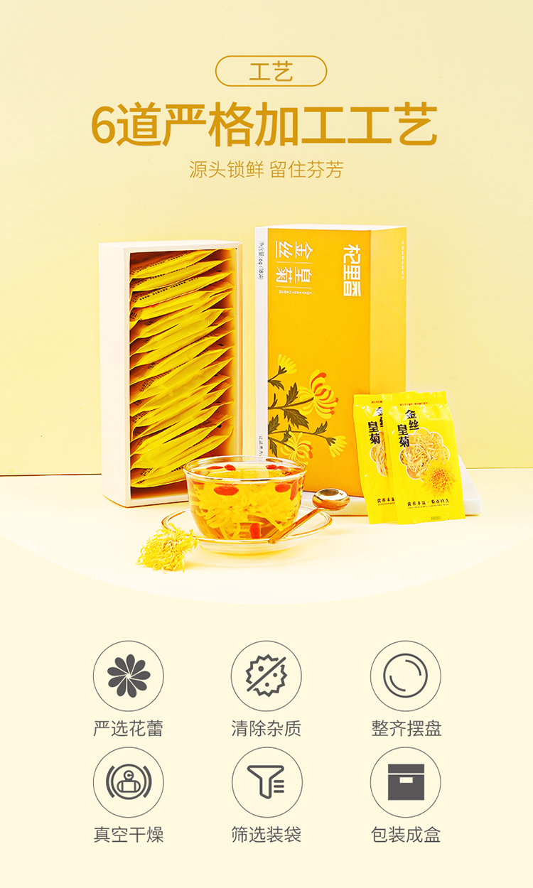 【冬季滋补】杞里香金丝皇菊6g黄山贡菊胎菊黄菊茶叶搭金银花大菊花*2盒