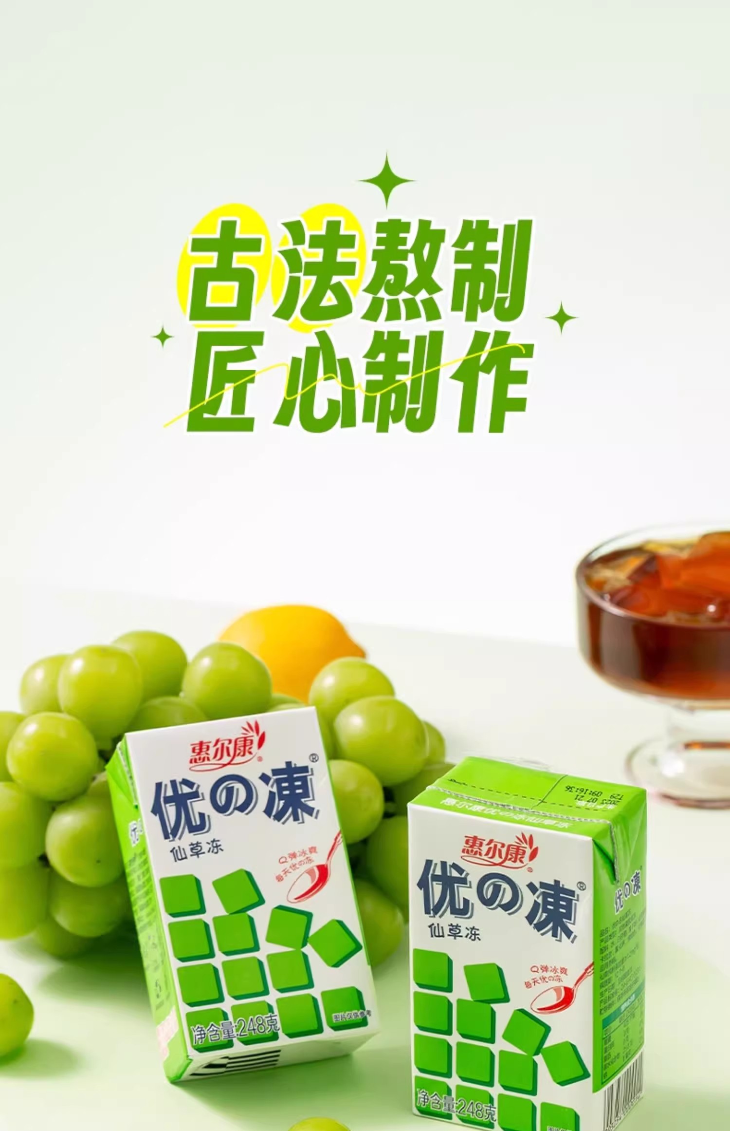 惠尔康优の冻仙草粉吸冻凉茶即食黑凉粉果冻纸盒饮料