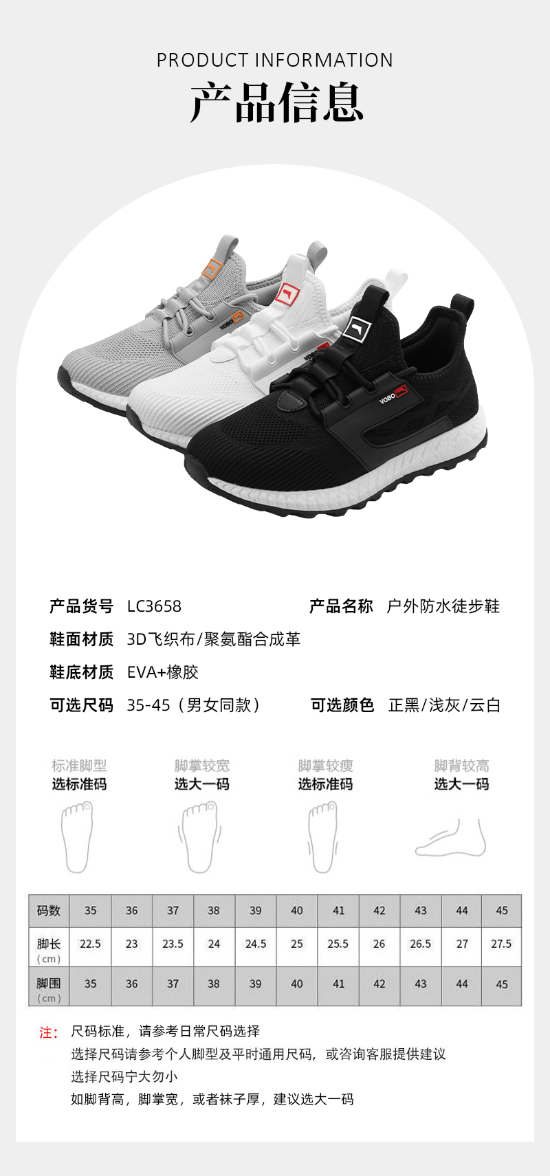 采用爆米花鞋底,EVA材质,不但轻盈,而且弹性十足,除了日常穿着,跑步、爬山、打球等也可以。而且虽然防水,但是有透气孔的,说白了就是:水进不去,气出得来。