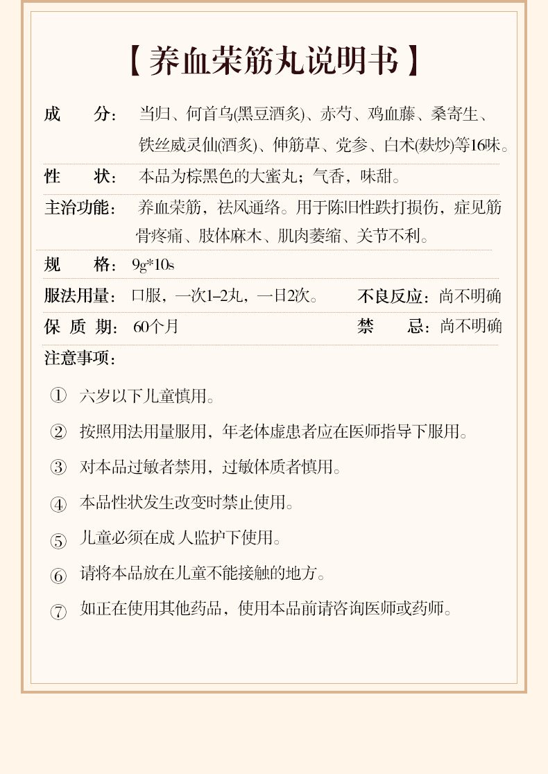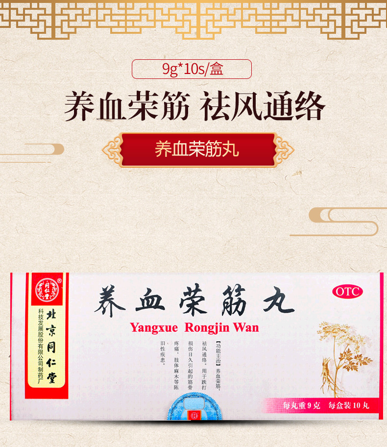 北京同仁堂 养血荣筋丸9g*10丸通络筋骨疼痛跌打损伤风湿肢体麻木