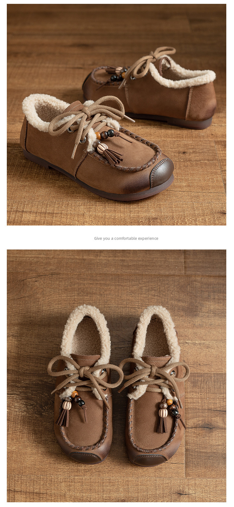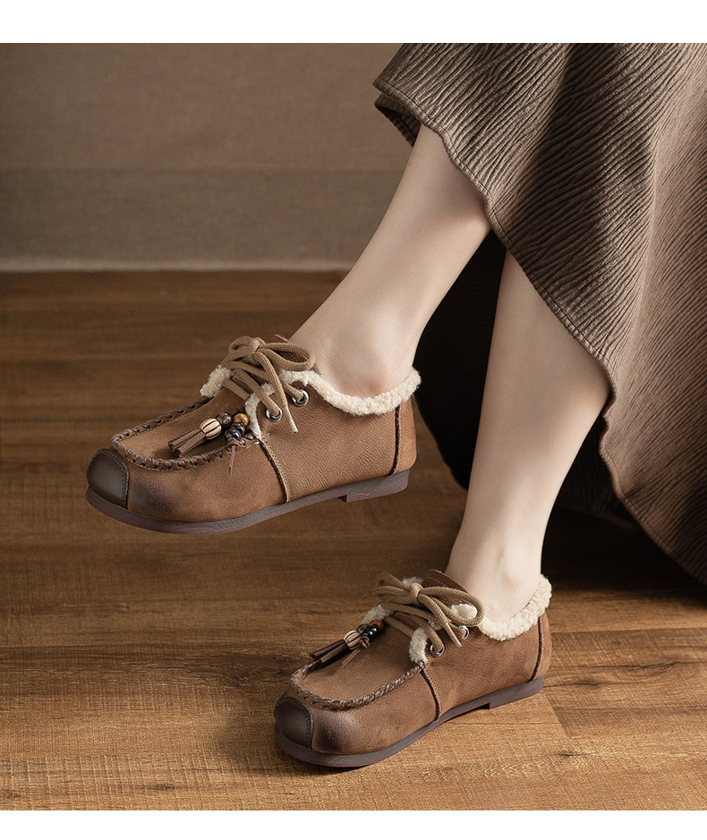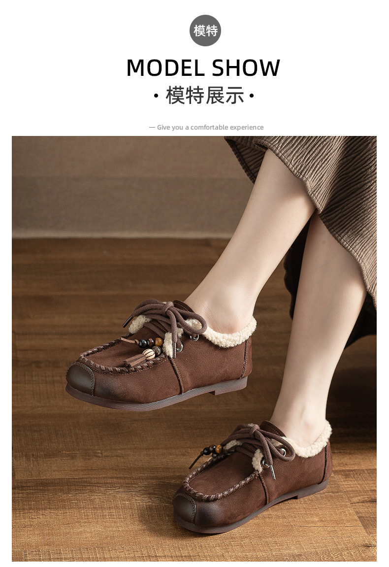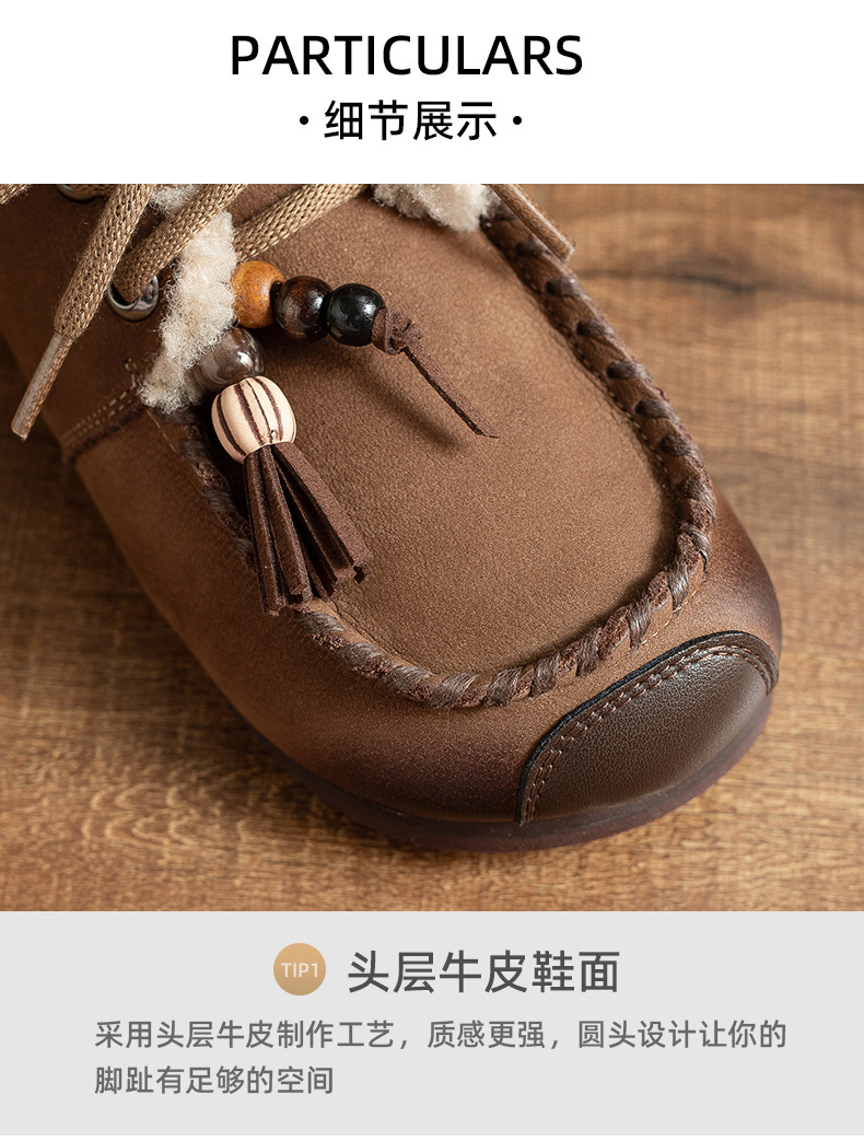 头层牛皮!2025宽脚胖脚加厚保暖皮鞋复古民族风软底软面妈妈鞋系带毛鞋!