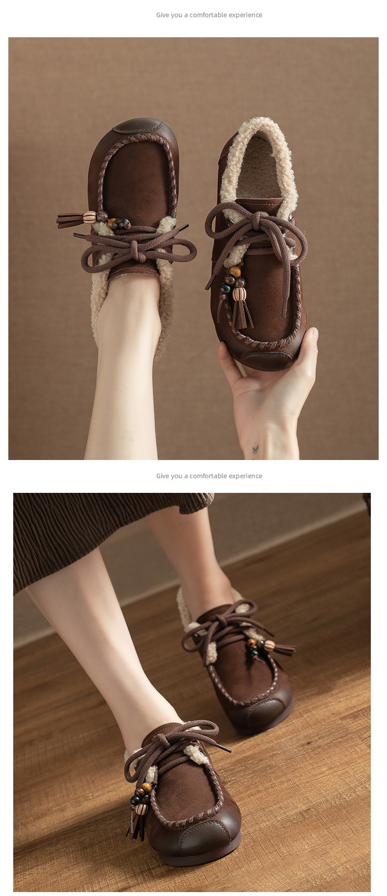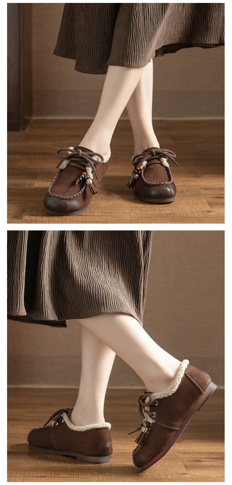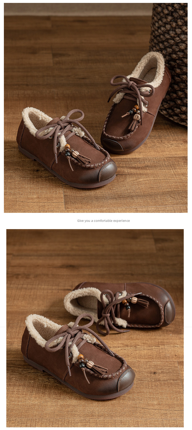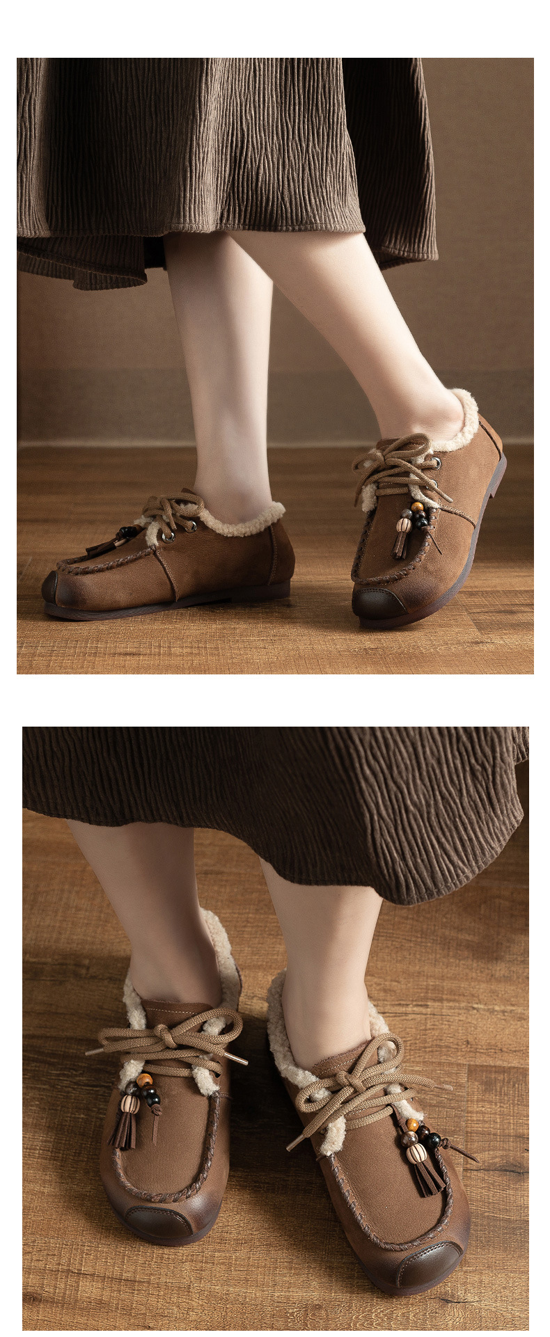 头层牛皮!2025宽脚胖脚加厚保暖皮鞋复古民族风软底软面妈妈鞋系带毛鞋!