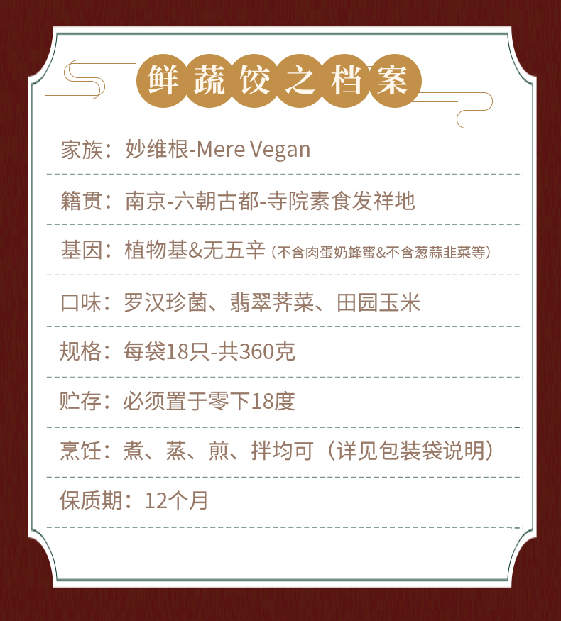 荠菜素饺子 玉米水饺 珍菌净素饺 (每袋18只,360g)妙维根【预售12.27号发】