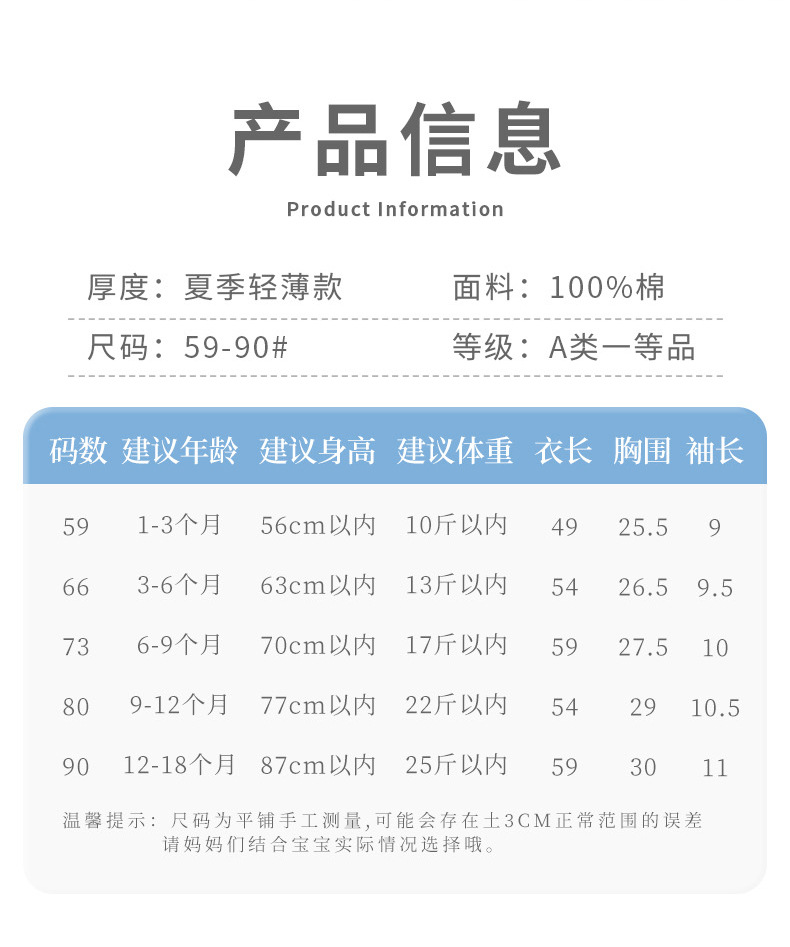 【夏季轻薄连体衣】高档a类短袖长裤婴儿连体衣夏季新生儿哈衣宝宝爬服外出全棉睡衣