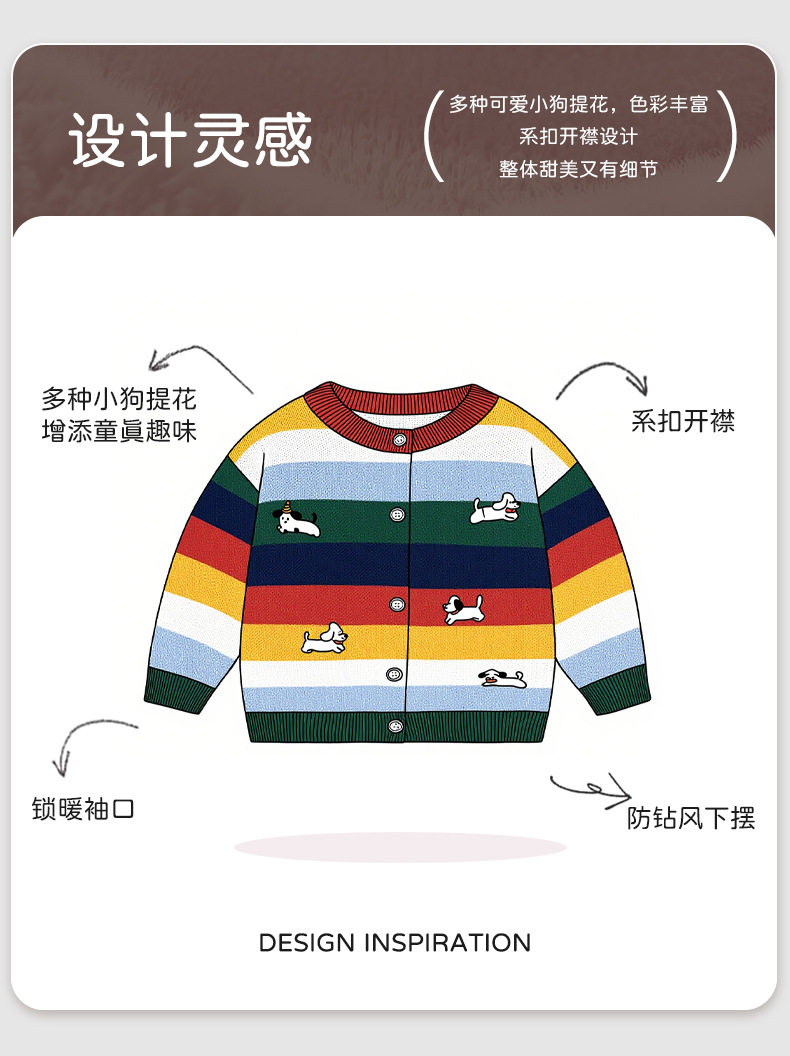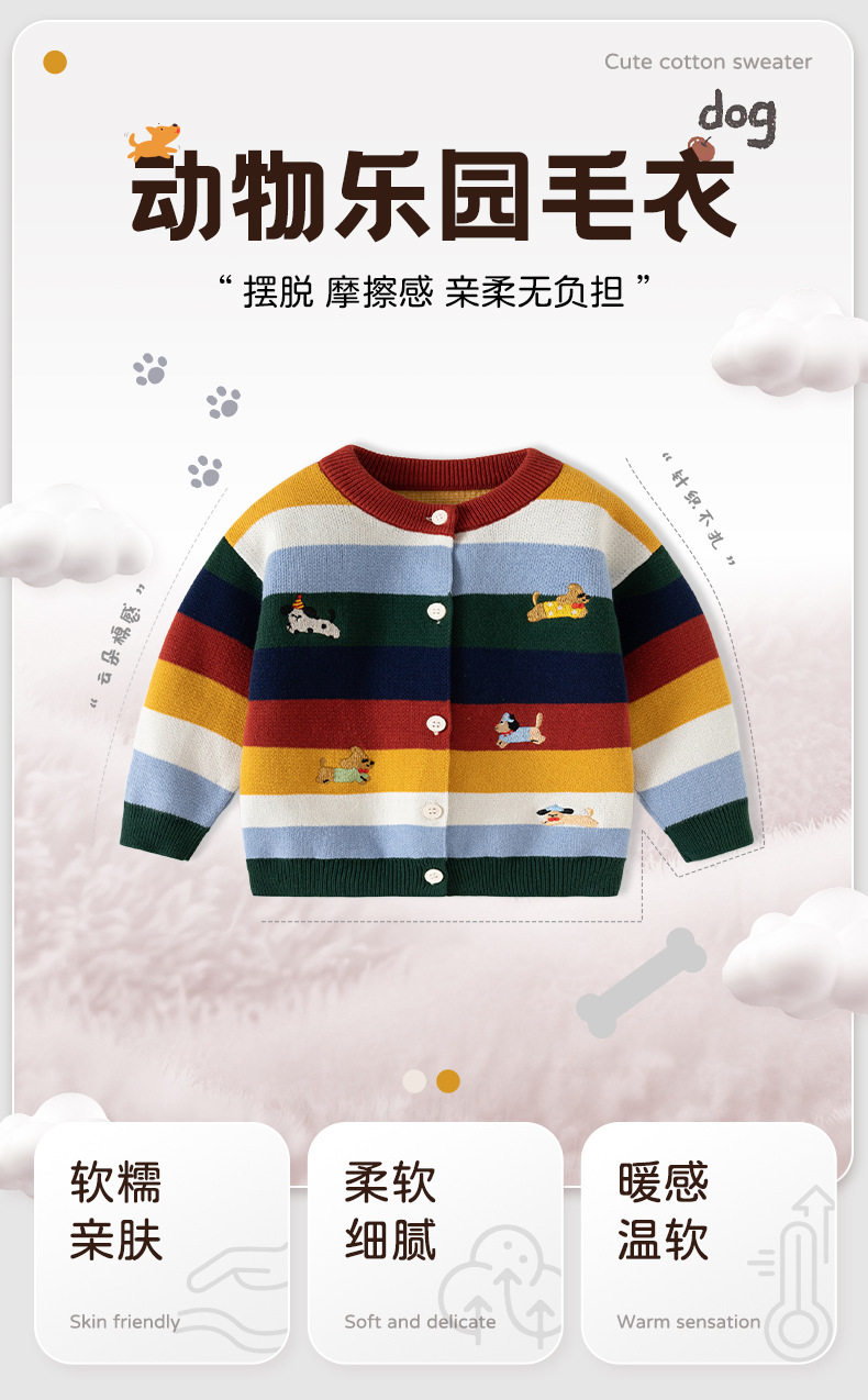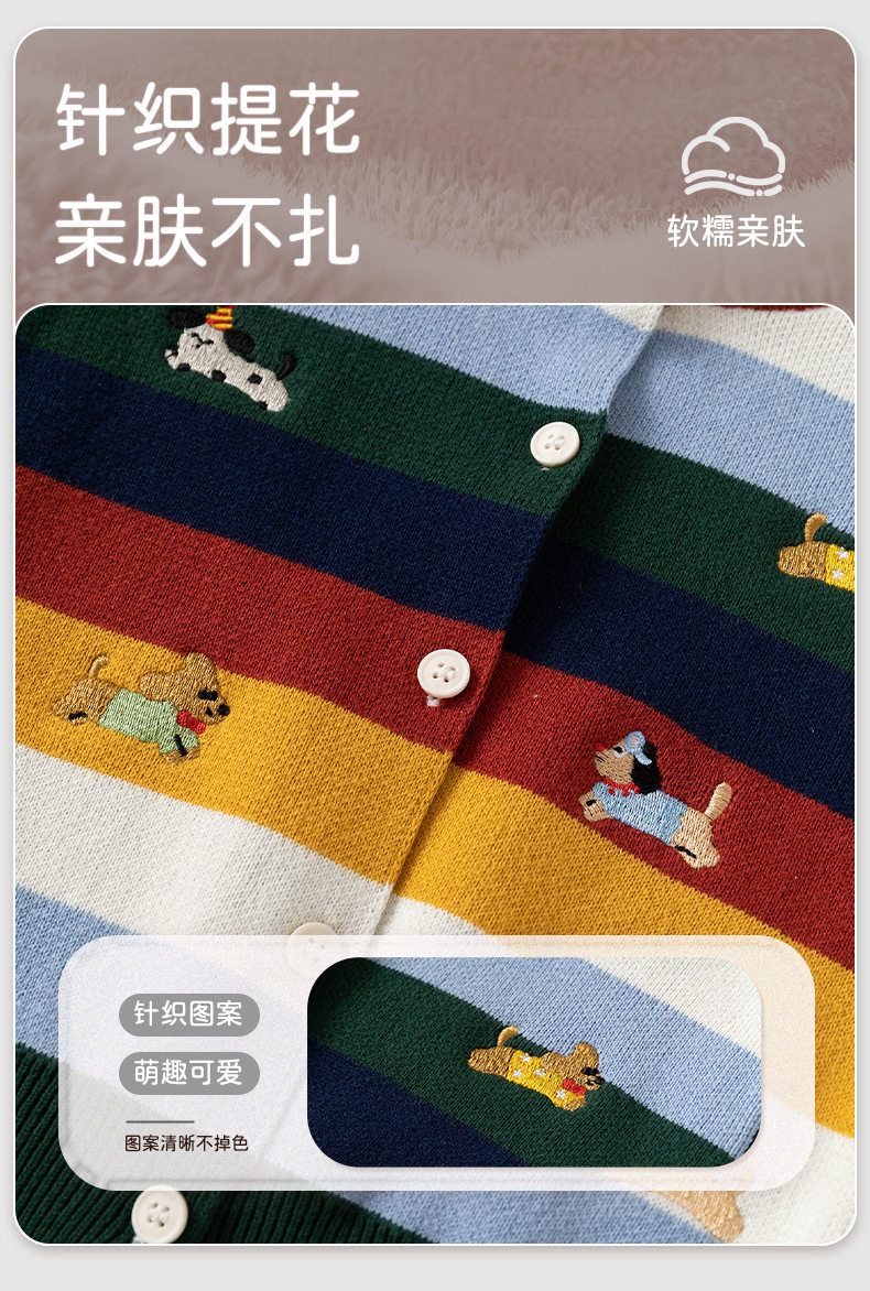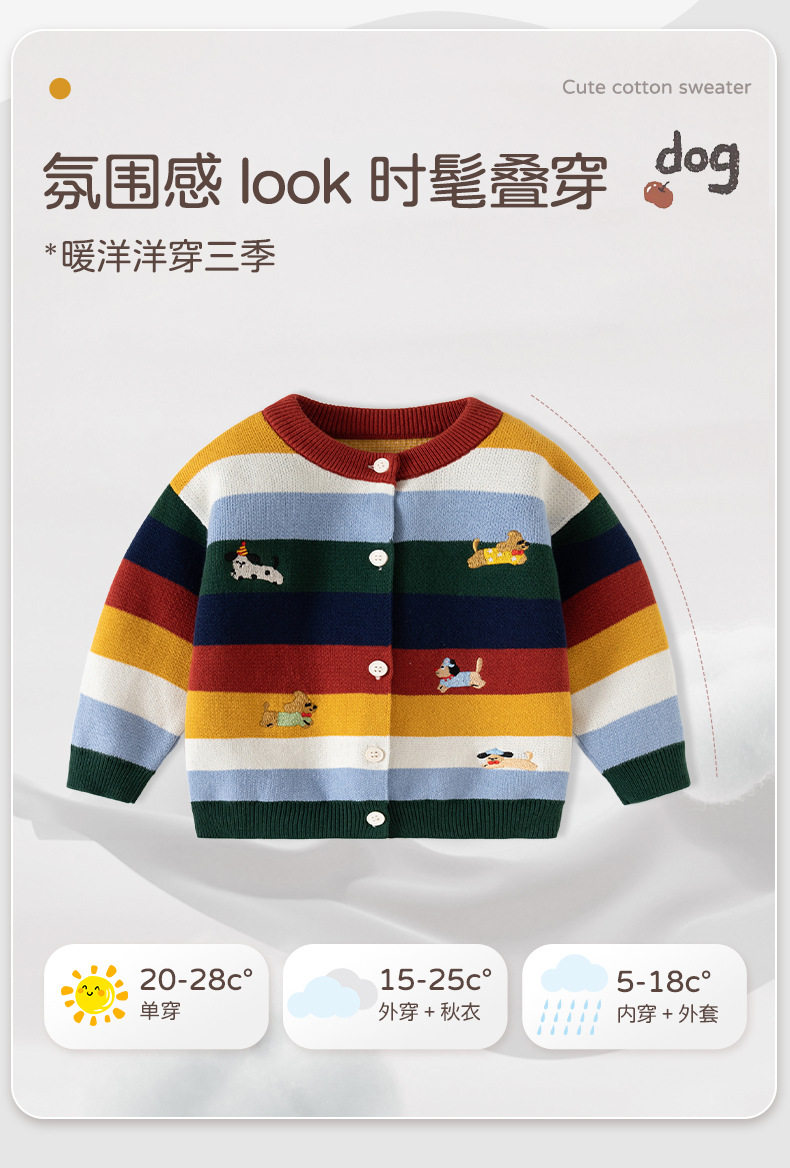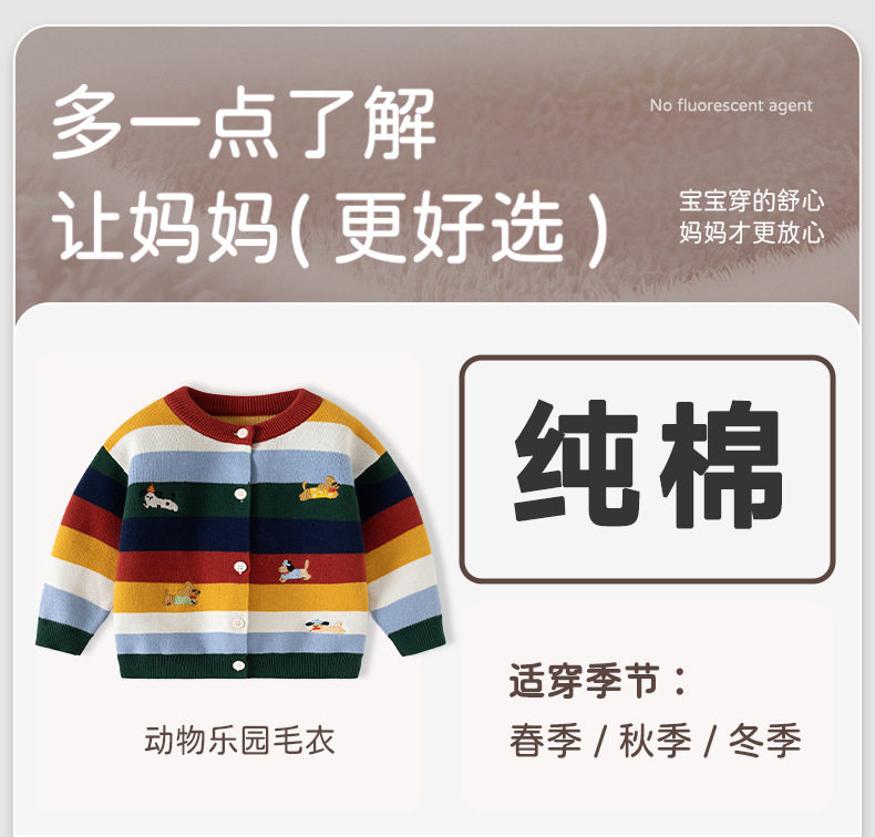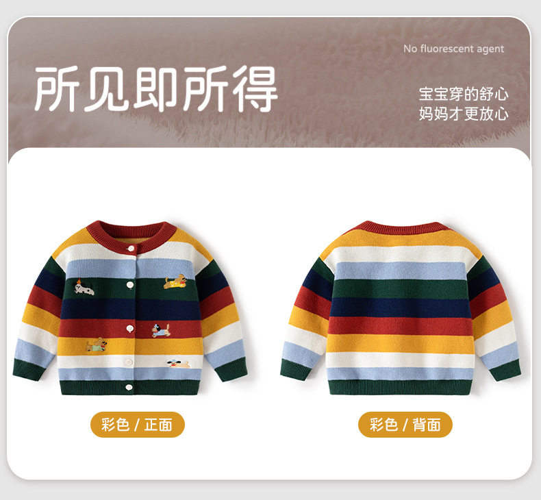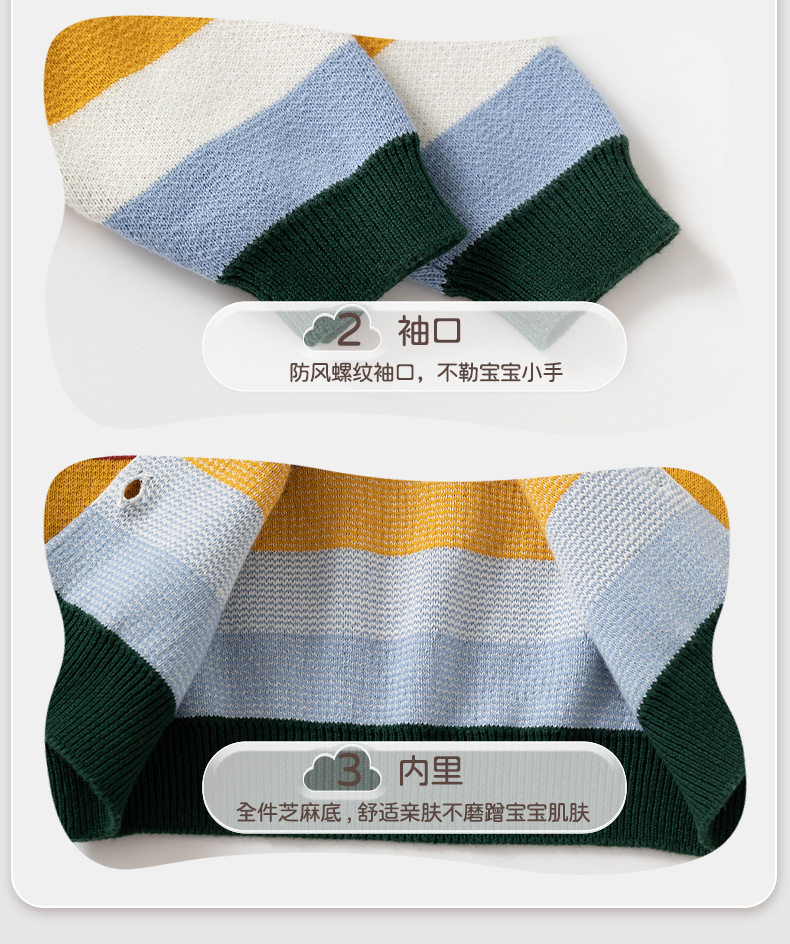 渐变拼色条纹针织婴儿毛衣开衫A类纯棉男童毛衣秋冬加厚婴儿外套
