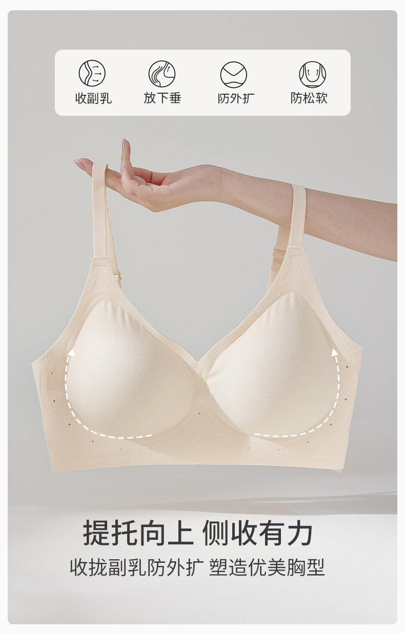 雅黛丽无痕内衣女小胸薄款透气文胸果冻条软支撑收副乳防下垂胸罩
