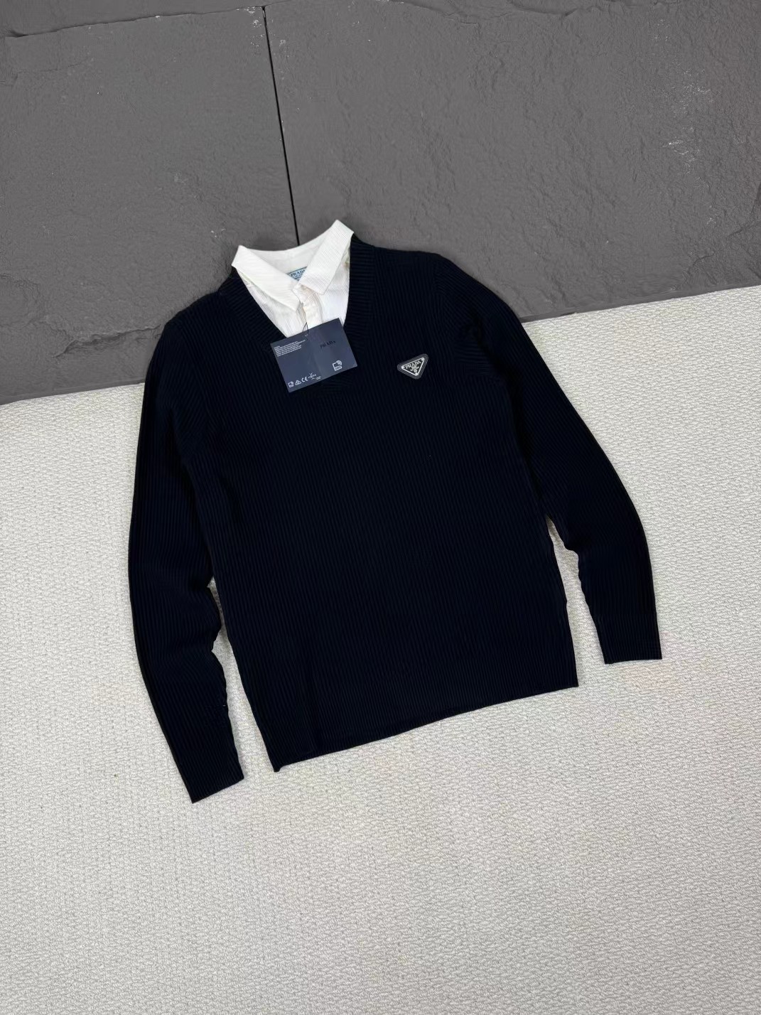 假两件针织毛衣黑三角假两件针织 男女同款,情侣间搭配也是jue佳选择哦!新款格纹杠条设计,增添了层次感,让你的背部看起来更挺拔。独特的设计,不仅增加了时尚感,还非常实用,轻松打造出懒散又时髦的风格。。针织材质,触感柔软,穿在身上就像被温暖的阳光拥抱,冬天里的小确幸!这款针织衫,jue对是你秋冬搭配的wan美选择!