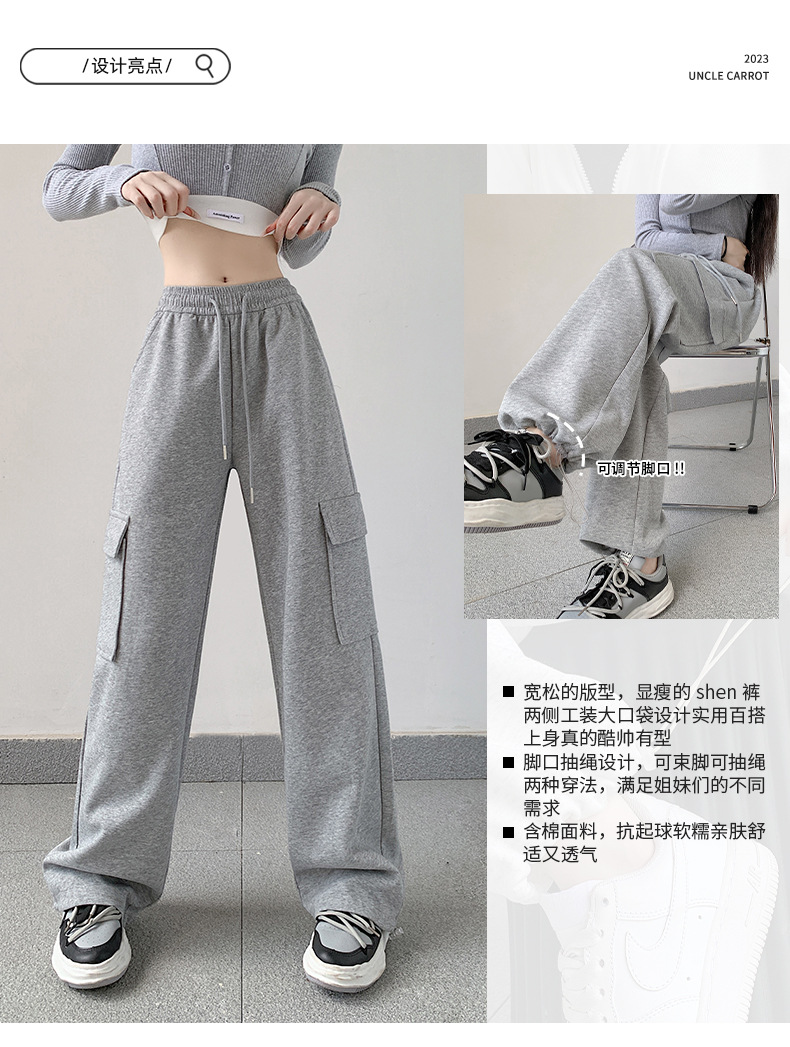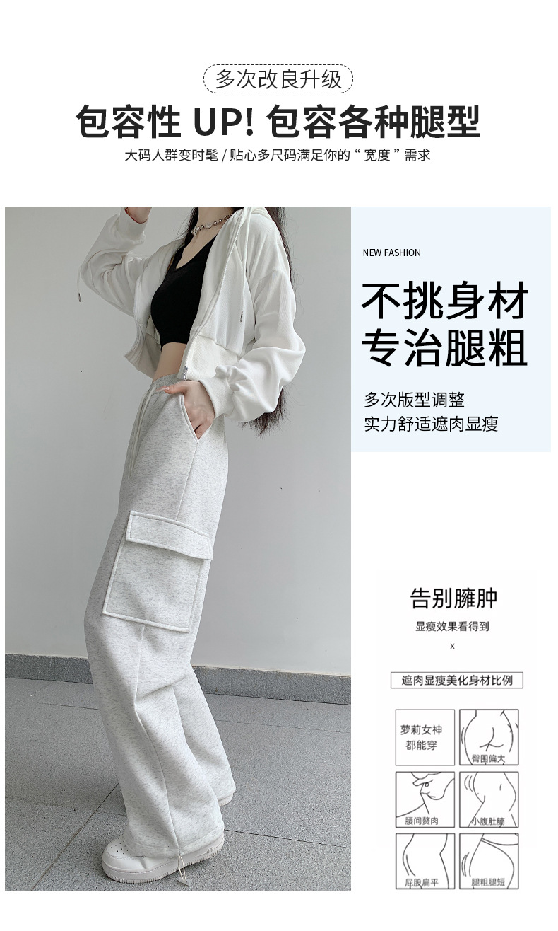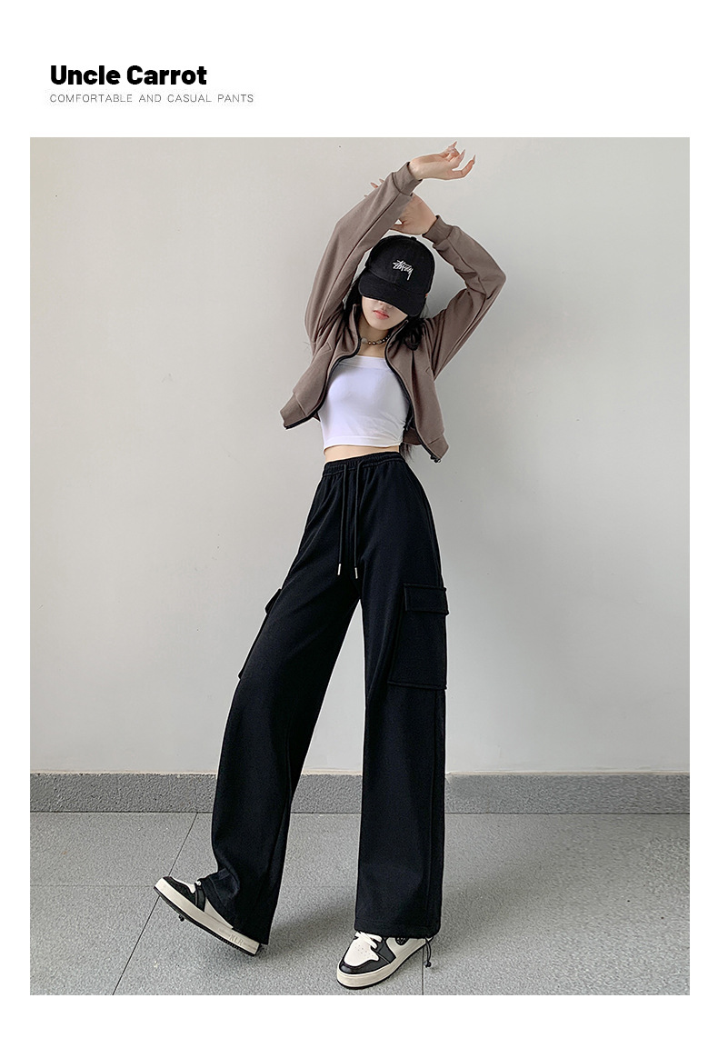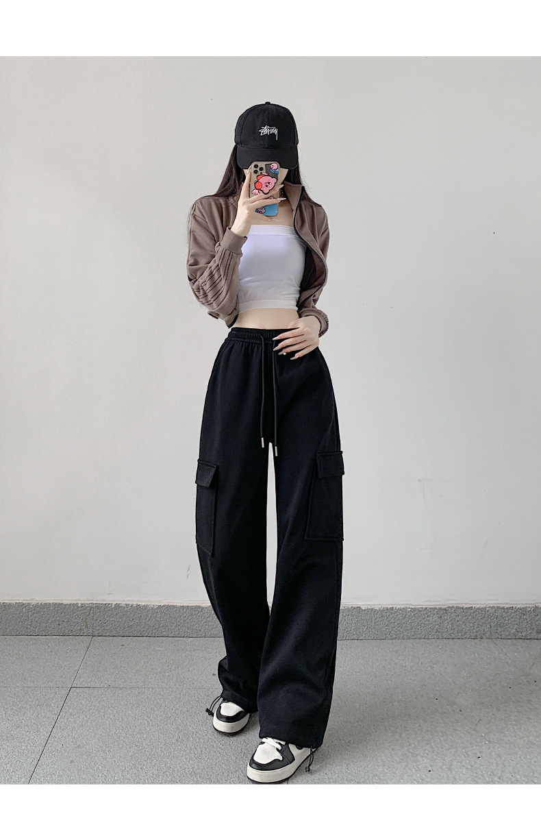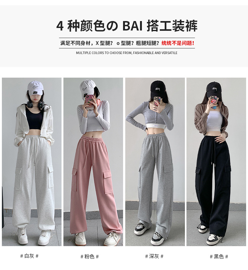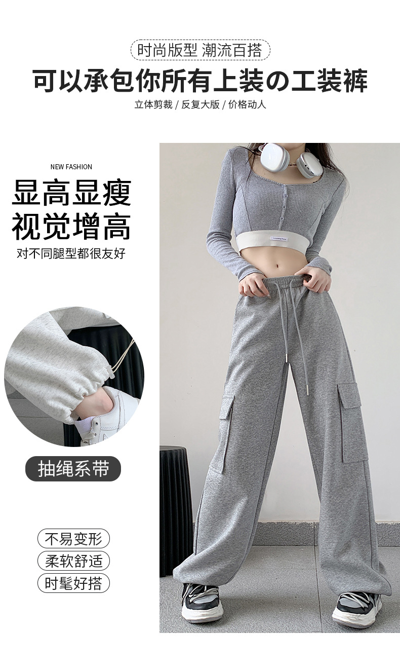【时尚舒适遮肉显瘦❗️工装阔腿裤】甜潮辣,工装裤女美式休闲运动裤子秋季新款高腰显瘦束脚裤胖mm直筒阔腿裤