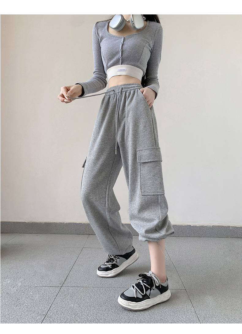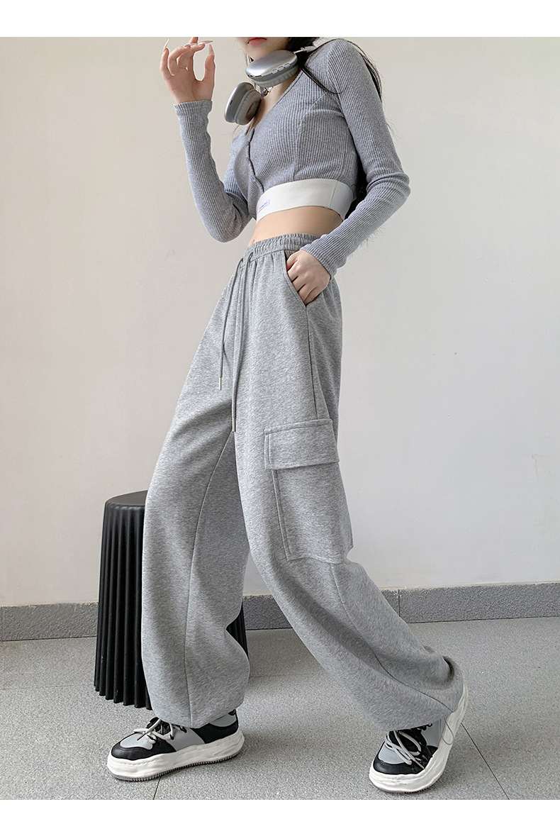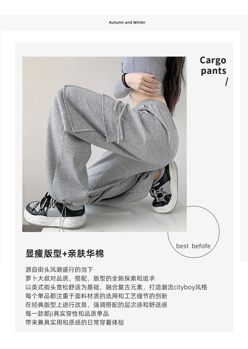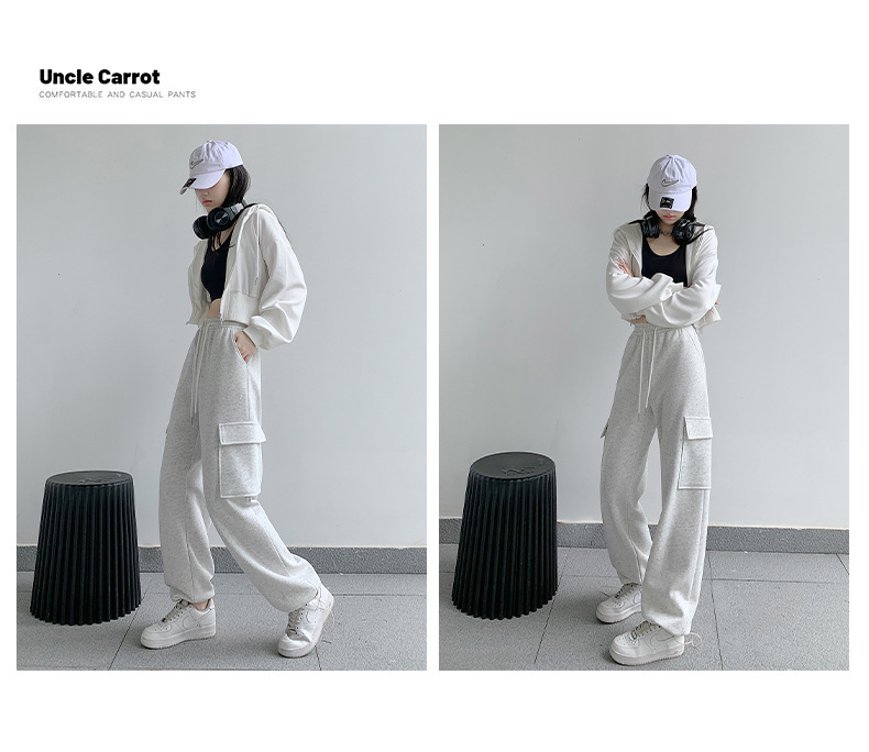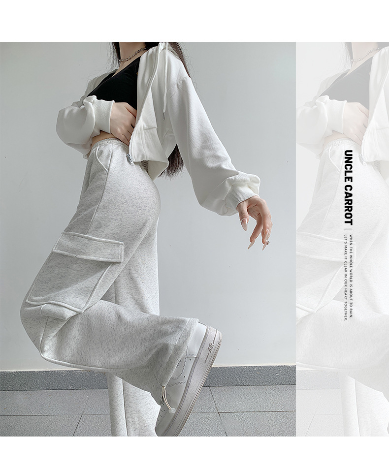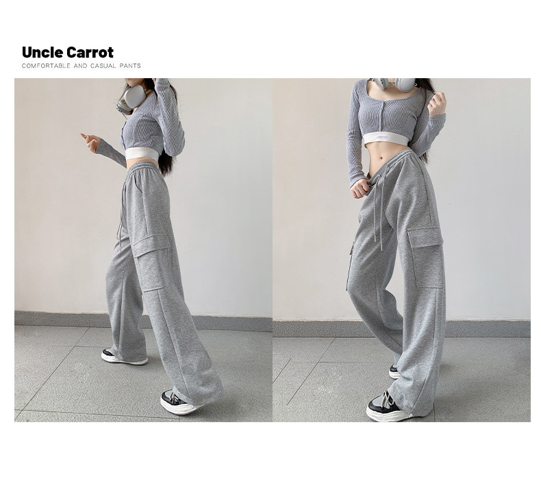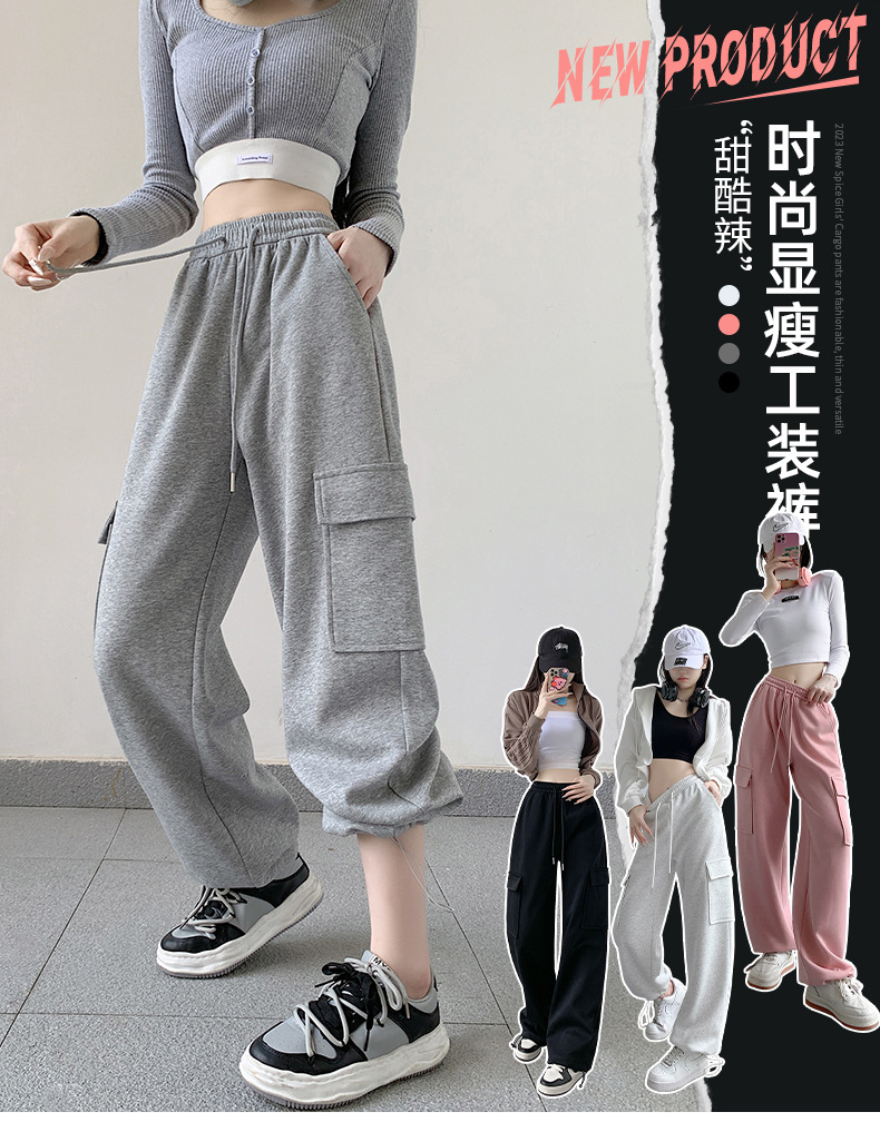 【时尚舒适遮肉显瘦❗️工装阔腿裤】甜潮辣,工装裤女美式休闲运动裤子秋季新款高腰显瘦束脚裤胖mm直筒阔腿裤