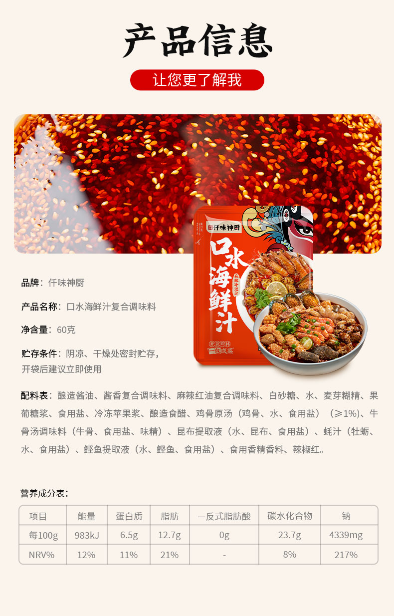 仟味神厨口水海鲜汁 麻辣捞汁海鲜调味料 红油凉拌一料多用