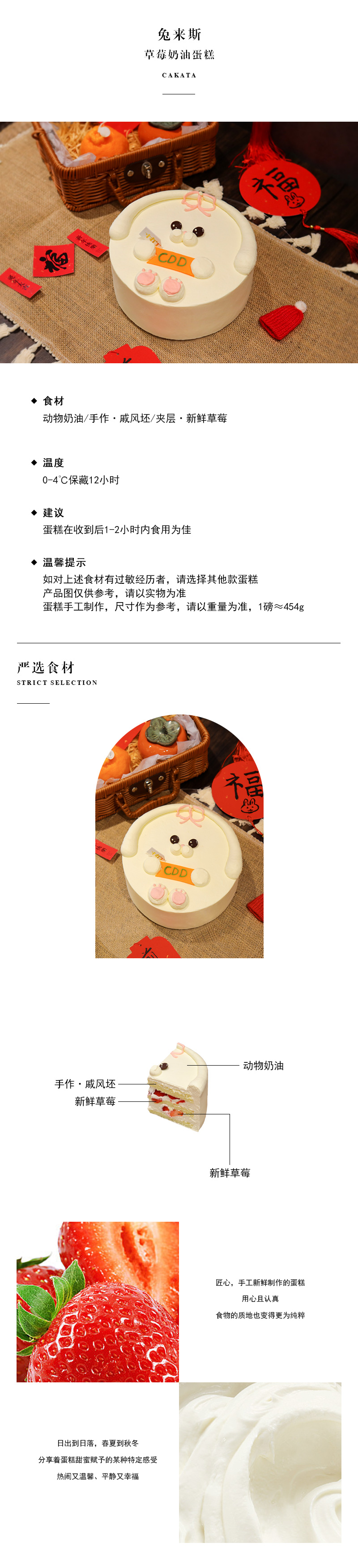 兔来斯·草莓奶油蛋糕(可备注少糖)