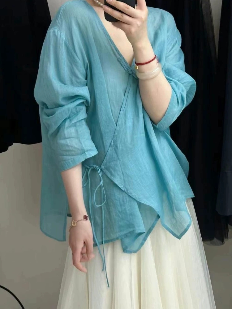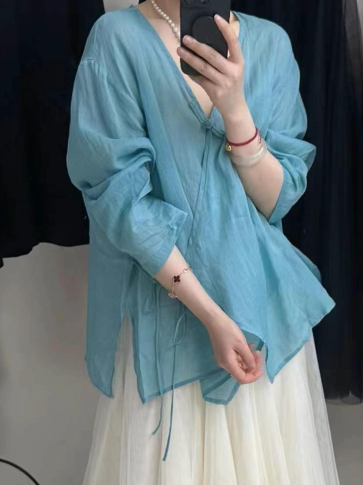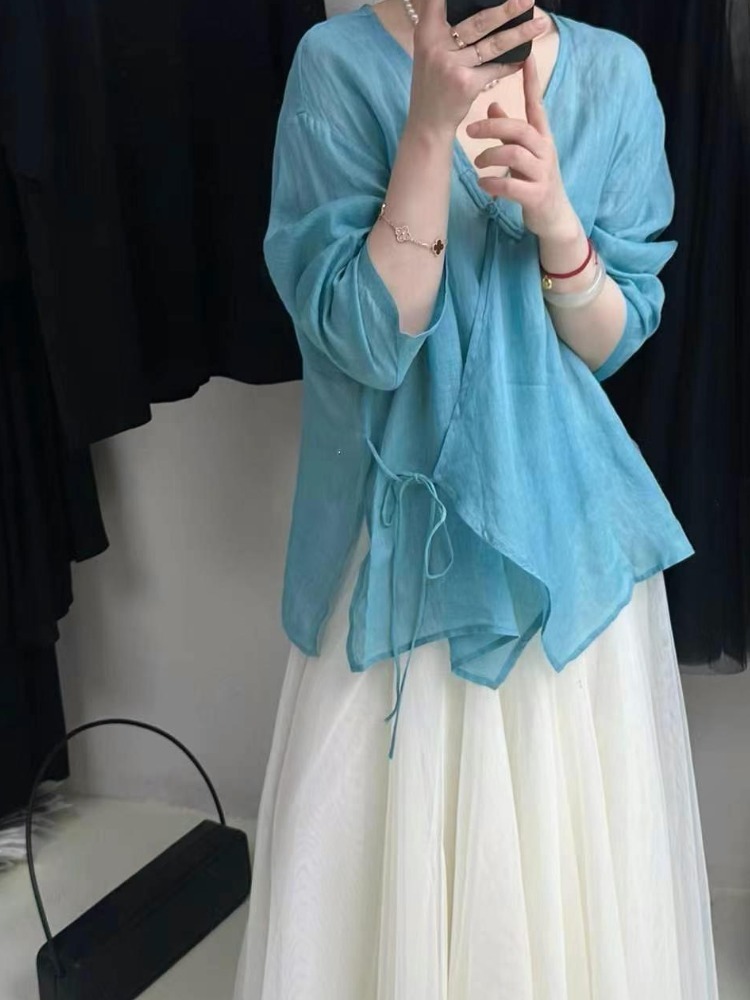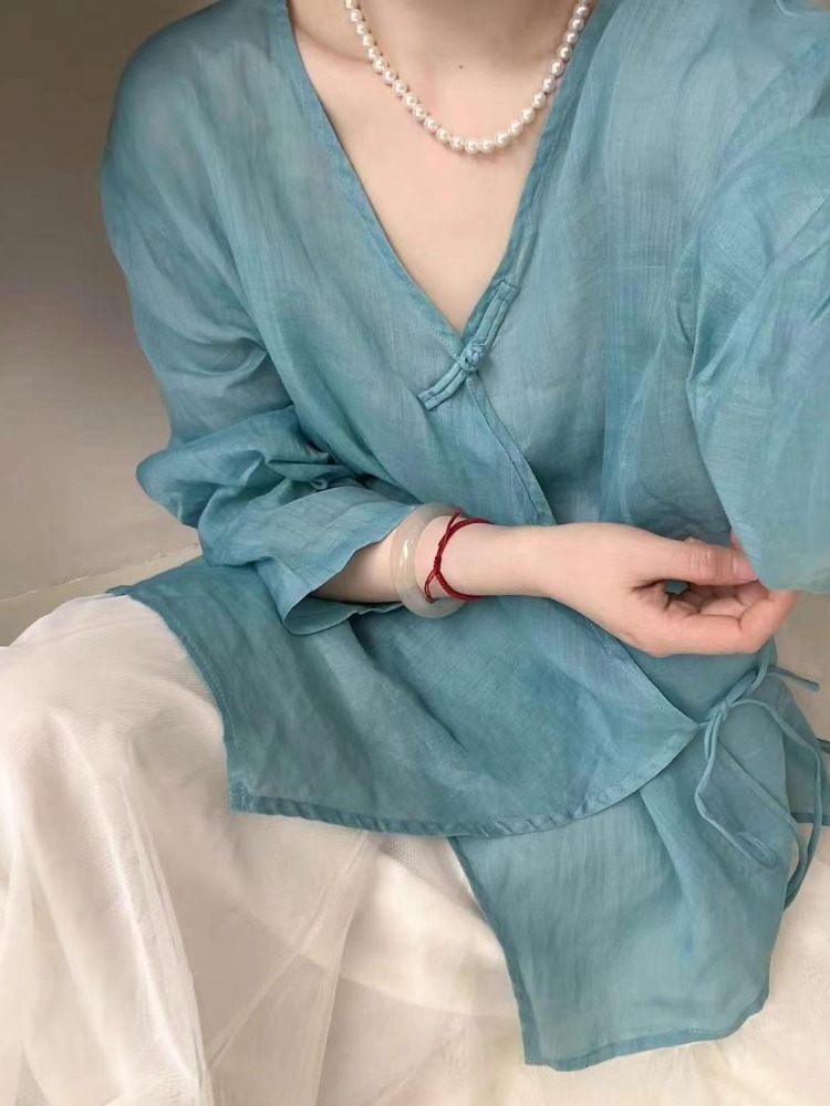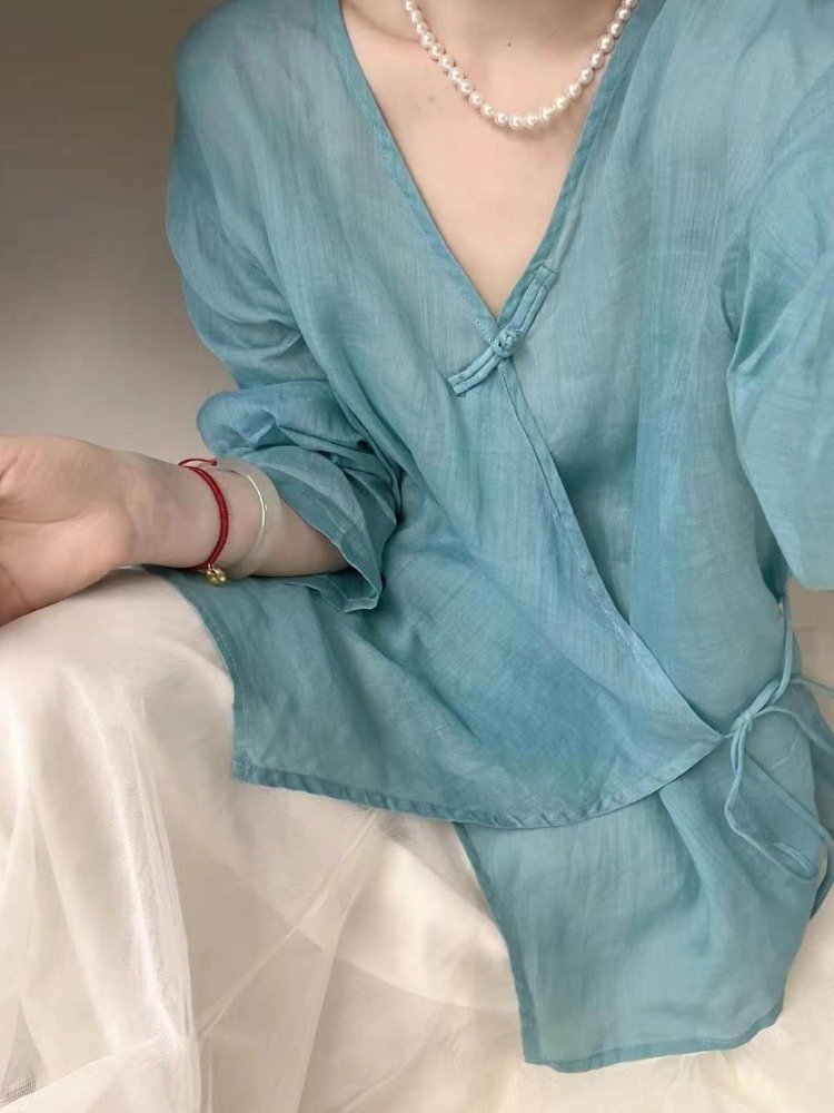 裁缝学苑AQ508盘扣侧系带棉麻茶服纸样女装小衫上衣样板图纸
