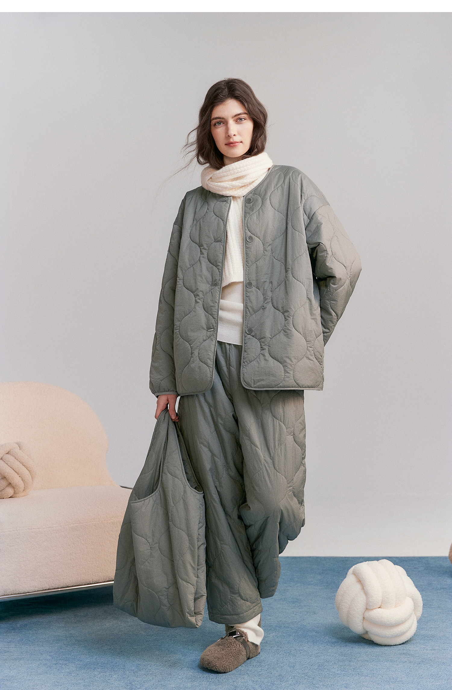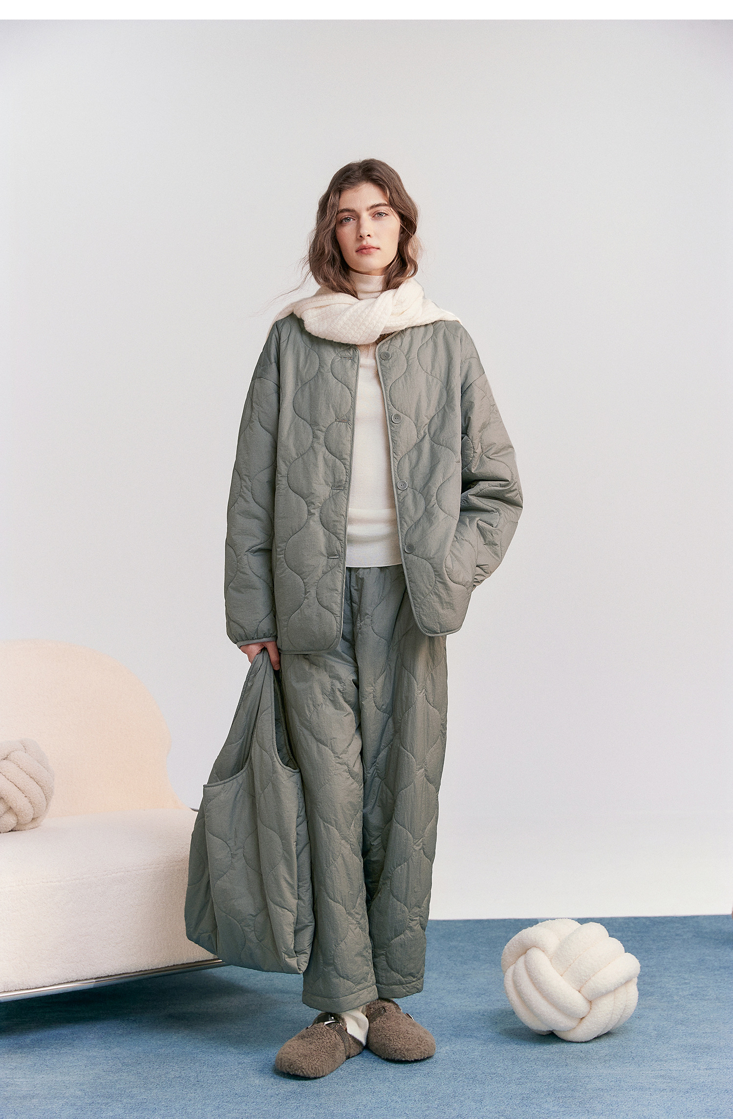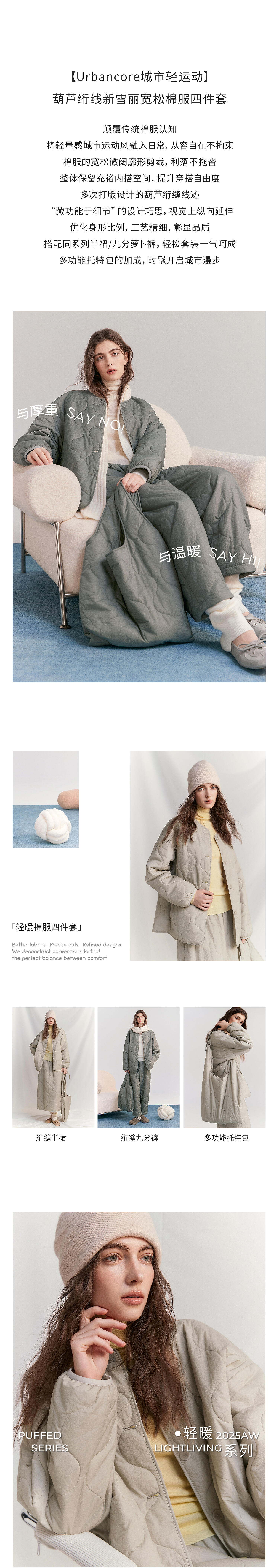 棉仓366607007-葫芦绗线新雪丽宽松棉服四件套