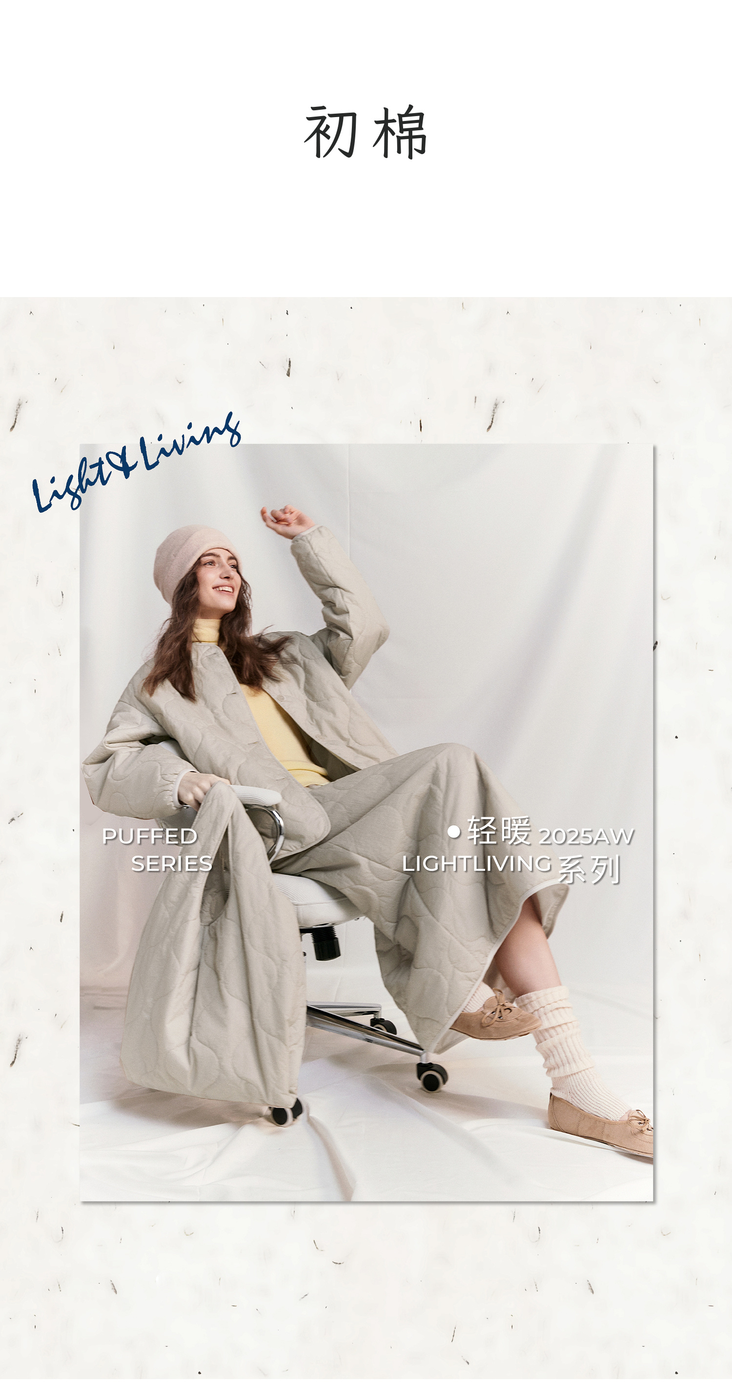 - 棉仓创始于2003年,旨在为注重品质的年轻家庭,打造美好生活方式。现棉仓旗下有服饰品牌棉先生、初棉、IACHOO,以及餐饮品牌初饭。棉仓系品牌风格是基于对北欧风现代美学的探索。