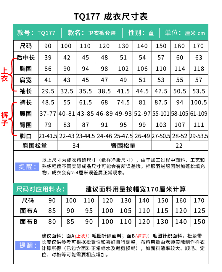 裁缝学苑TQ177圆领套头卫衣卫裤套装纸样儿童新款上衣裤子两件套样板
