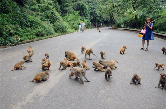 2、 黔灵山公园-爬山猴子互动