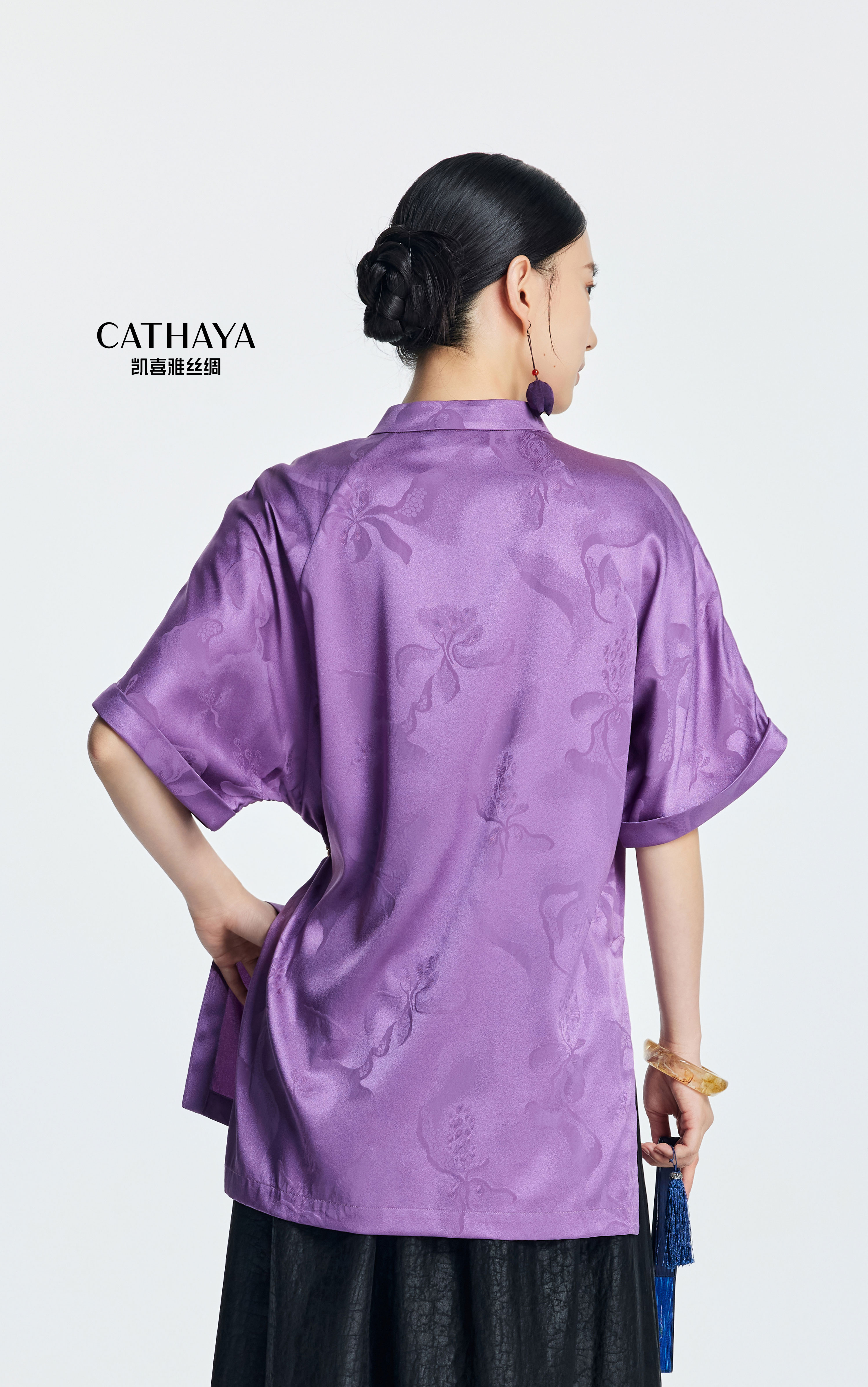 精致的锦鲤扣作为点睛之笔,不仅增添了整体的精致感,更寓意着好运连连,为您带来美好的祝福。上衣宽松适度,包容性强,适合各种身材的女性穿着,同时百搭的特点让您轻松搭配各种服饰。下摆开叉设计让整体造型更加灵动飘逸。无论是日常穿搭、职场办公还是出席重要场合,这款上衣都能轻松应对,让您在任何场景下都能展现出最佳的形象。