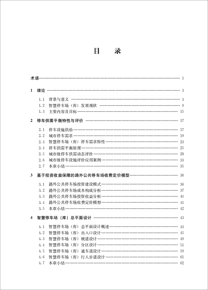 念 , 阐 述 停 车 供 需 平 衡 特 性 与 评 价 、 智 慧 停 车 场 (库 ) 总 平 面 设 计 、 智 慧 停 车 场 (库 )