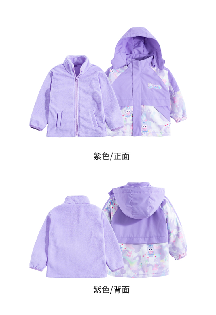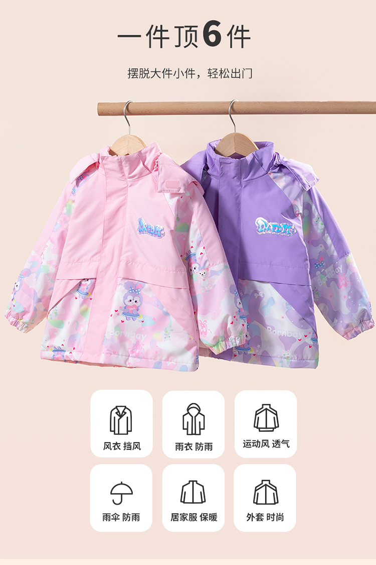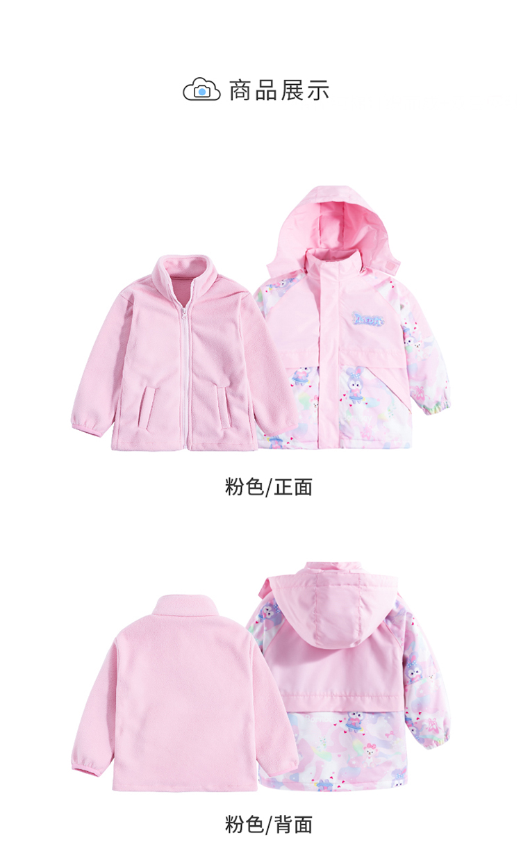 贝贝怡女童外套冲锋衣春秋防水透气高颜值款一衣三穿冲锋衣两件套223S3117