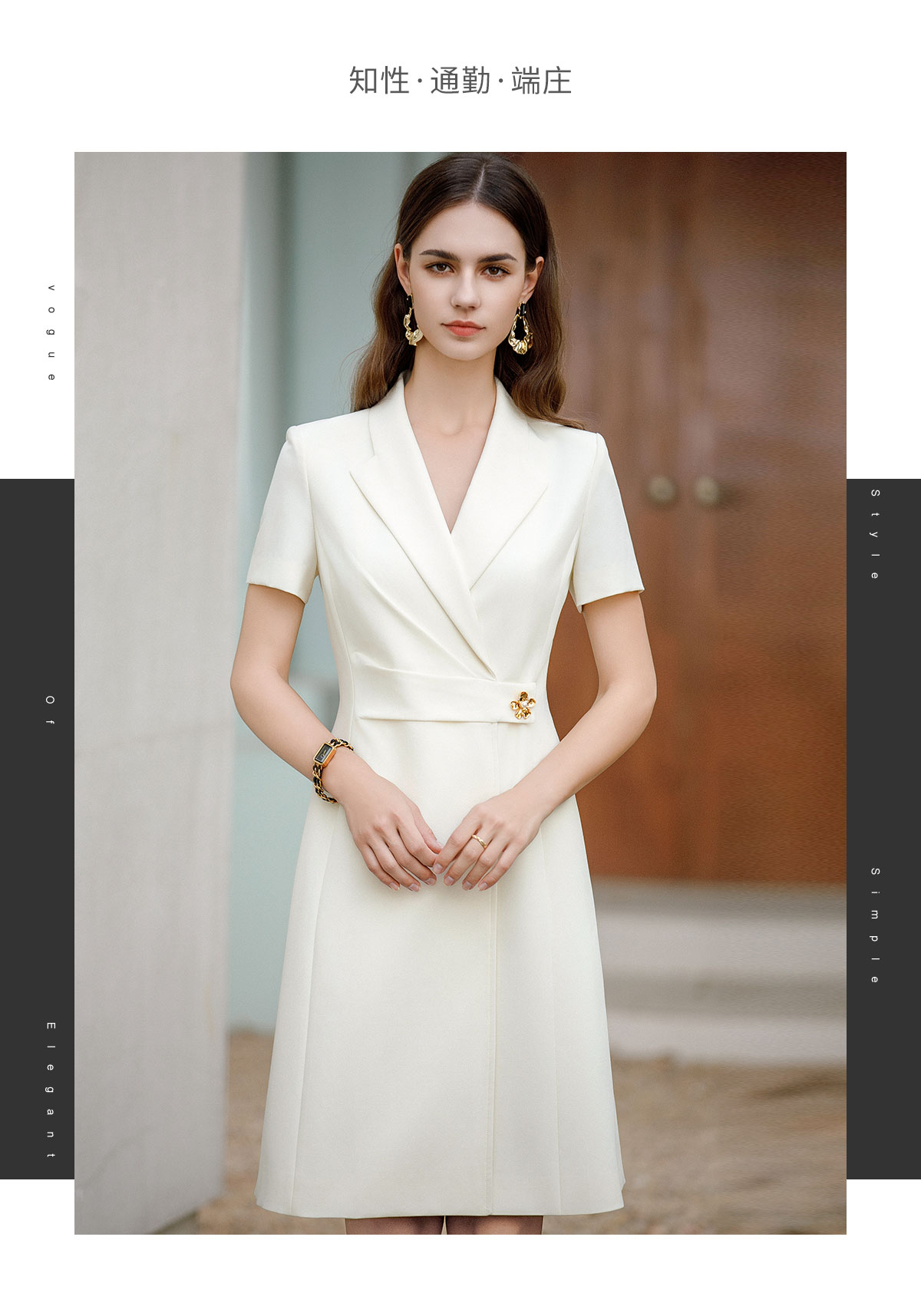 AD正式场合连衣裙女公务员上班族职业装子时尚减龄白色收腰西服裙