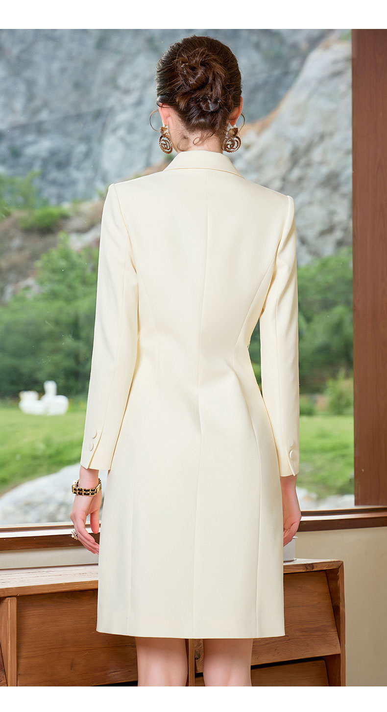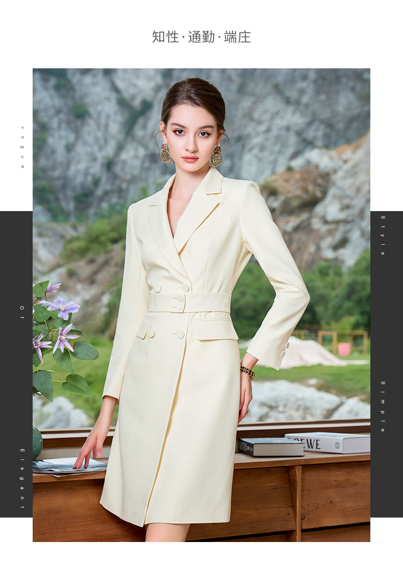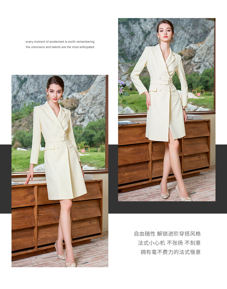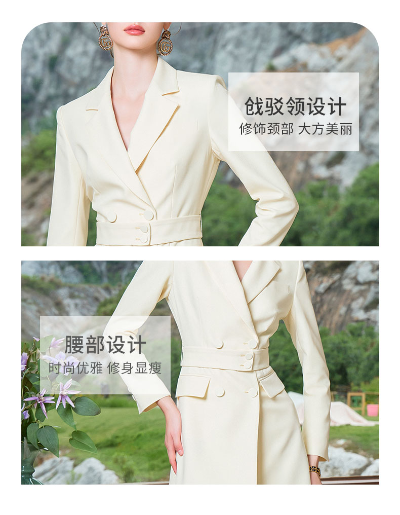 AD鹅黄色连衣裙职业装气质女神范收腰西装裙女高端主持人正装裙子