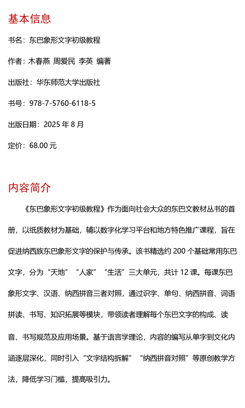 东巴象形文字初级教程 东巴文教材丛书 纳西族东巴象形文字