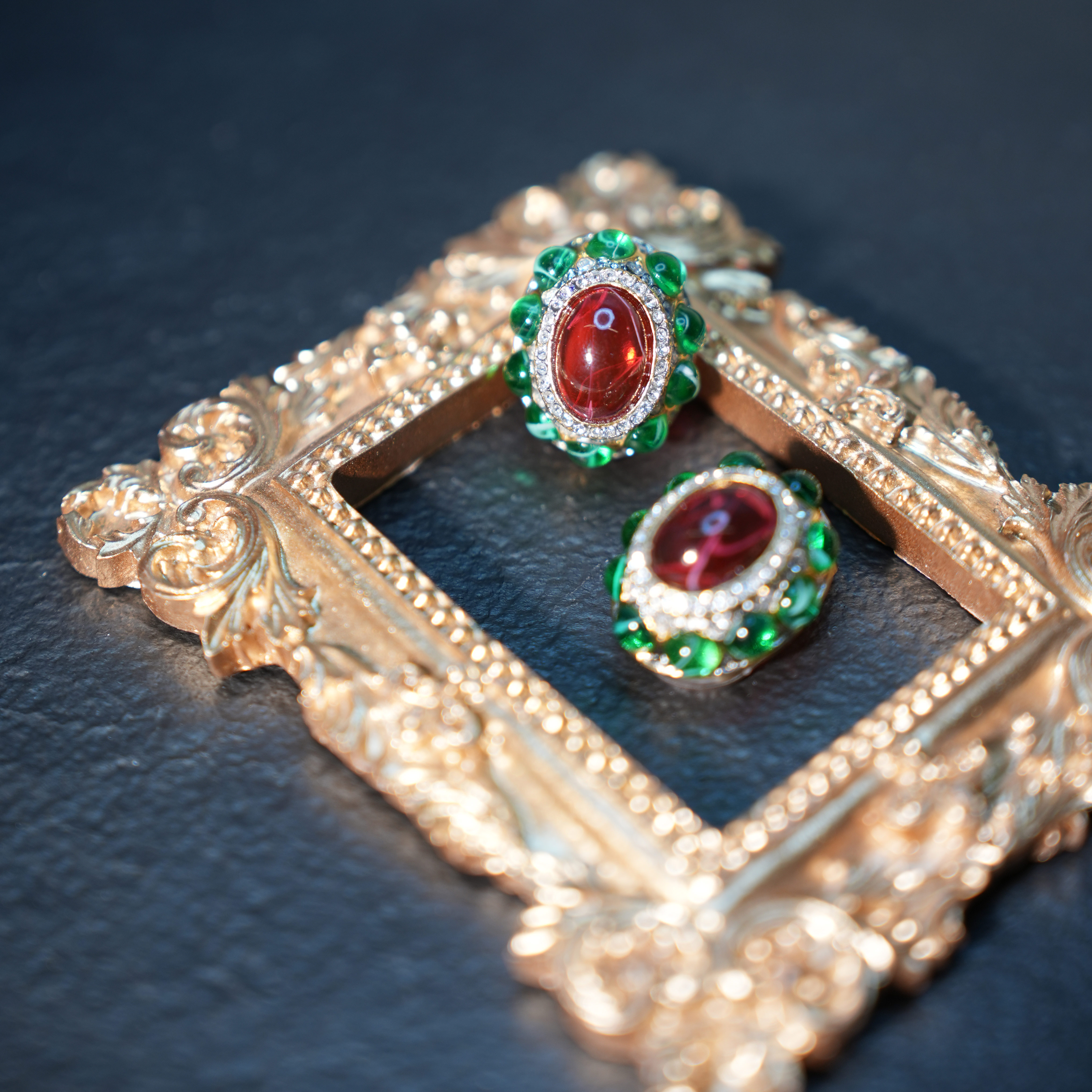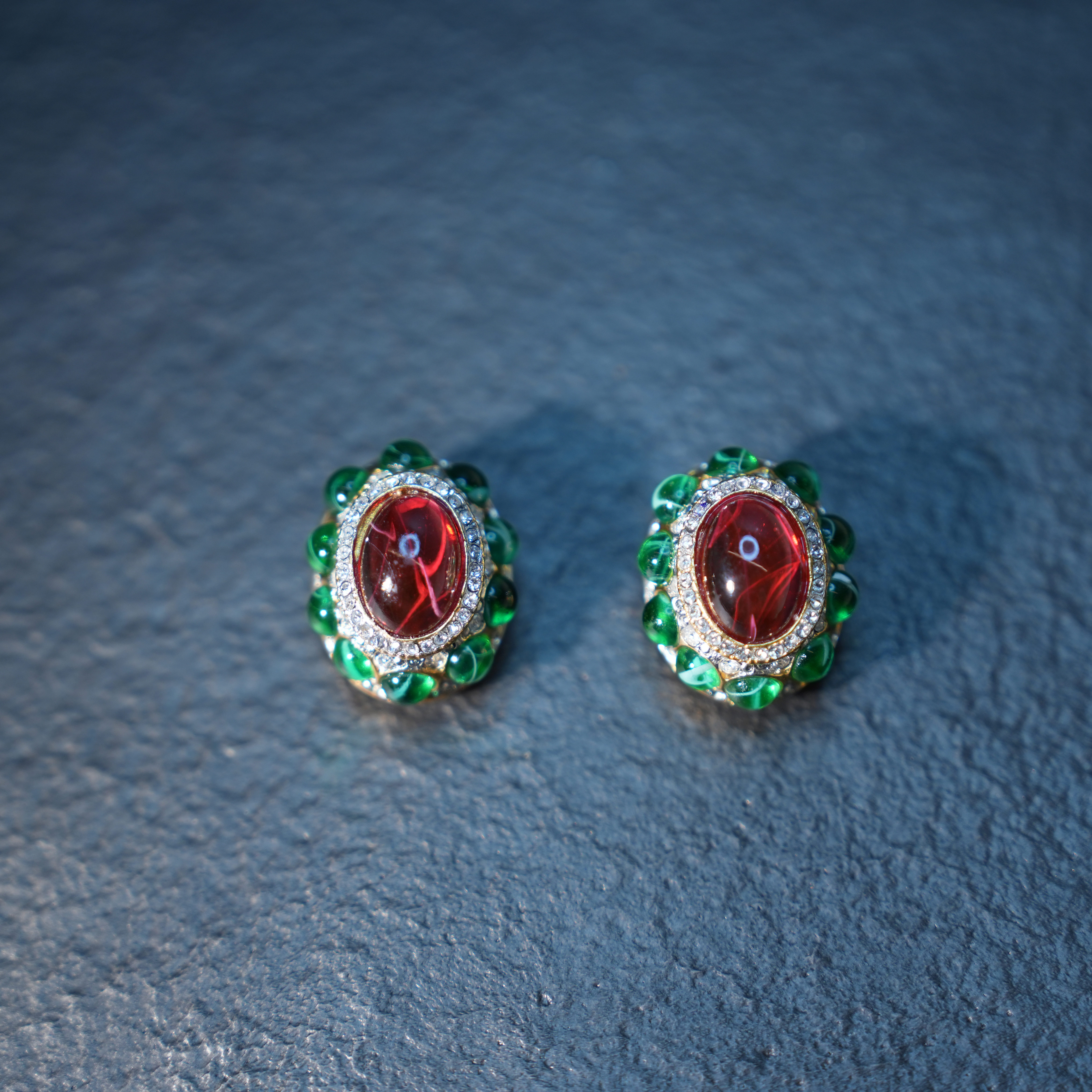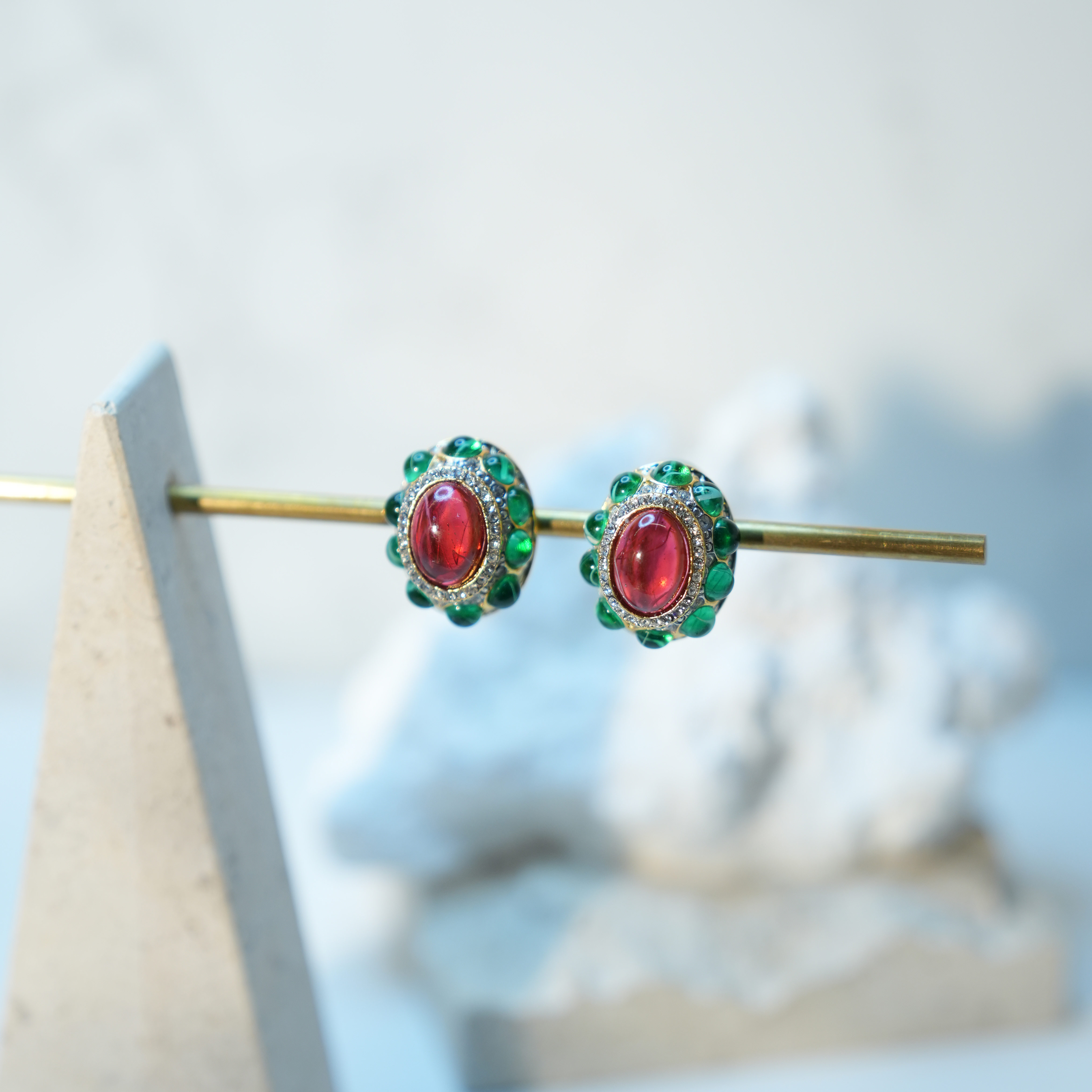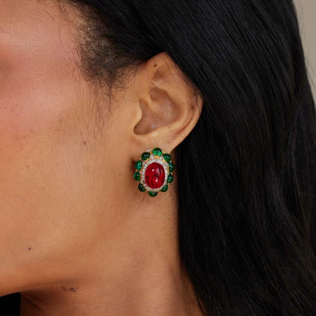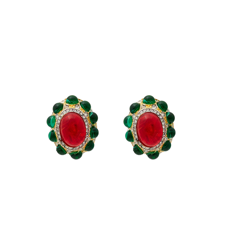 北京仓|KJL-Flaw Emerald & Flaw-红绿色 耳夹(无需耳洞)[美国设计师]