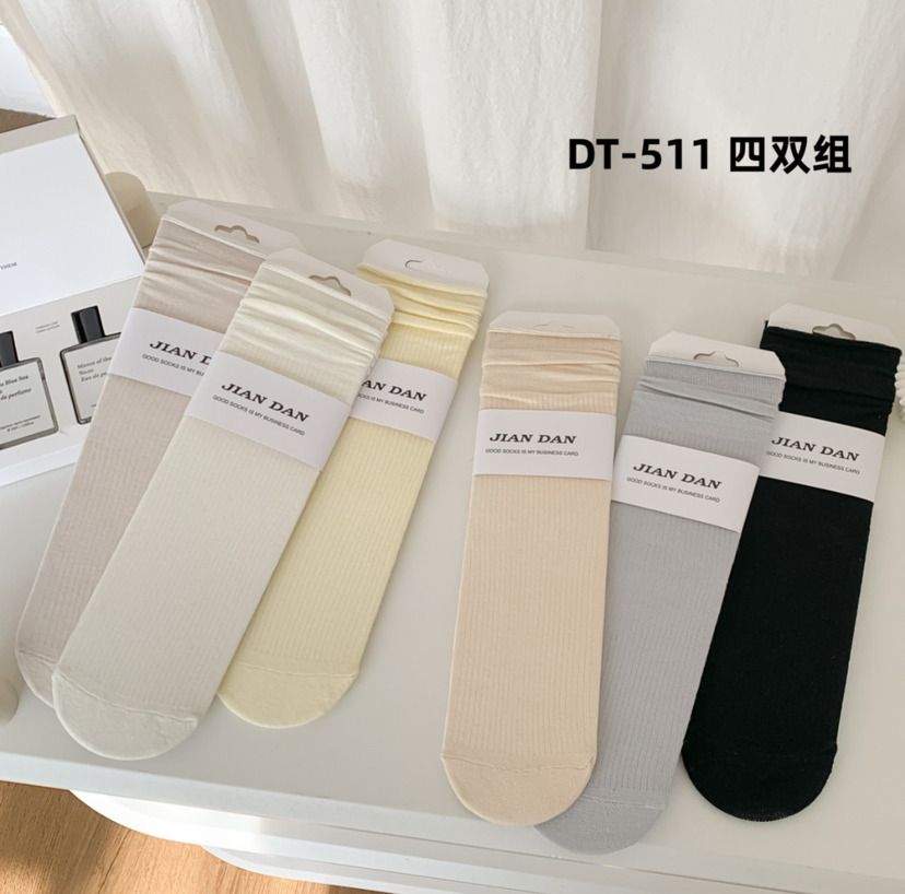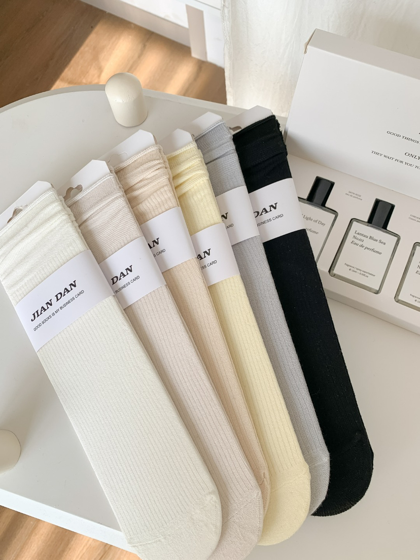 4双装!学院风纯色女士中筒袜 透气竹纤维面料 柔软舒适 上腿堆堆超级好看