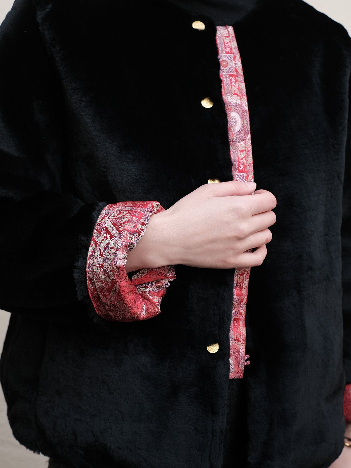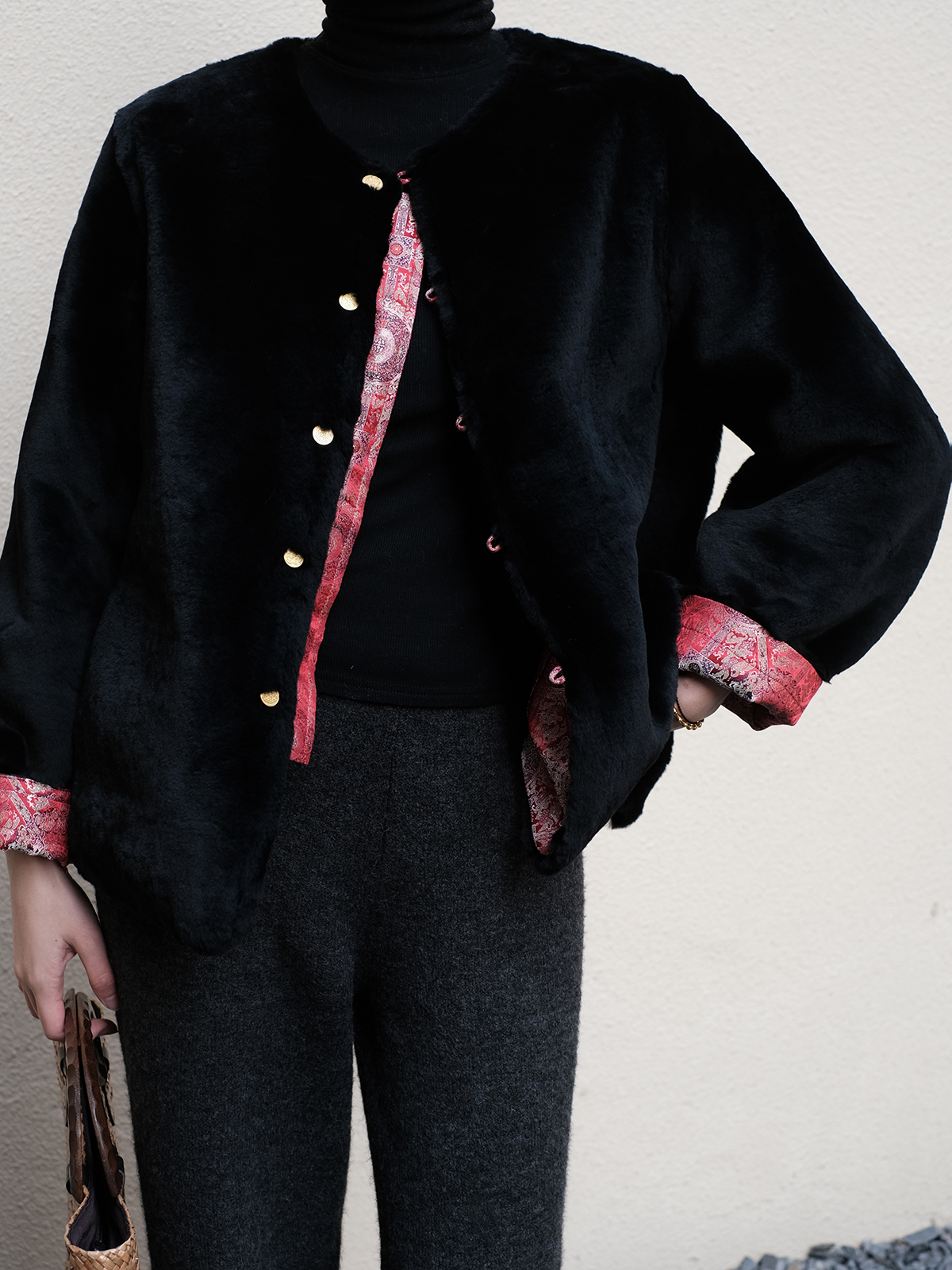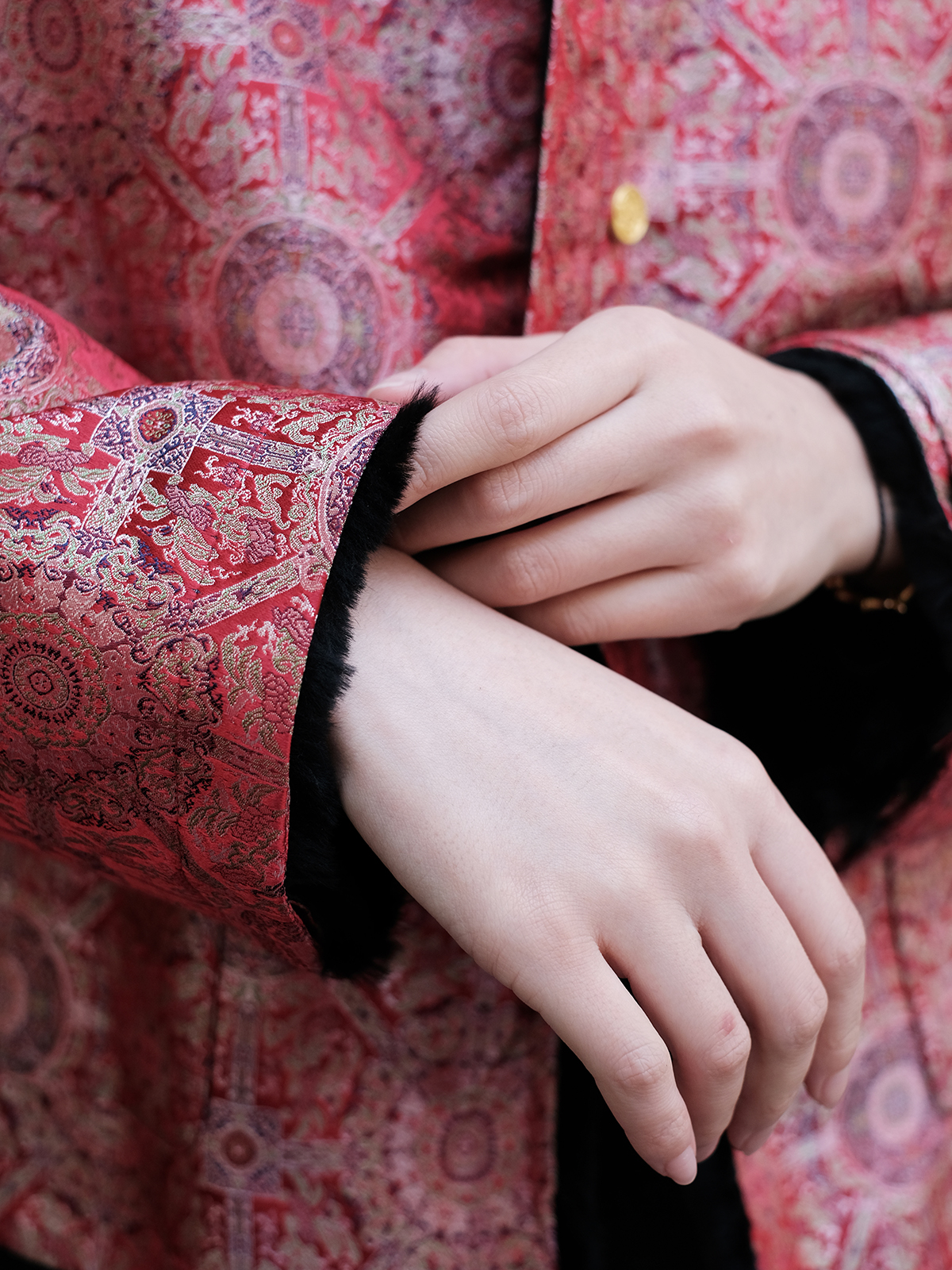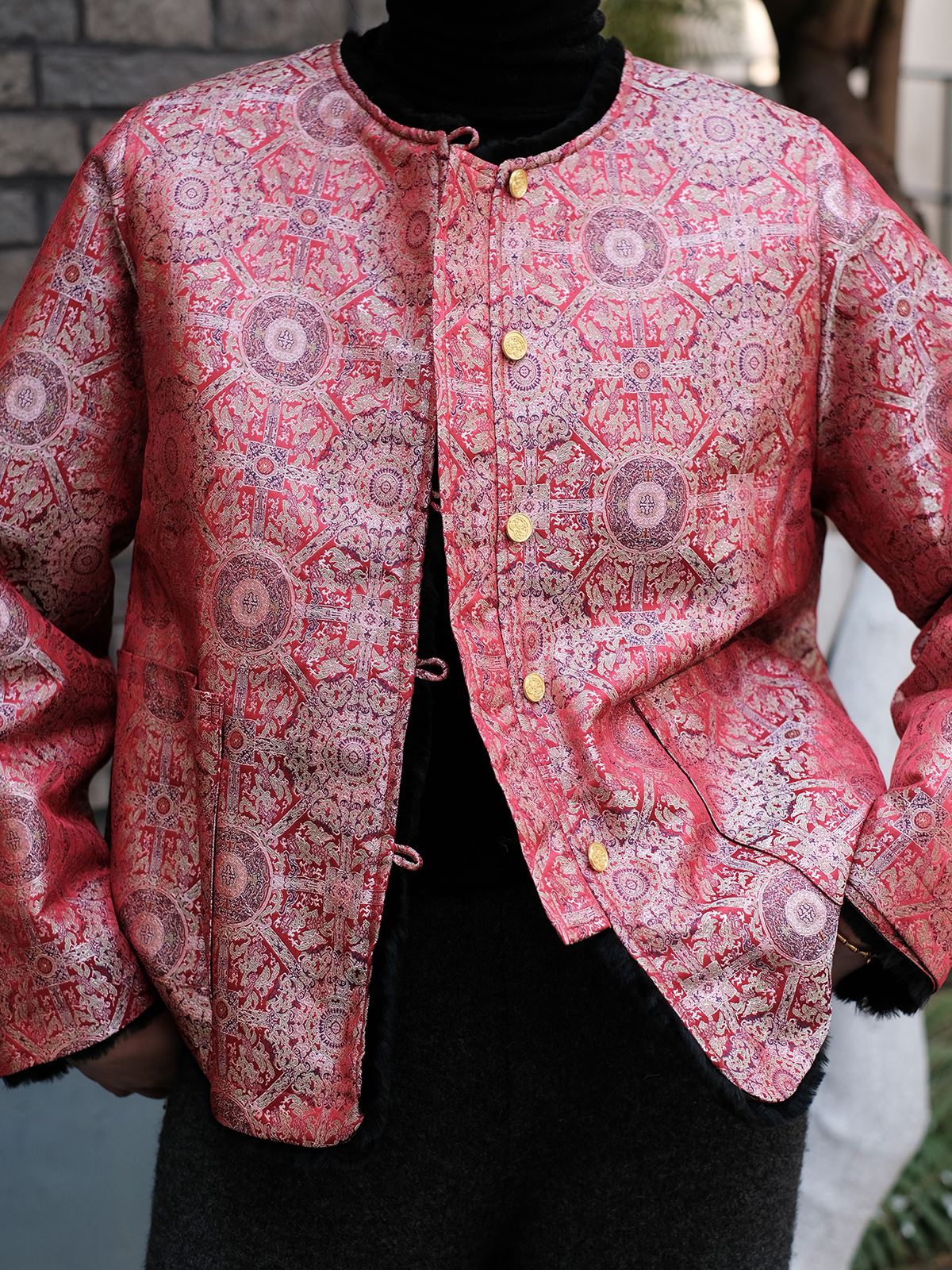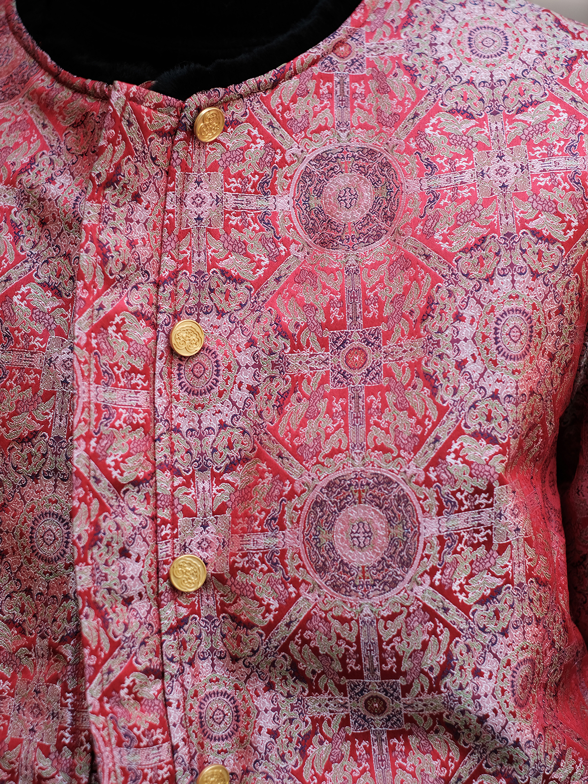 盛唐牡丹 |八达晕纹真丝宋锦羊毛外套