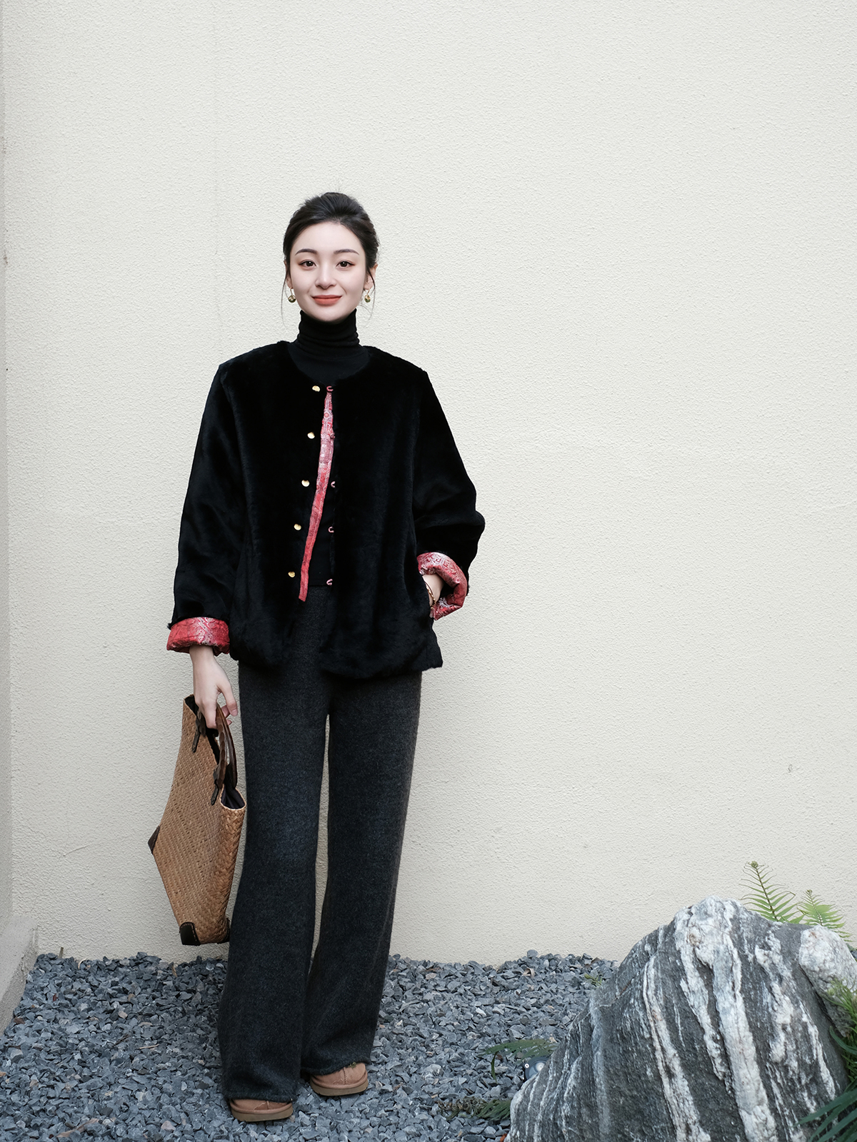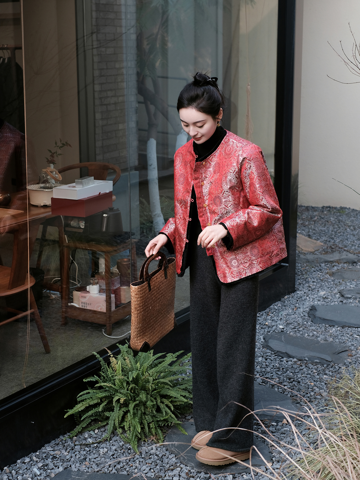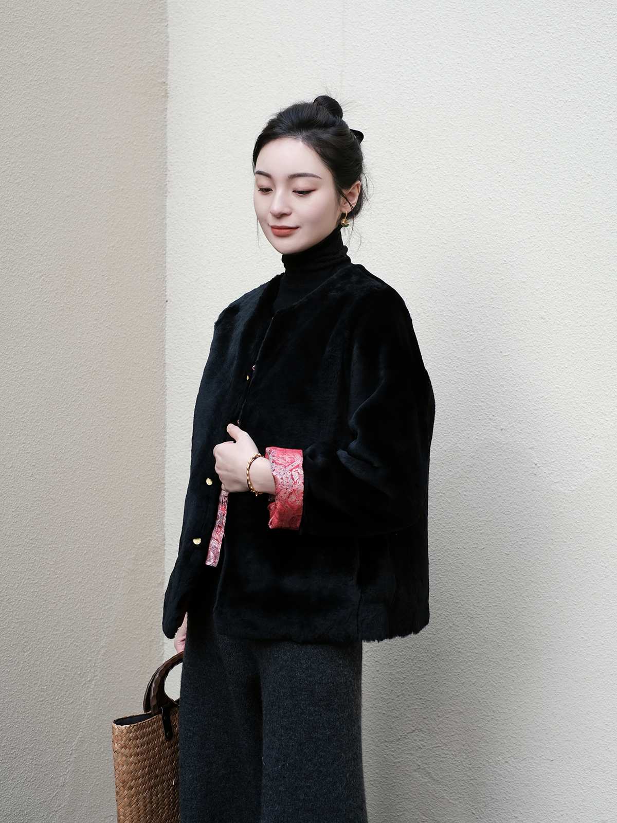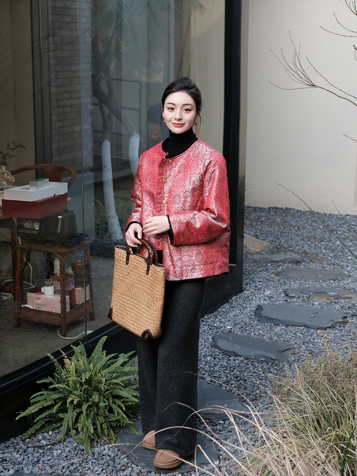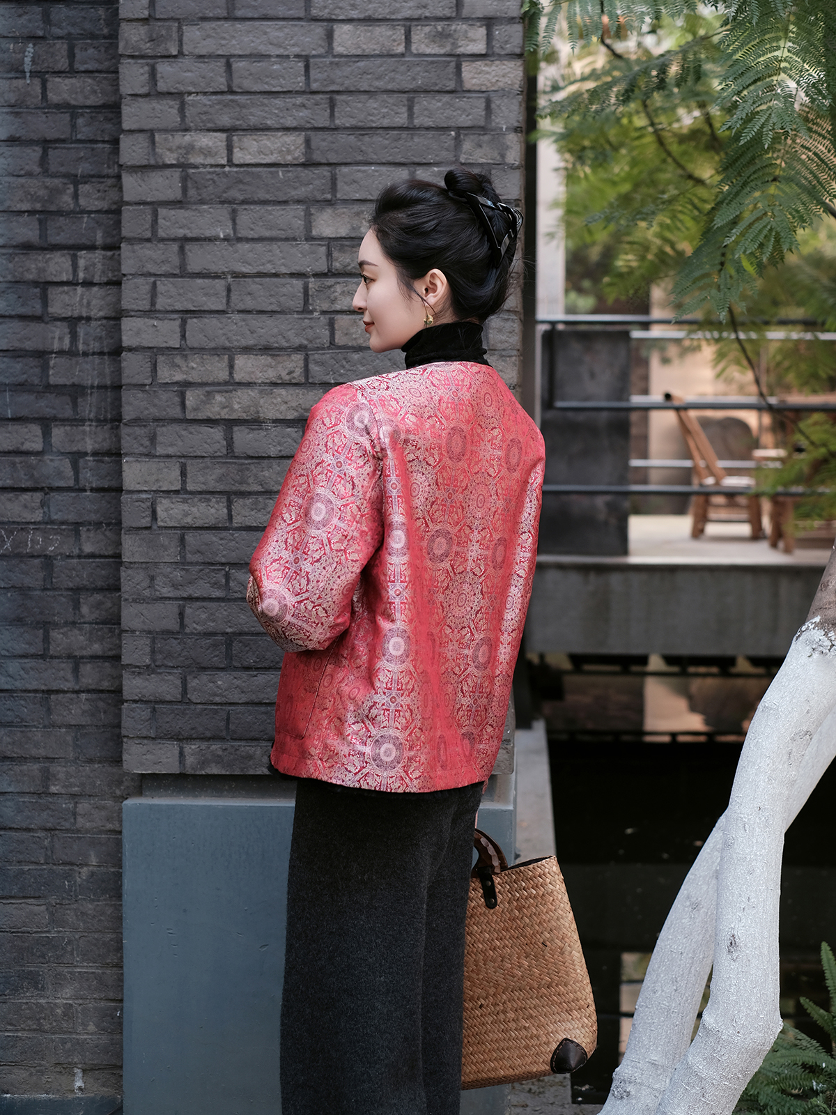盛唐牡丹 |八达晕纹真丝宋锦羊毛外套