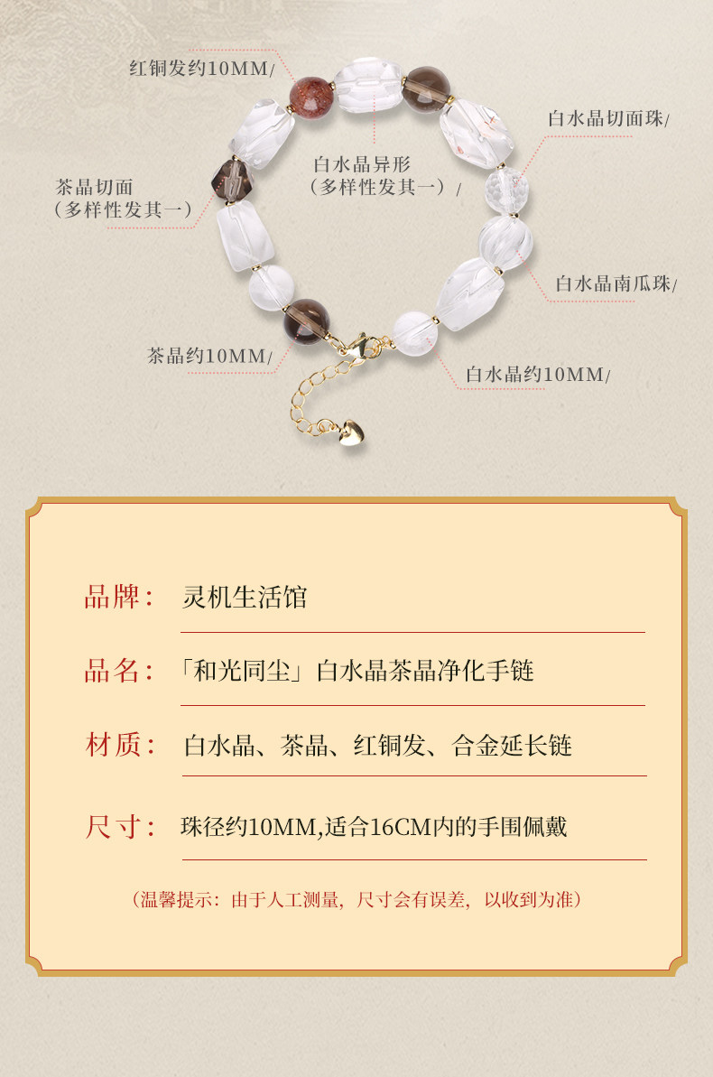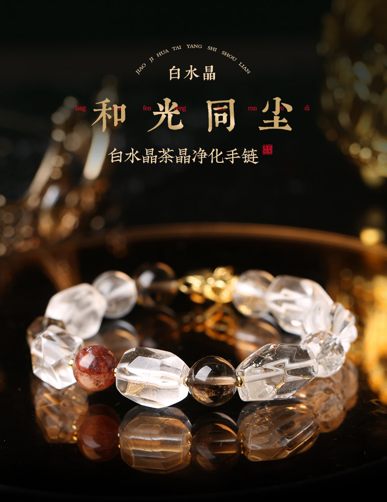 【祈愿吉品】「和光同尘」白水晶茶晶净化手链